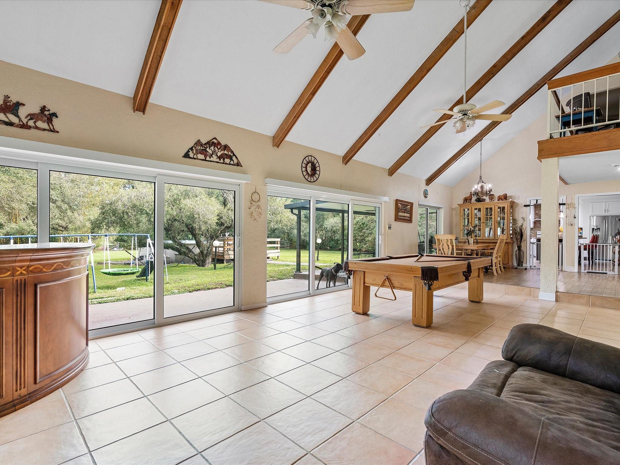 Indulge in living at its finest in the sought-after Country Ranch Estates. This exceptional haven has 4 bedrooms, 3.5 baths, and a 2-car garage, on a sprawling 1.3-acre property. Revel in the convenience of a first-floor primary suite and generously sized bedrooms, while the kitchen, adorned with granite countertops and stainless steel appliances, seamlessly blends functionality. Additional features such as a generator and a working fireplace add to the allure of this magnificent home. Perfect for nature enthusiasts and equestrian aficionados alike, this residence effortlessly combines rustic charm with urban lifestyles. Impact windows ensure privacy, this property transcends the concept of mere housing. Don't miss out on this experience of the epitome of living in Country Ranch Estates!