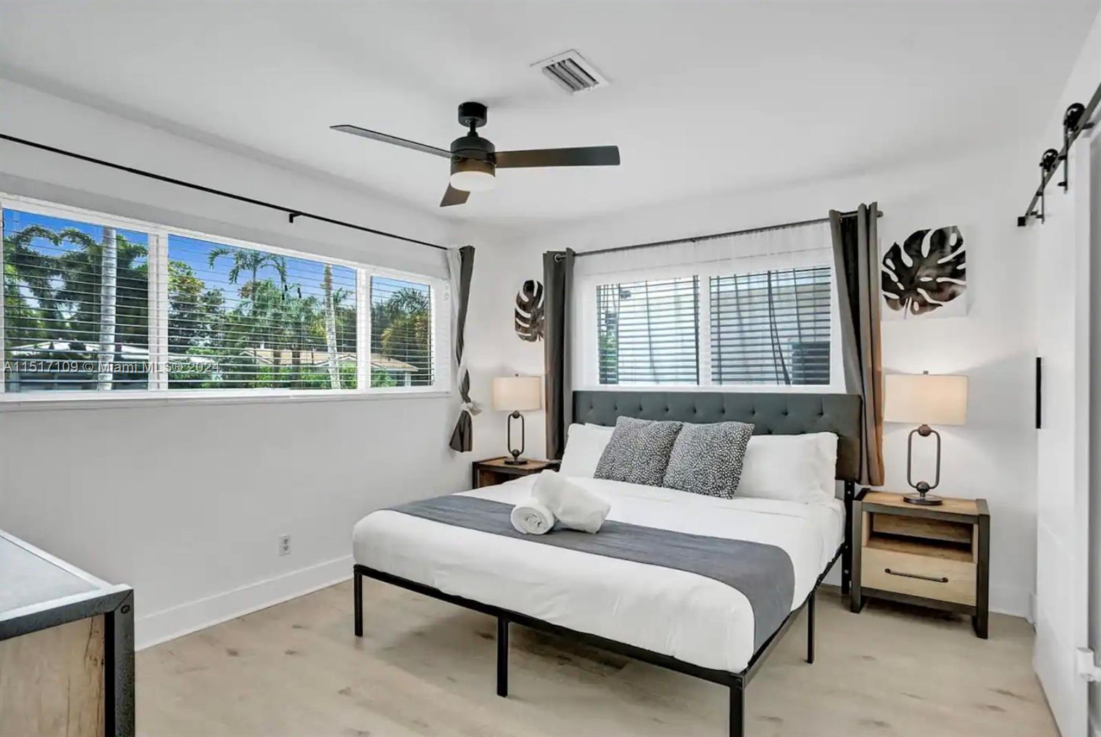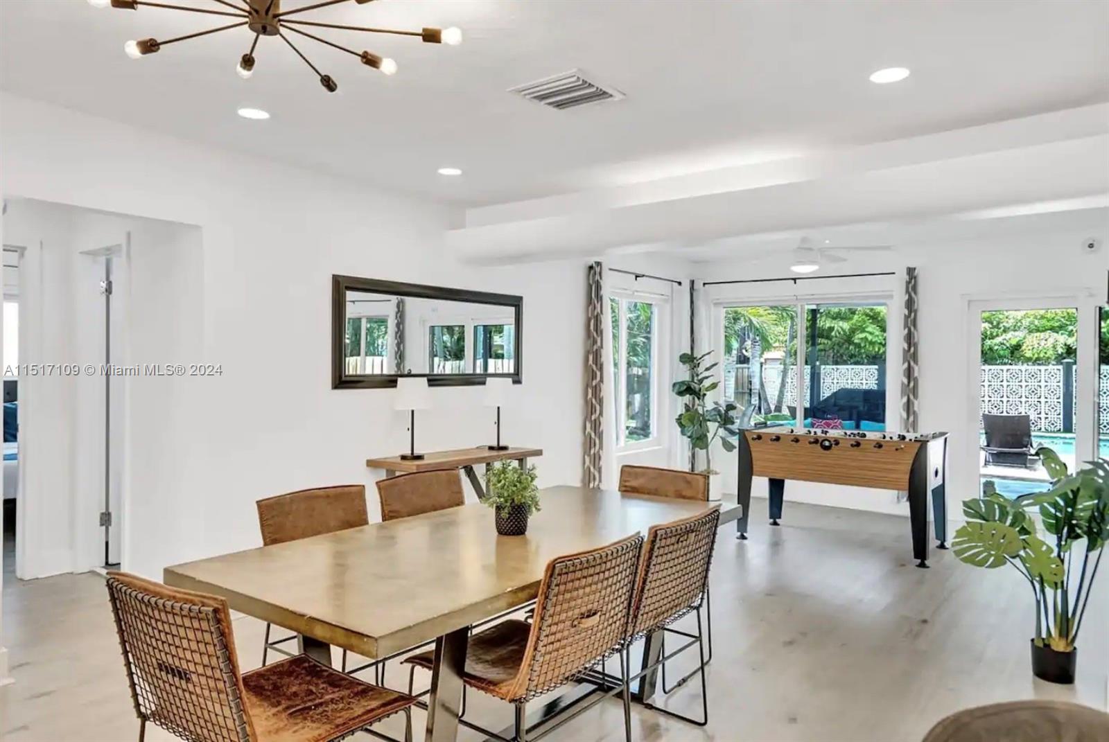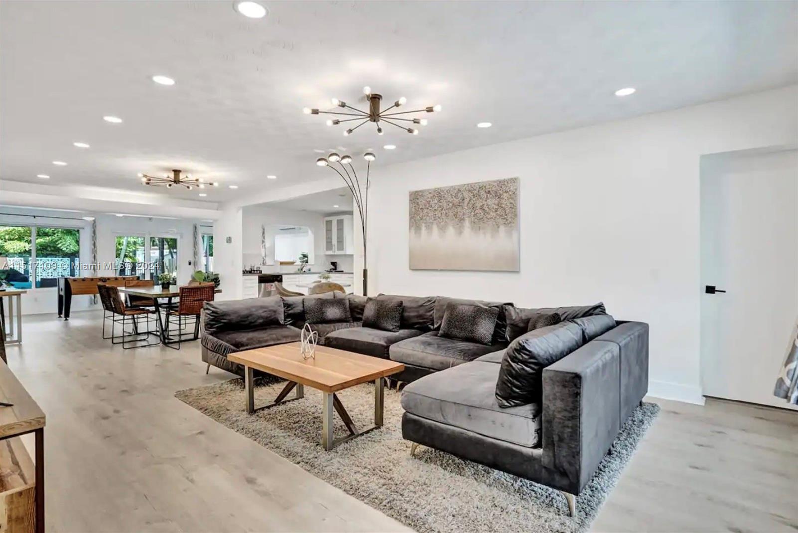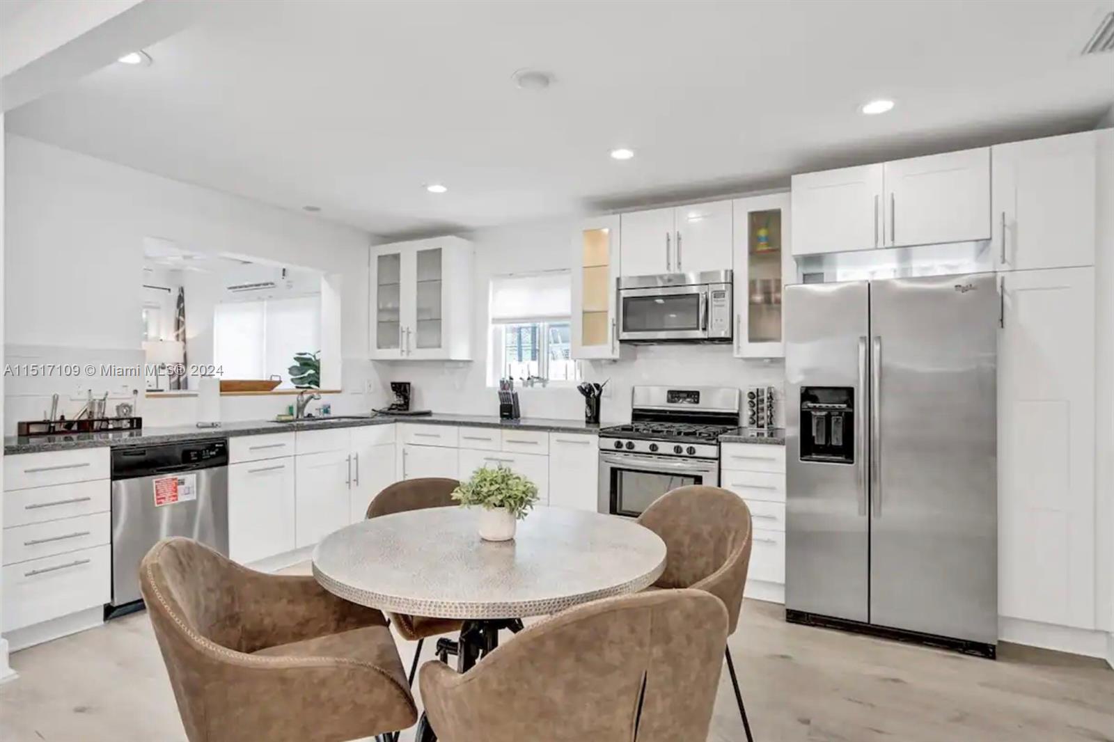 Experience Hollywood, FL, by visiting this elegant and spacious home nestled right in the heart of the city only 2 miles away from the beach and boardwalk. Explore numerous attractions and Miami with ease. The living area is designed as an open-concept space, successfully combining a modern living room, a cozy dining area, and a fully equipped kitchen. Large backyard doors allow for plenty of natural light to illuminate the space throughout the day. Together with the bright tiled floors, it creates an elegant ambiance.