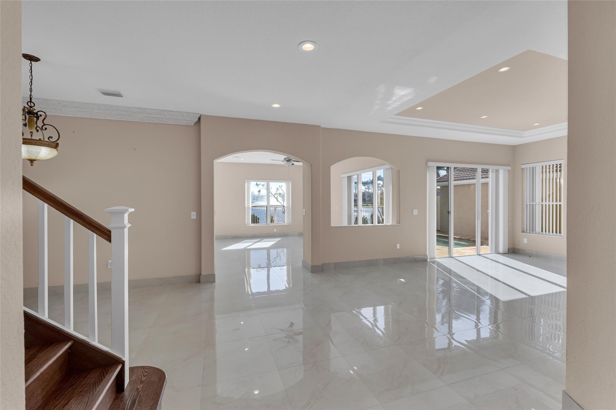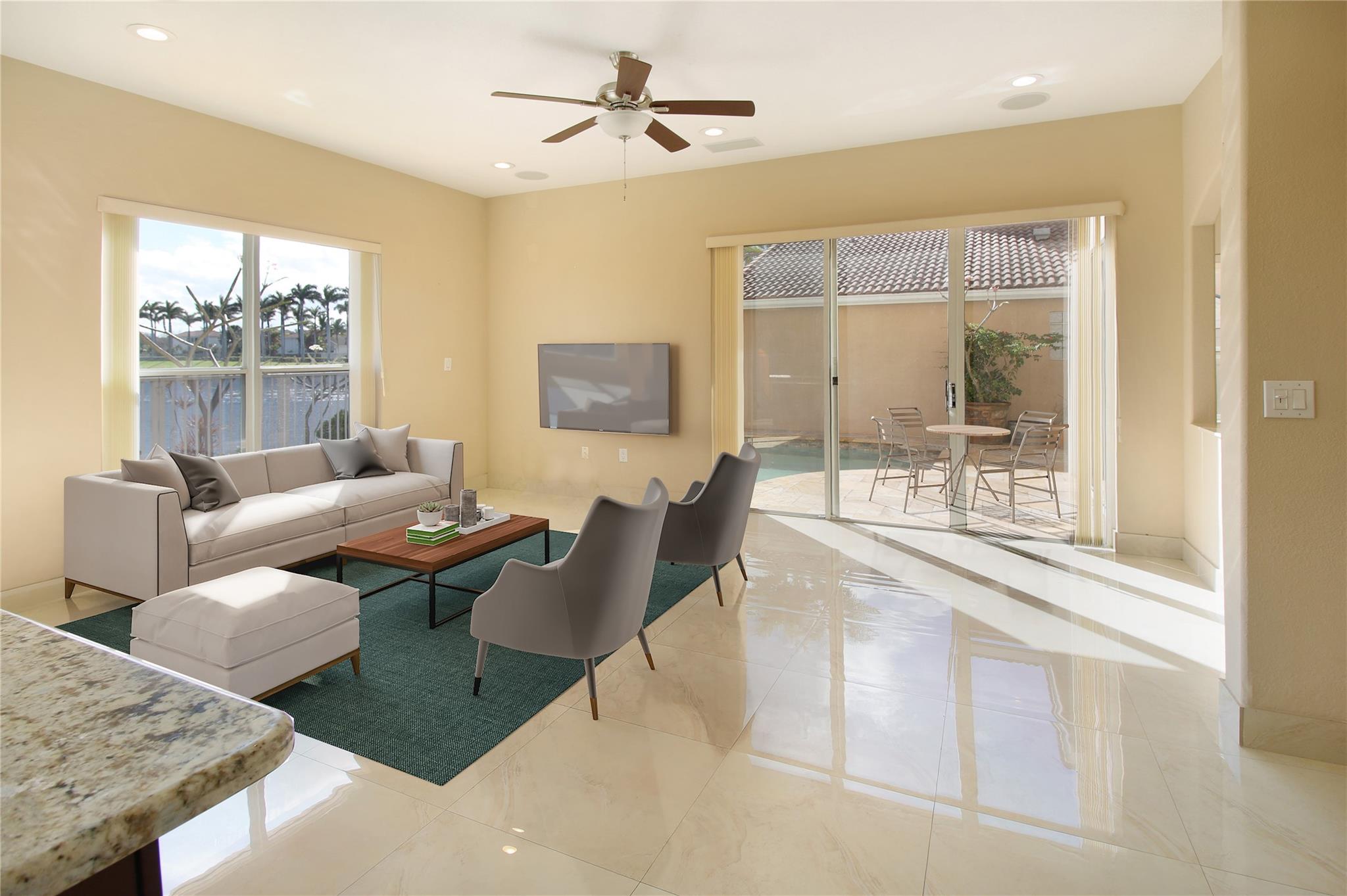 Enjoy sophisticated living in 4 Bedroom-2.5 Bath Boticelli Estate waterfront home in the beautiful community of West Lake Village. Largest pool home in West Lake with 3000 sq. feet of living area. Open concept with beautiful water views from the kitchen, family room, living area & the gym/office. Spacious room connected to the master suite can be enjoyed as a meditation room, office, reading room etc. Master Bath with oversized shower along with a relaxing soaking tub. Bonus room upstairs offers additional living space for a gym, play room, family room etc.. Intercom system throughout. Exterior cameras with DVR included. 24 manned gate Offering tennis, pickleball, play area & gym. Conveniently located within walking distance to Hollywood Beach. Minutes to Hollywood/Ft. Laud. Airport.