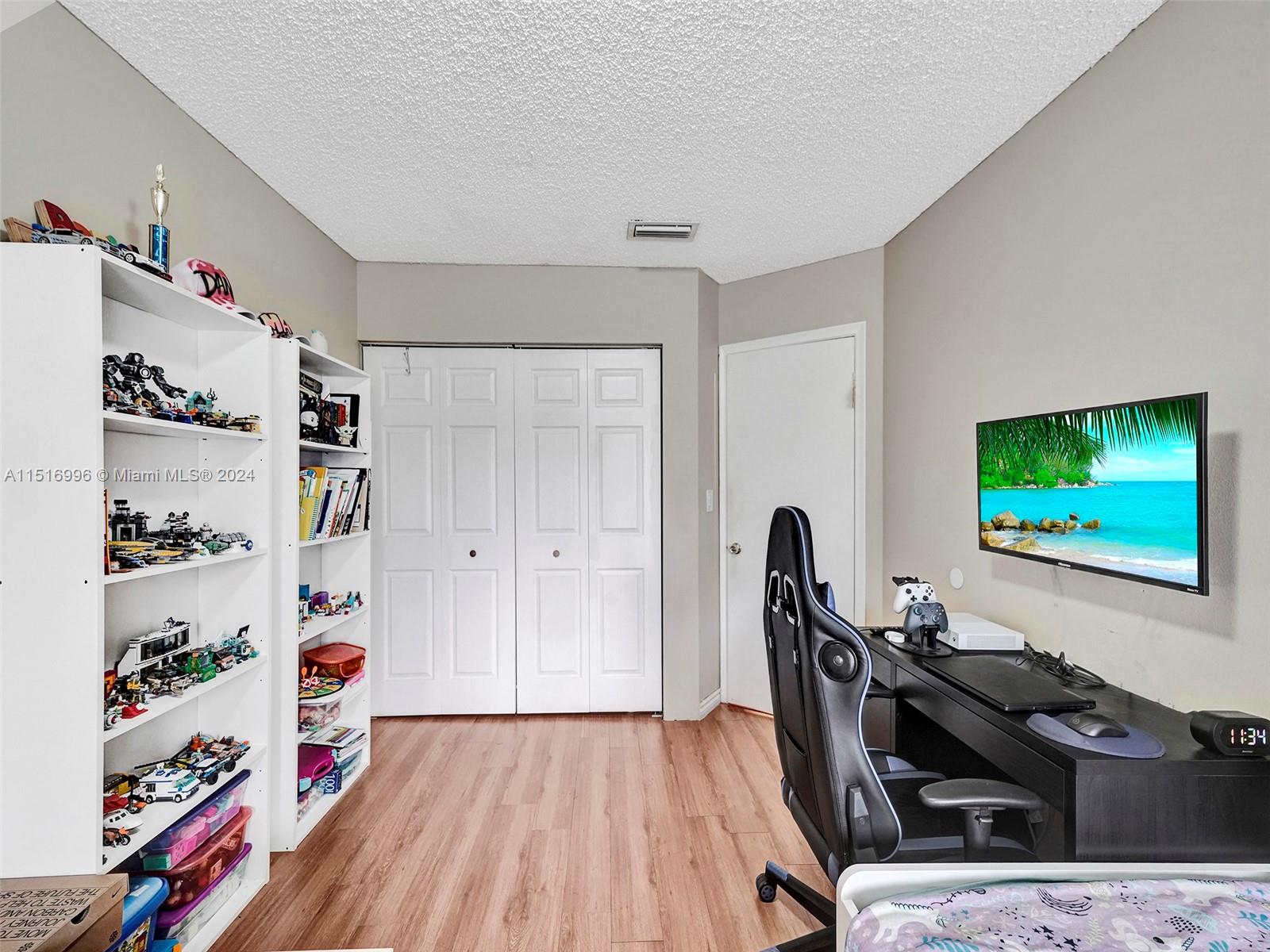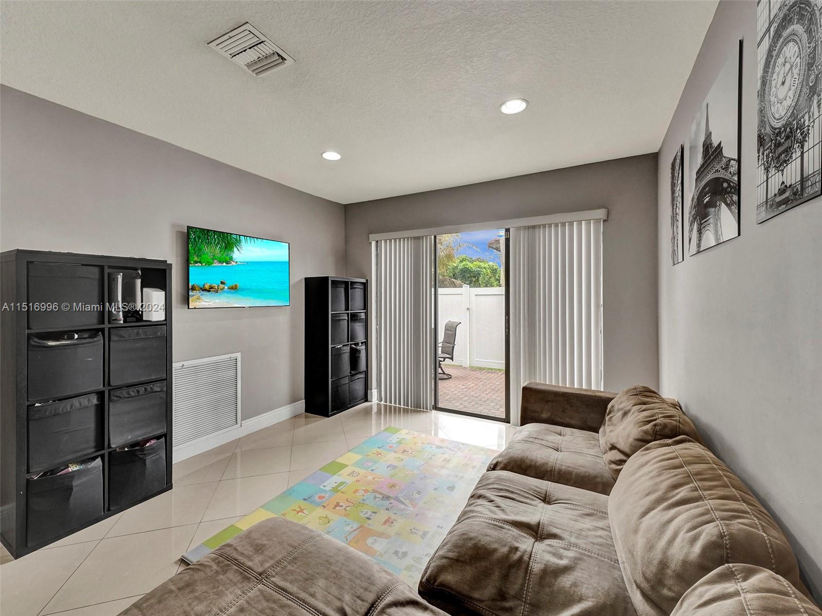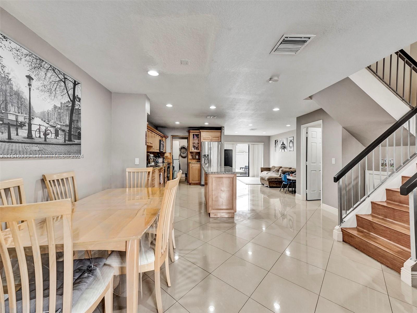 Spacious four-bedroom, corner unit town home in the heart of Hollywood Hills. First floor offers large open floor plan w/porcelain tile throughout. A spacious kitchen contains wood cabinets w/ample storage, granite countertops, a sizable island with seating, & stainless steel appliances. Beyond the kitchen sits a sizable walk-in laundry/utility room. The home also boasts a formal living room & extra-large family room. Outside, 2 patios, provide additional outdoor living space. Back patio opens to common area yard via high privacy fence w/ gate access. Upstairs, has multiple closets for ample storage, a generously proportioned master bedroom w/ upgraded ensuite bathroom & plantation shutters. This home has wonderful natural light and is ready for your family! Shops & restaurants nearby.