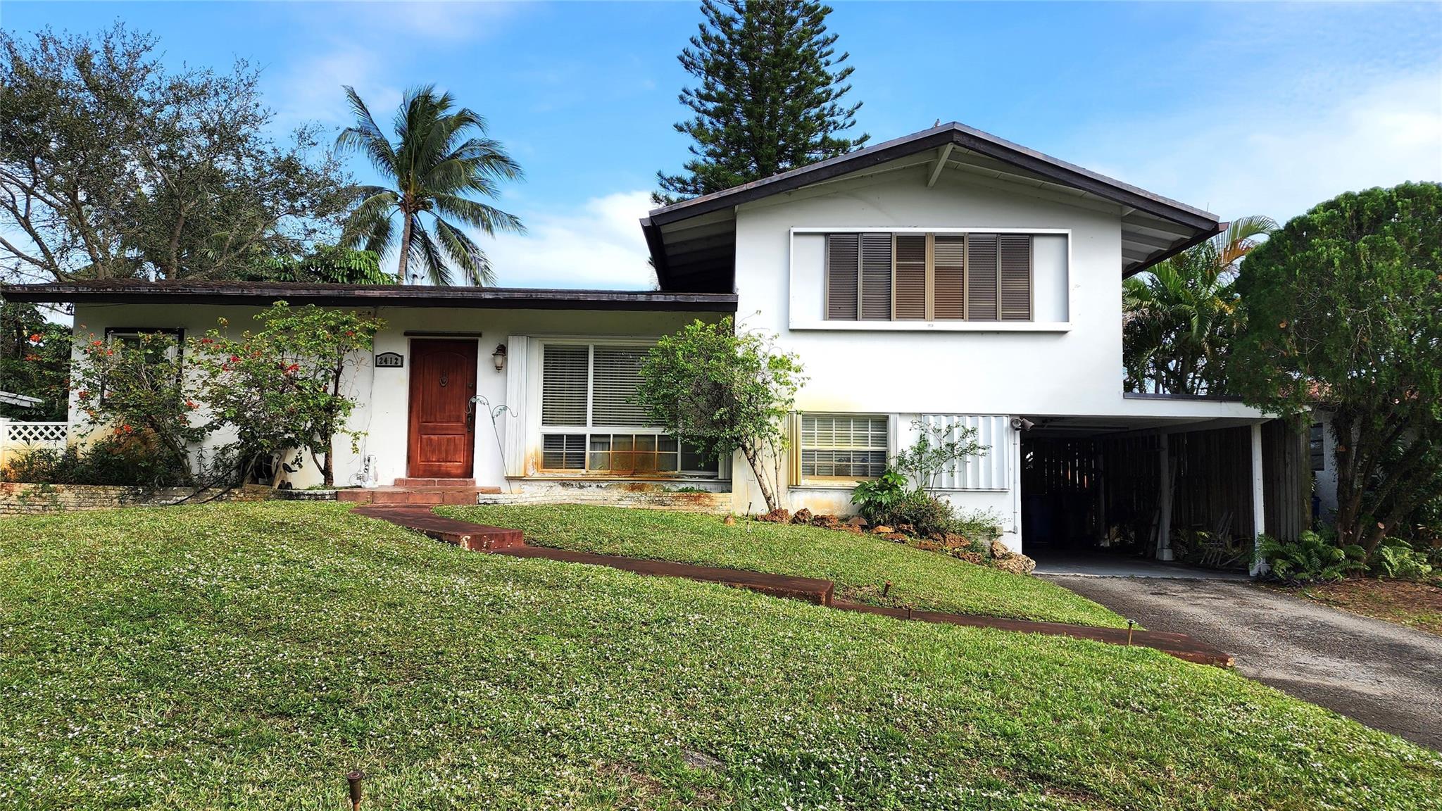 Tri-level deepwater fixer-upper. Sold AS-IS. Approx 60+/- feet of seawall. Desirable layout with generous room sizes. Home sits high on the lot. Anticipated upgrades include air conditioning, windows, roof, some termite/water damage, etc. A 2005 whole-house generator has an in-ground gas tank, accordion shutters, plenty of room for a pool, and electric was updated in 05'. — great opportunity to make this your dream home. Drive around and see the wonderful renovations people are making to these tri-levels. Sight-unseen offers will not get a response.