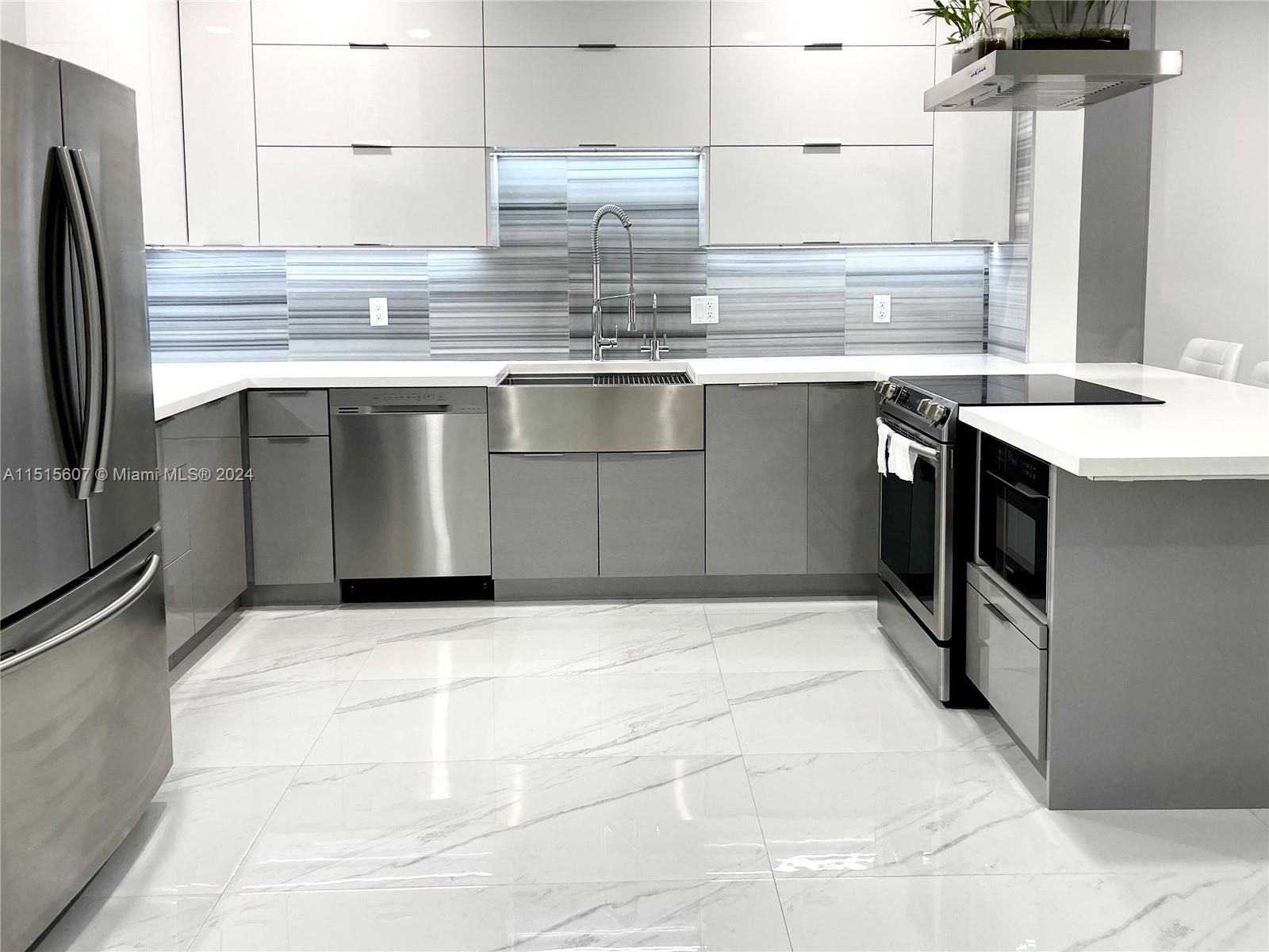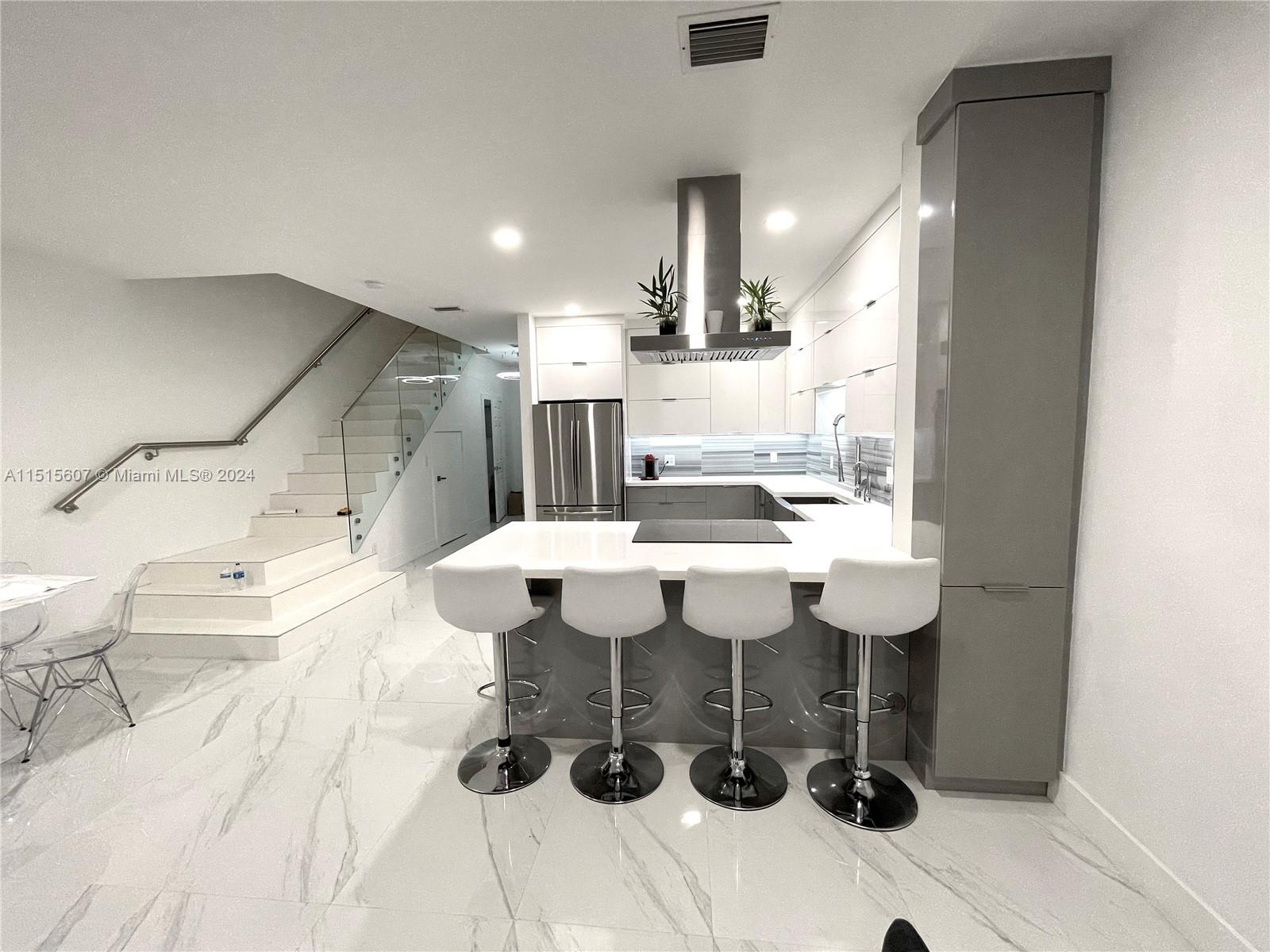 This is your opportunity to purchase a beautifully renovated townhouse in the SE of Fort Lauderdale, minutes from the beach, airport, Port Everglades and Las Olas. The property has been completely renovated from the studs out. ALL WORK HAS BEEN DONE WITH PERMITS AND ARCHITECTURAL ENGINEERING PRINTS, plumbing, electrical, mechanical, wooden fence. The floor plan has been modified and opened. This unit is vastly different than the surrounding units. Kitchen and bathrooms are matching with one of a kind custom cabinetry. All plumbing feature a GROHE suite with lifetime manf. warranty including the roughed-in behind the wall valves. All floors are matching porcelain. The stair railing is glass and both bathrooms have frameless monolith hinged glass doors. *Please respect neighbors private prop