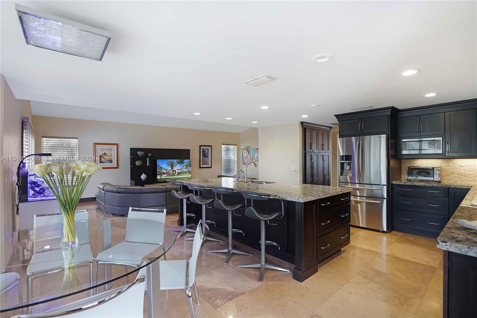 Beautiful water front home with 5 bedroom 4.5 bathroom in the gorgeous city of Davie FL. This property is move-in ready and enjoys over $400,000 in renovations. These include Pool, Jacuzzi, PERMITTED In-law suite, Accordion Hurricane Shutters throughout the whole house, two AC units, two Car Garage, Top of the line Custom Made kitchen with Granite counter tops, Stone back splash, and seamless island with sink, Top Rated Stainless Steel Appliances Two Ovens, Dishwasher, Hood, Fridge Travertine Flooring, Magazine like Stone Wall in one of the two living rooms, Hunter Douglas Sillouette shades throughout the whole house. Luxury bathrooms, walk-in California closets in all rooms, and more...
