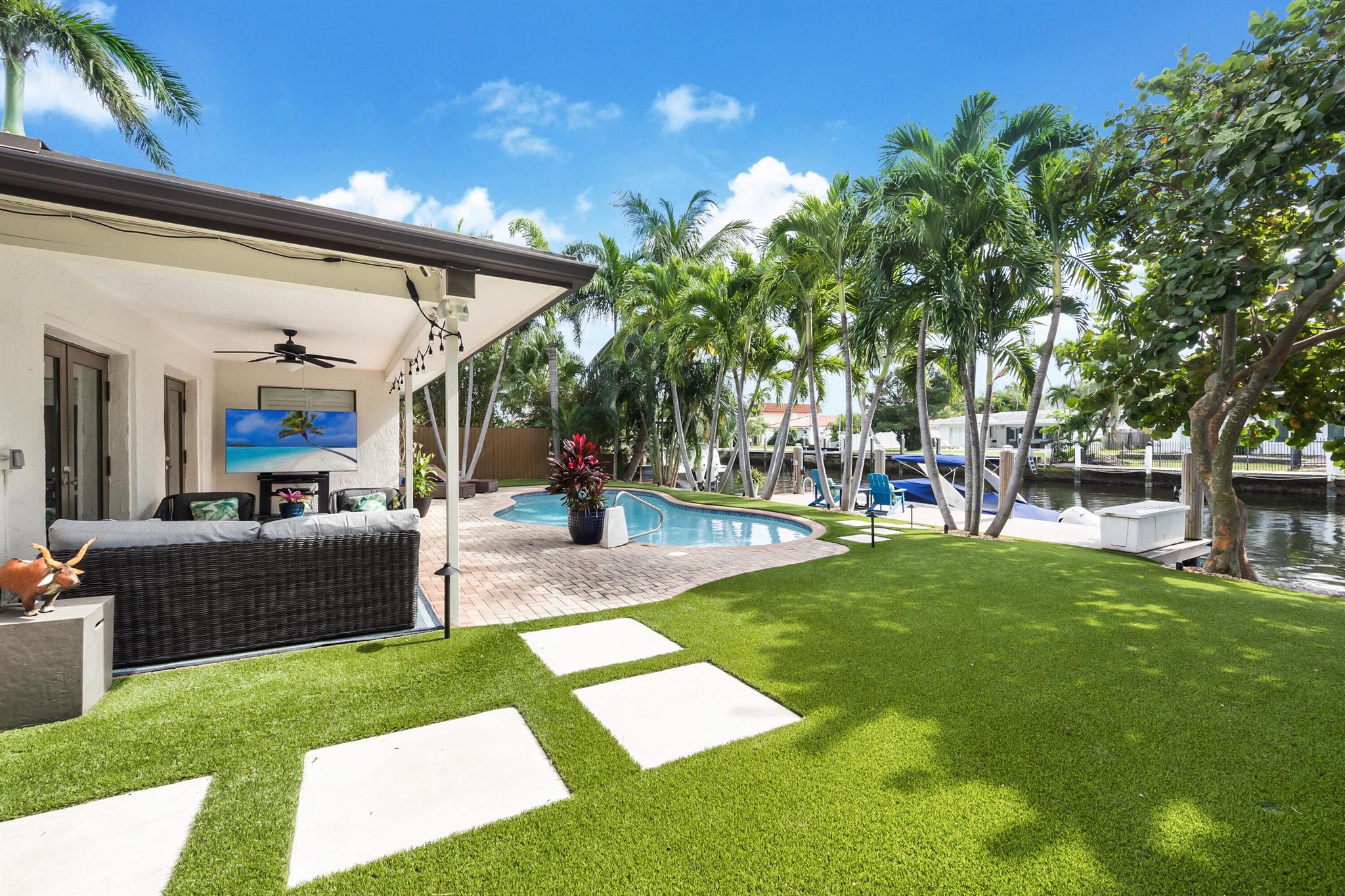 Come take a look at this beautiful waterfront home EAST of US 1 and in the heart of Fort Lauderdale! LOCATION, LOCATION, LOCATION! This is an incredible opportunity to purchase in this waterfront location for under 2 million! This home was renovated and offers a large outdoor pergola for dining, an outdoor grilling station, a very large pool with beautiful landscaping and new turf for easy upkeep. The home has a newer roof, split floorplan for privacy, a covered outdoor patio, and newer dock. The third bedroom was converted into a large custom closet and office so the new owner can use as-is or remove shelving to serve as a true bedroom. As a bonus the owner is leaving the Sea Pen which can hold up to a 32 ft boat (valued at 30K!). This property won't last-call me to schedule a showing!