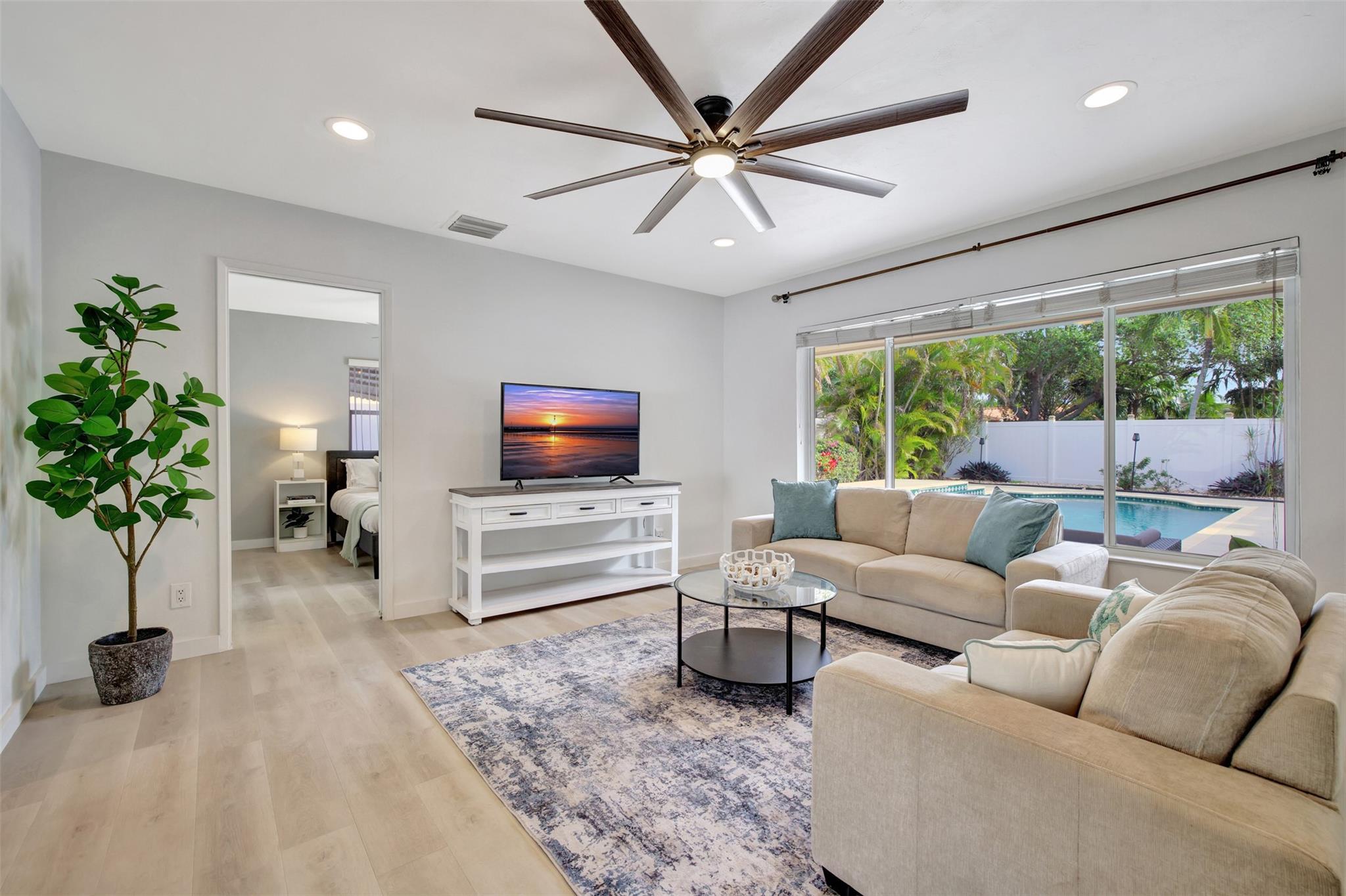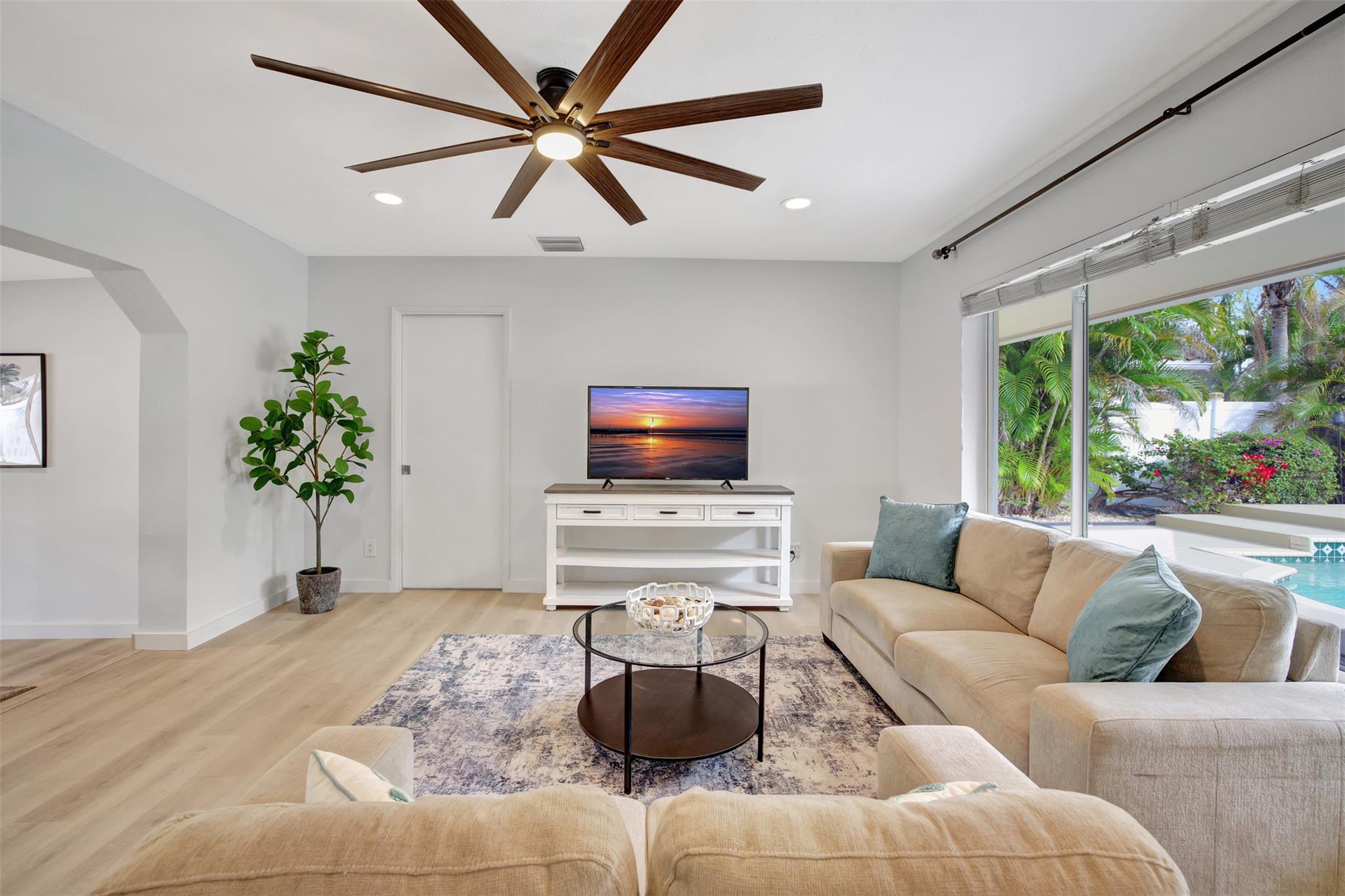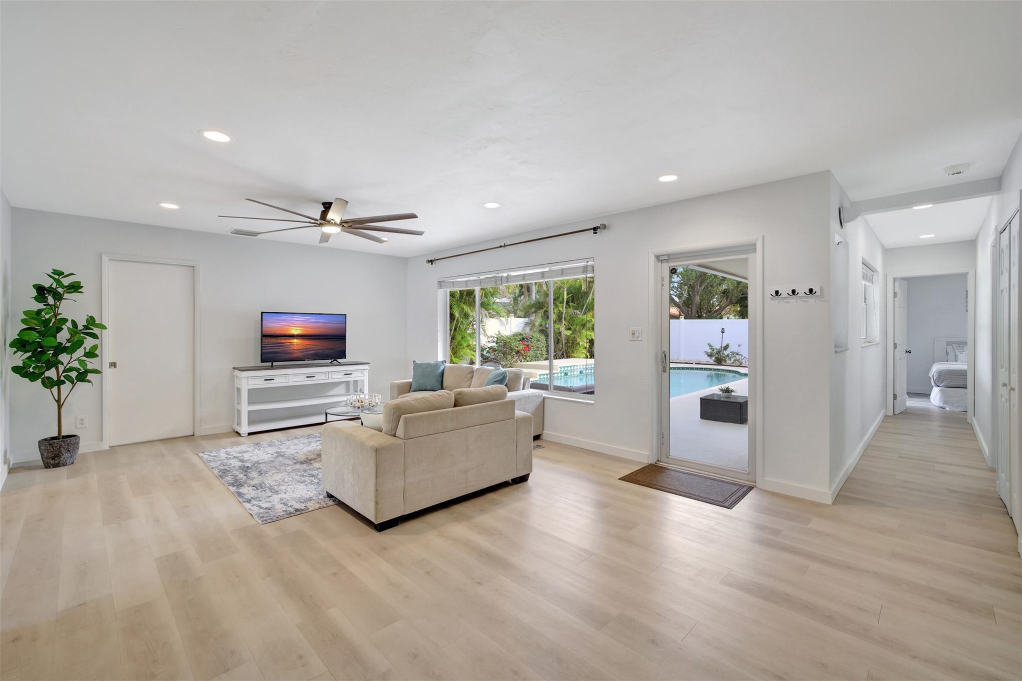 WELCOME TO YOUR POOL OASIS! FORT LAUDERDALE 3 BEDROOM 2 FULL BATH POOL HOME THIS FAR EAST JUST OFF US-1. This home features an extra large pool, private fenced in yard, gas range, salt system pool, and huge backyard. LOCATED minutes from the beach and walking distance to Publix, restaurants, stores and more. Desirable part of poinsettia heights on a quiet street, zero through traffic, custom homes, sidewalks, and tree lined streets. BRAND NEW kitchen and bathrooms, brand new flooring/baseboards, water heater 2022, smart washer/dryer 2022, roof 2011, a/c 2019, shutters insurance discount, sprinkler pump/timer 2024. Perfect for airbnb, vacation rental, family and pets. Walking distance to beach, shops, stores, restaurants and more!