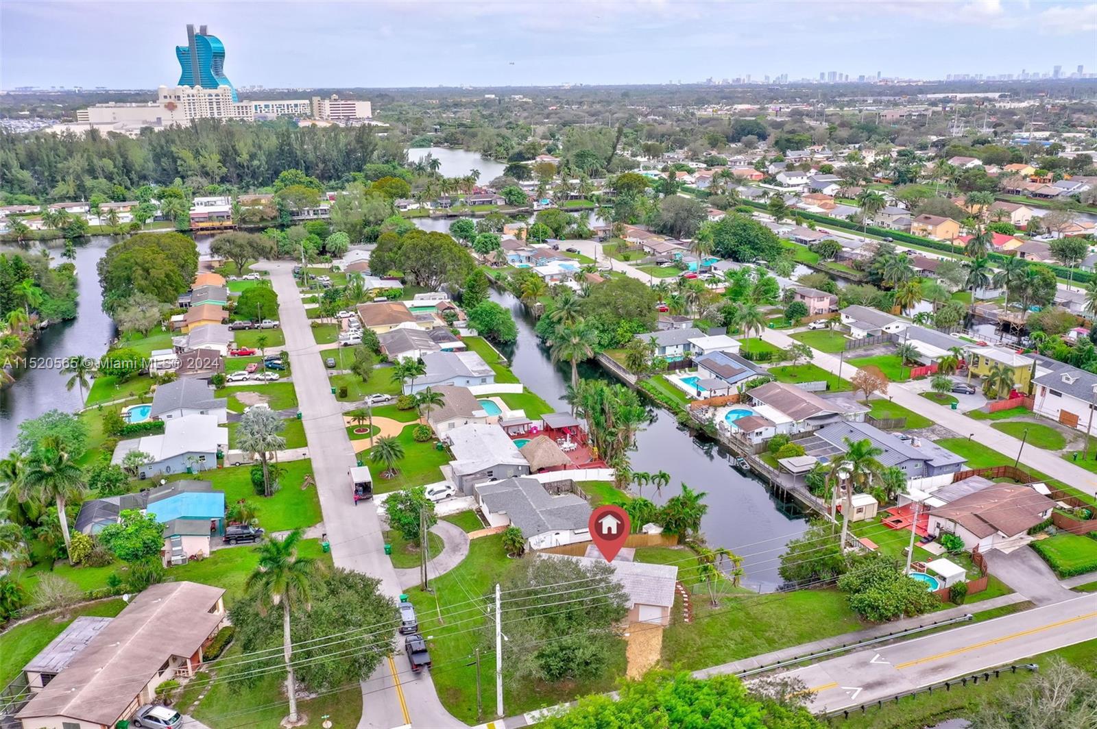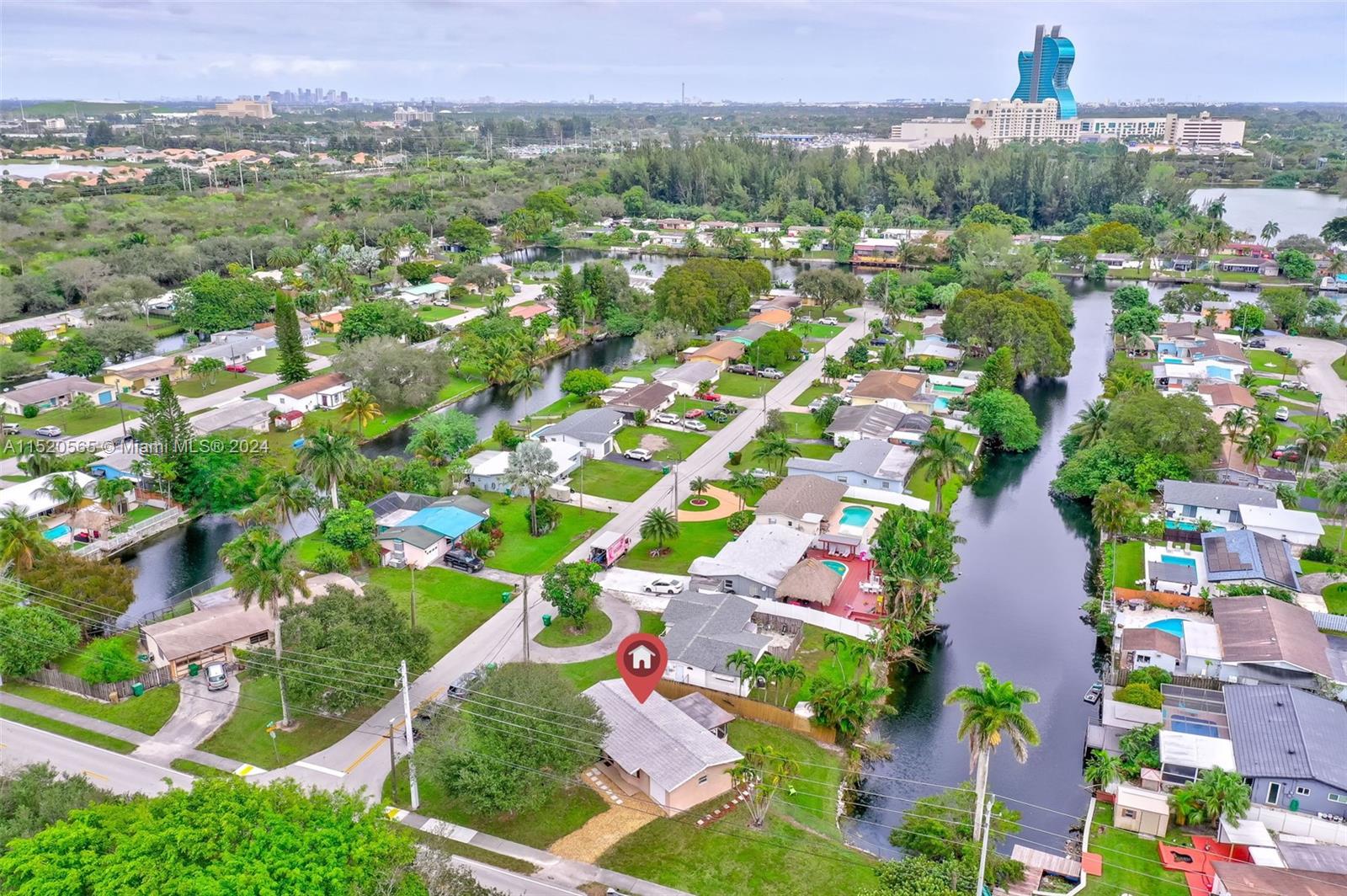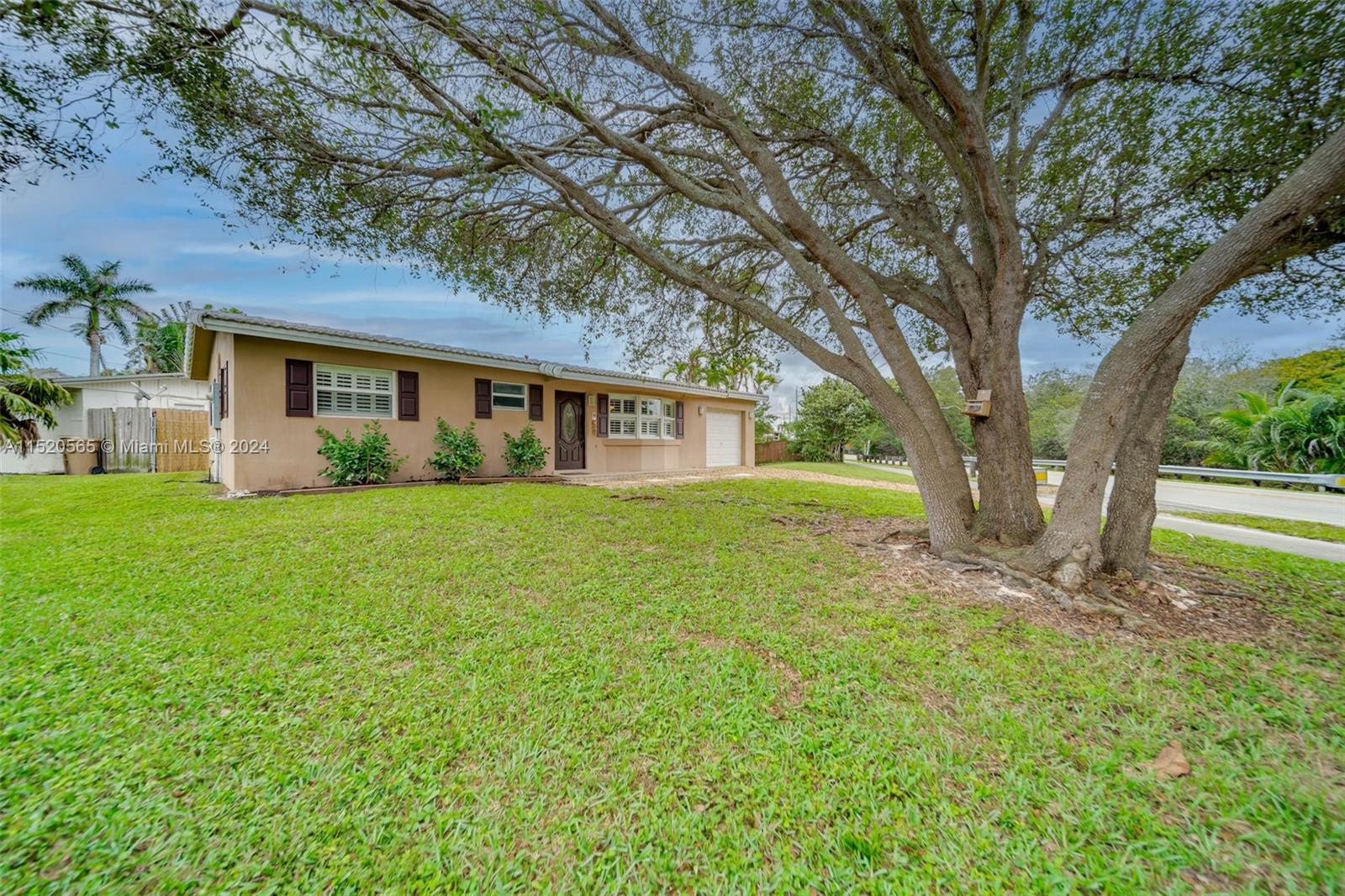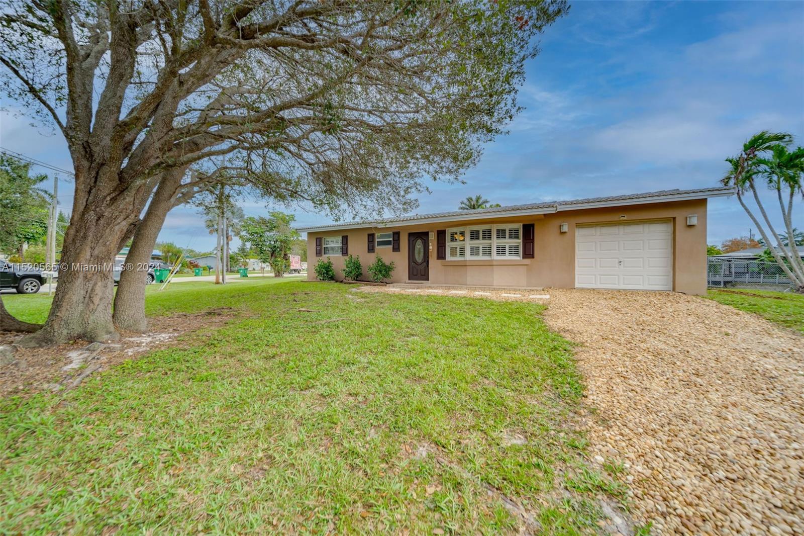 This charming Florida home is situated on an oversized corner lot, with ample space for potential expansion or the addition of a pool. It's central location places it just 5 minutes away from the Hard Rock Hotel, making it convenient for entertainment and leisure. The proximity to the turnpike ensures easy commuting, while the availability of shopping, dining, and houses of worship in the vicinity adds to the convenience. Inside the home, you'll find beautiful recently polished terrazzo floors. The modern kitchen offers a contemporary feel with the stylish blue-hue cabinets. The property boasts over 60+ feet of water-frontage, providing a picturesque view and space to drop a fishing line. There is no homeowner's association, so no restrictions -- lots of flexibility and freedom.