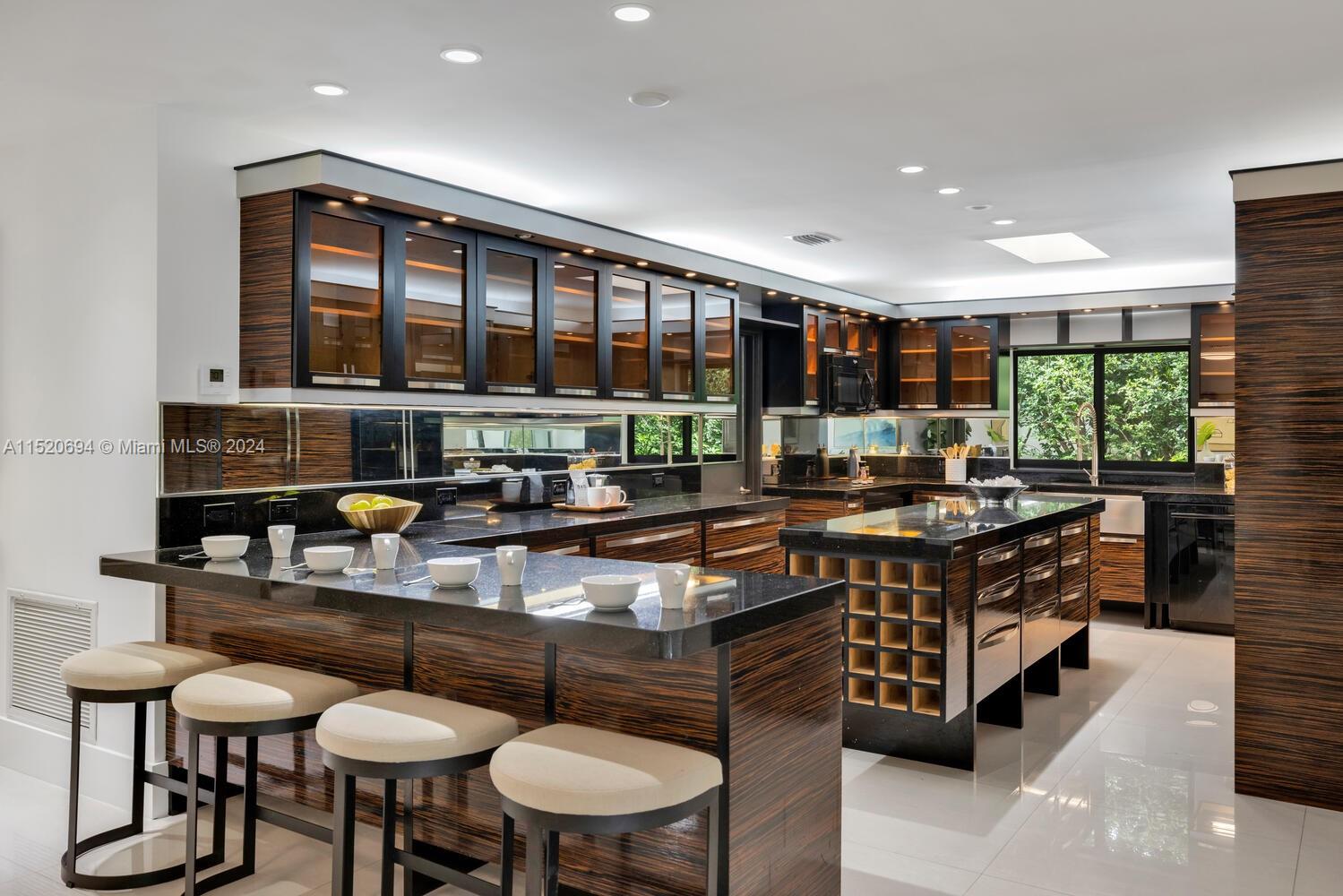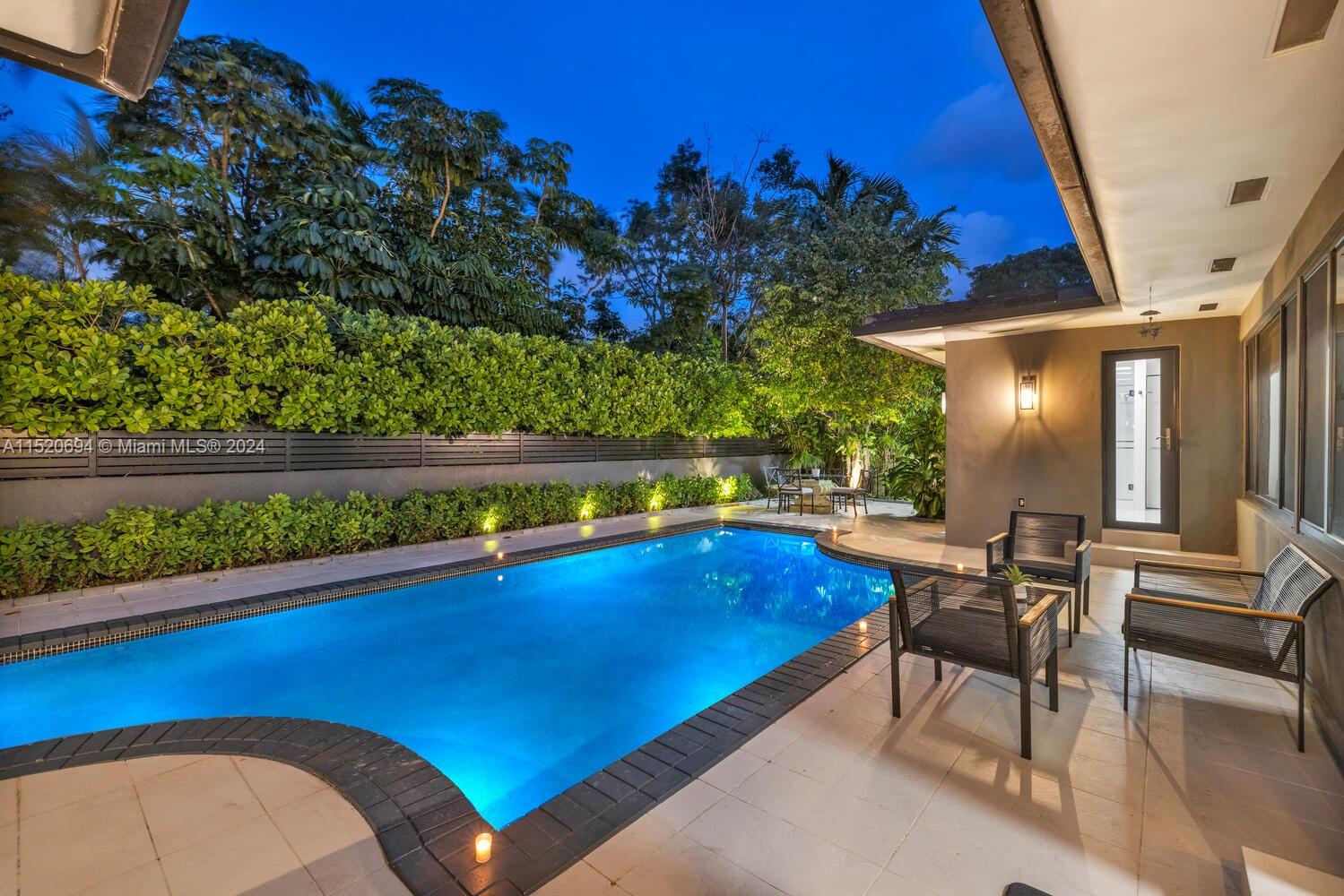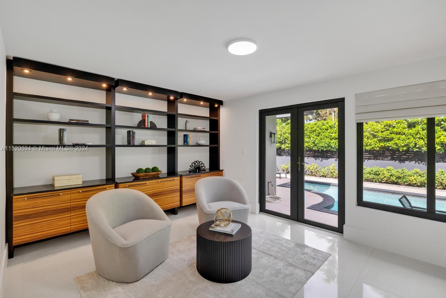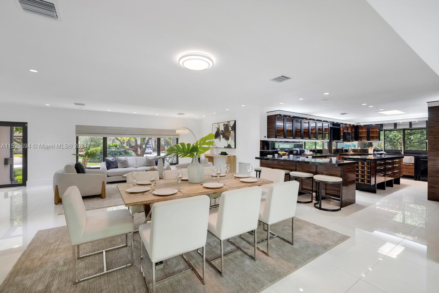 Welcome to Vila Brio! Come experience carefree luxe living in this beautifully updated sprawling mid-century modern designer pool home. Spectacular open-flow living, formal dining, grand media room and incredible double-sized custom eat-in dual-island gourmet kitchen with storage galore. Three spacious bedrooms in the main house, plus a fourth private entrance bedroom/legal in-law quarters with its own bath. Escape outside to the cleverly curated resort garden paradise with a sparkling pool, mature privacy landscaping, entertainment patios and space for relaxation. Totally turn-key: impact windows-doors; updated kitchen, baths, plumbing, electric, and porcelain tile floors; plus new A/C and pool equipment. All in Miami Shores' most prestigious neighborhood, on a quiet cul-de-sac