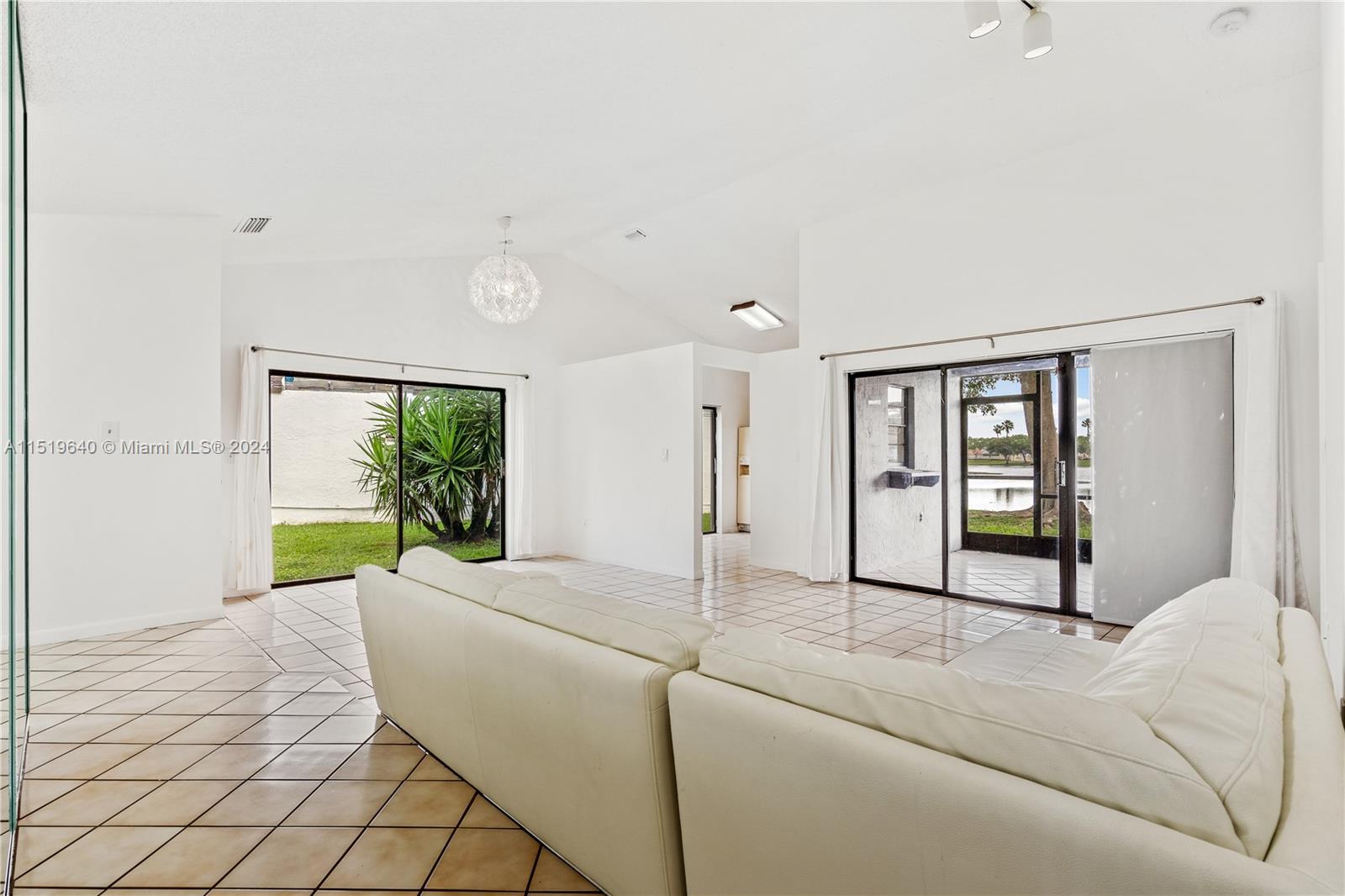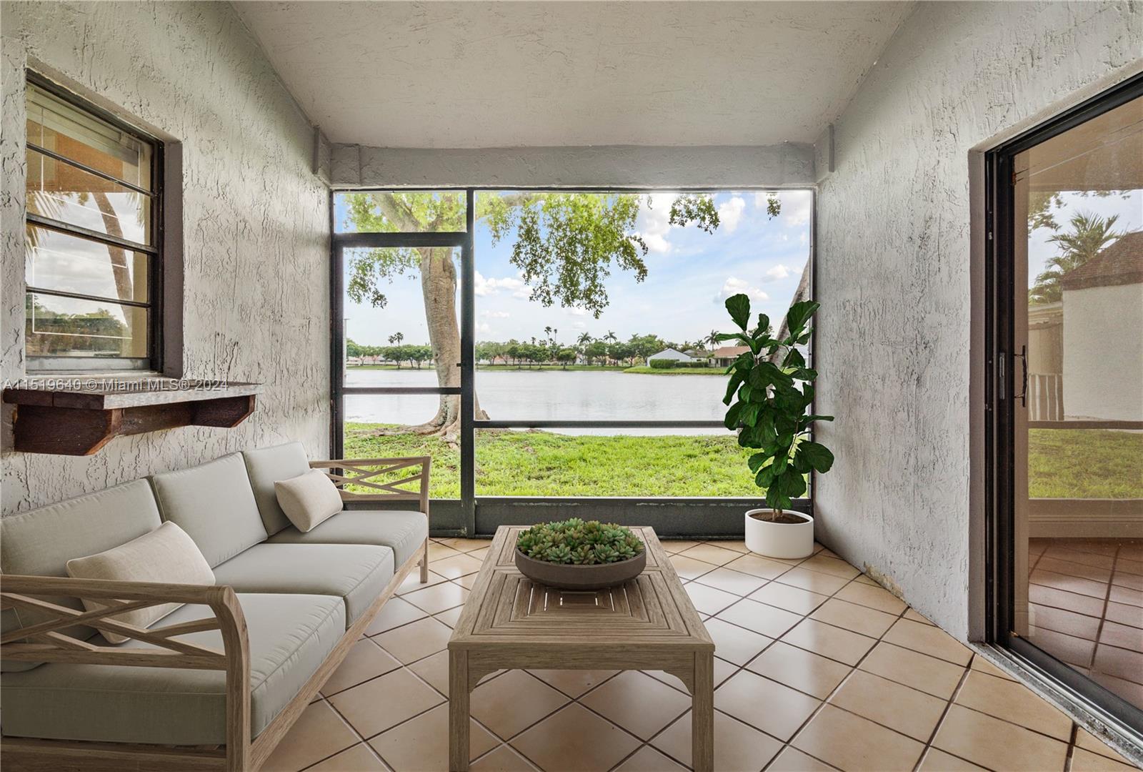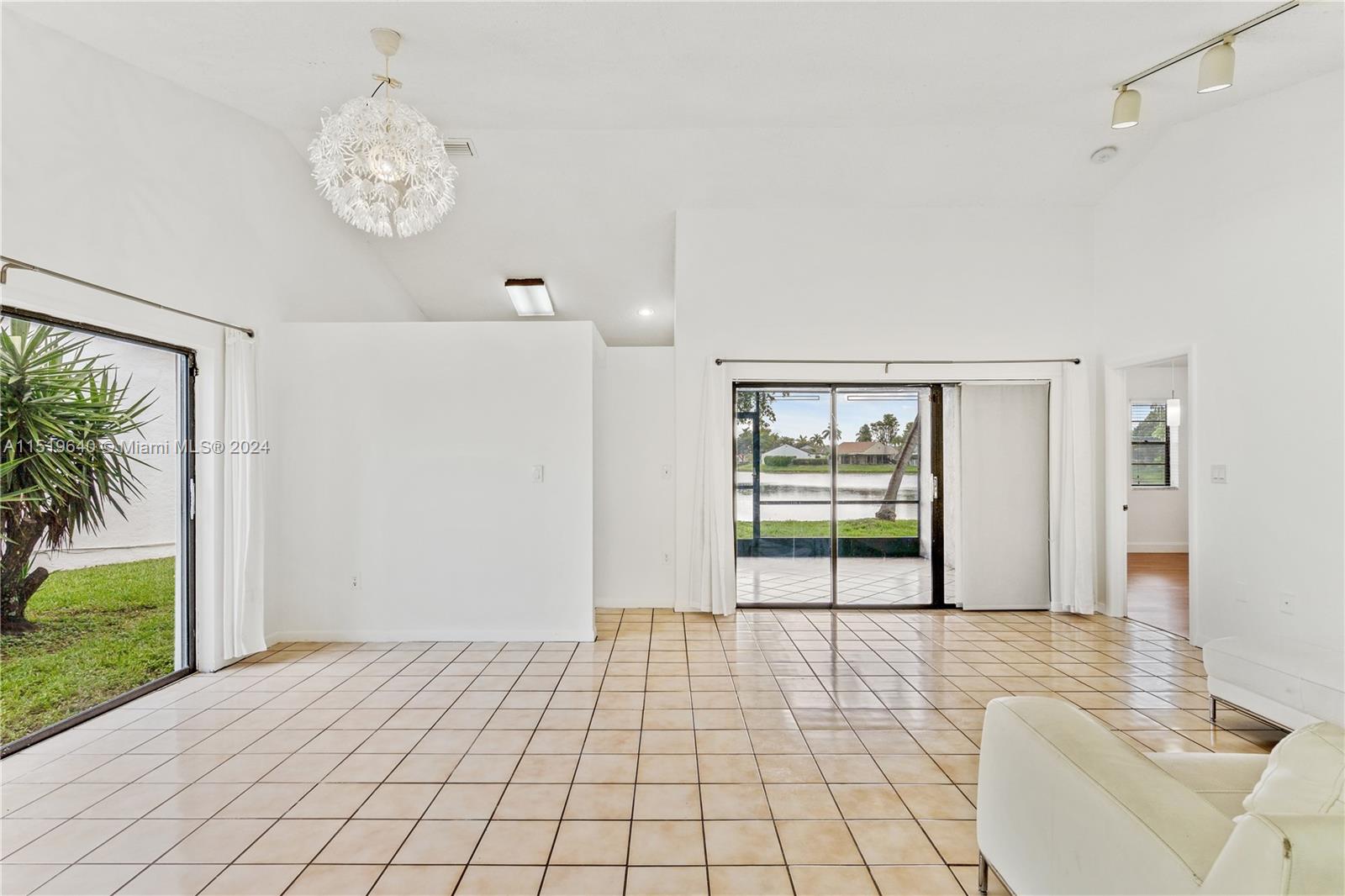 Stunning home on a lake in the Country Club of Miami / Town of Miami Lakes area. This beautiful home has 3 bedrooms & 2 full baths, volume ceilings, lots of natural light, screened patio, split floor plan, & 1 car garage. Each bathroom has both a tub & shower, with new light fixtures & toilets. Primary bathroom has a large Roman tub & shower, dual sinks in vanity, & skylight above the large Roman tub. The bedroom at the front entrance was converted during the original construction to a den with a wet bar. It can be restored as a bedroom by removing the wet bar area & reinstalling the closet. House has a new central HVAC system, new electric wiring & new breaker box. Ceramic tile throughout, with laminate wood flooring in bedrooms. A perfect blend of luxury and natural beauty!