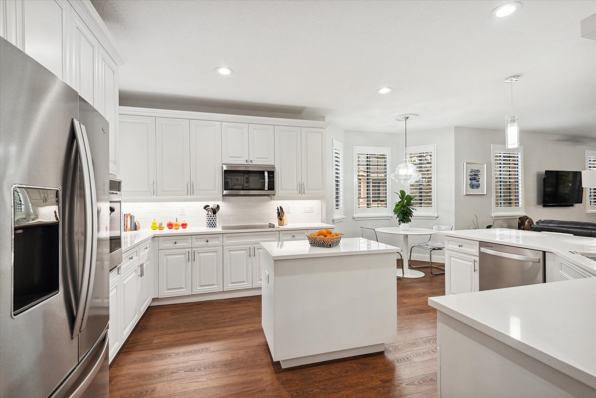 Welcome to this beautiful 3-bedroom 3-bathroom home in truly immaculate condition. Among many features, you will find an elegant and open floor plan with LVT floors throughout. This great home has been fully renovated with exquisite finishes. Spacious primary suite and a second En-suite. A murphy bed in the 3rd. bedroom. Tastefully upgraded kitchen with Cambria quartz countertop and newer stainless-steel appliances. A kitchen island and breakfast area. Bedrooms with custom made closets. Pantry and plenty of storage. All impact windows including the enclosed covered patio that offers a relaxing area for your enjoyment. Space designed by builder for an elevator option. 2 Car Garage. Gated community. Walking Distance to Weston Town Center for Shopping and Dining. Easy Access to Highway