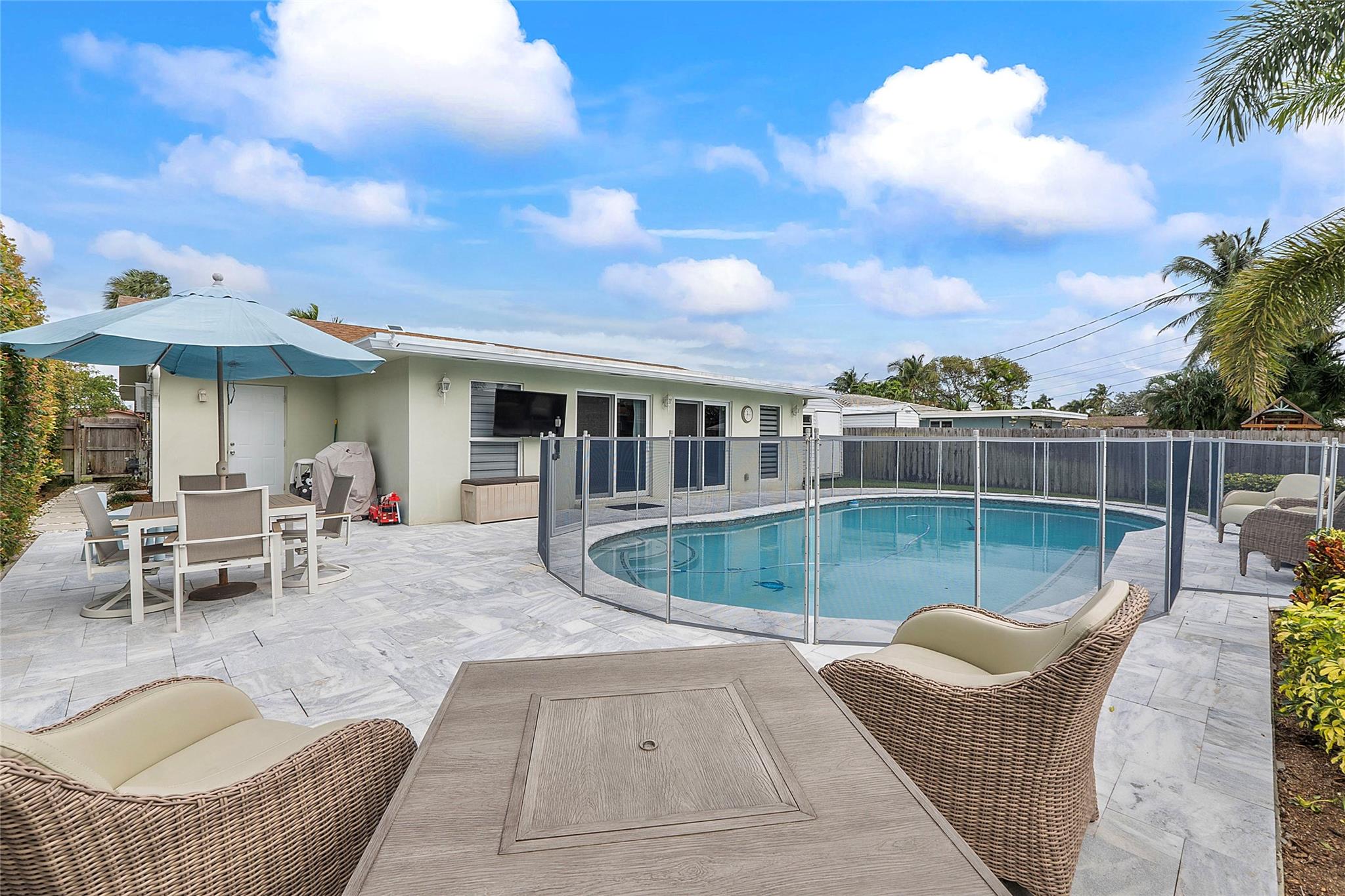 WELCOME HOME TO THIS BEAUTIFUL, SPRAWLING RANCH HOME LOCATED 2 MILES FROM THE BEACH & NESTELED ON A QUIET STREET. ONCE YOU ARRIVE YOU WILL BE GREETED w/ WARM CURB APPEAL, FRESH LANDSCAPING,NEW CIRCLE DRIVEWAY & A CHARMING FRONT PORCH. COME INSIDE: BE STUNNED WITH THE OPEN FLOORPLAN, CONSISTANT TILE FLOORS IN ALL LIVING AREAS, NO STEP DOWNS! LARGE FAMILY RM OFF POOL W/BUILT IN BAR. AMAZING FLEXIBLE SPACE INCLUDING: 4 LARGE BEDRMS, BONUS RM OR NANNY QUARTERS CAN BE CHOSEN. LARGE YARD W/ NEW MARBLED POOL DECK, HEATED POOL, OUTDOOR SHOWER, STORAGE SHED, CUSTOM CLOSETS IN BEDROOMS, ZEBRA BLINDS, FULL IMPACT HOME, GAS TO HOME, NEW MUD ROOM/LAUNDRY. SO MANY UPGRADES TO MENTION! YOU WILL NOT WANT TO MISS YOUR OPPORTUNITY TO SECURE MAKING THIS YOUR HOME.