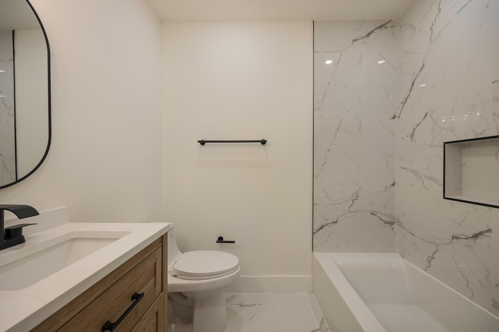 Welcome to the most beautifully updated home in the area for the price! 7251 Fairway is move in ready! Owner's suite has a large walk-in closet with closet racks, flooring throughout is Italian marble look porcelain tile, Both bathrooms are renovated with timeless large format marble look porcelain, wood accent vanities and black finishings. Kitchen features white shaker cabinets, new stainless steel appliances & quartz countertop & backsplash. The kid's bedrooms are a good size & all closets have organization systems so hurry & unpack! The home offers a very large screened in patio to relax and or to gather lots of friends and family together. The backyard is newly sodded & is large enough to build a pool! W/D included. Water heater & AC like new. Roof good condition.