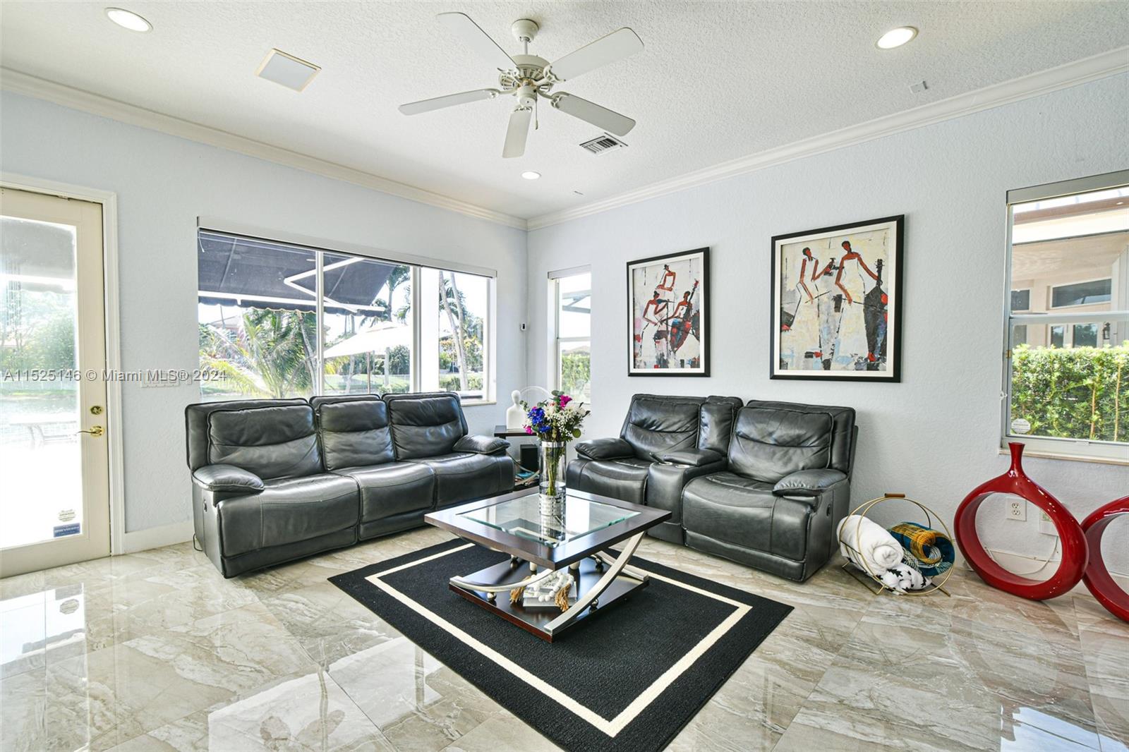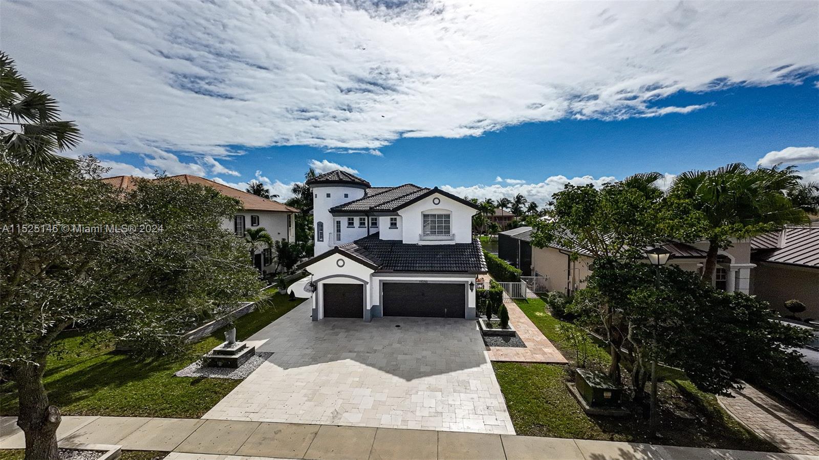 Price to sell now! Spectacular Mediterranean-style home in Sunset Lakes- Grand Isles! Lakefront 4 Bedrooms 3.5 Bathrooms This home is sure to impress upon view. High vaulted ceilings, formal living and dining room, large kitchen with double oven and granite countertops and quartz island. Awesome family room perfect for entertaining. The home features a full 3-car garage mesmerizing views of the lake with a spacious seating area by the pool.