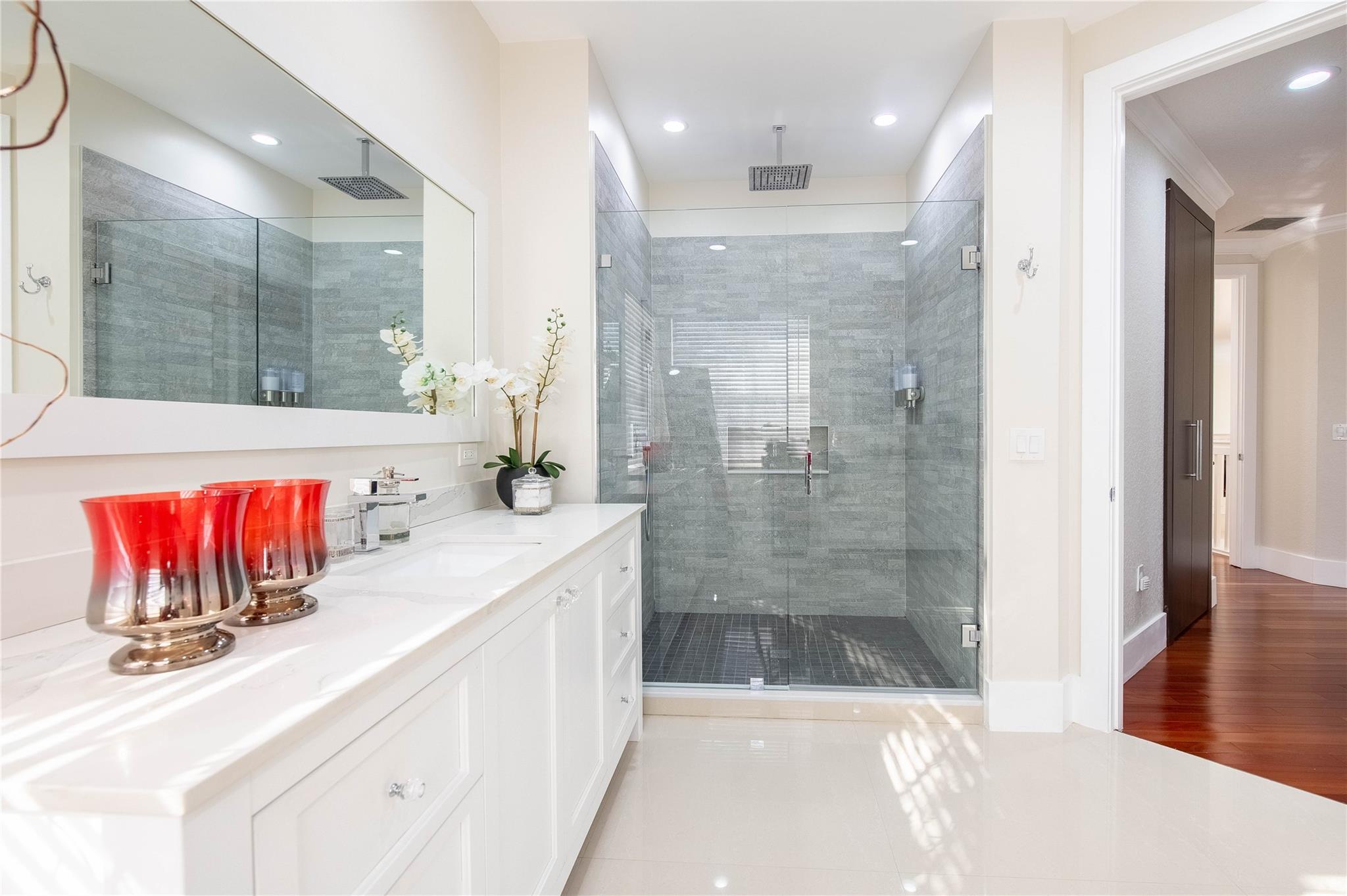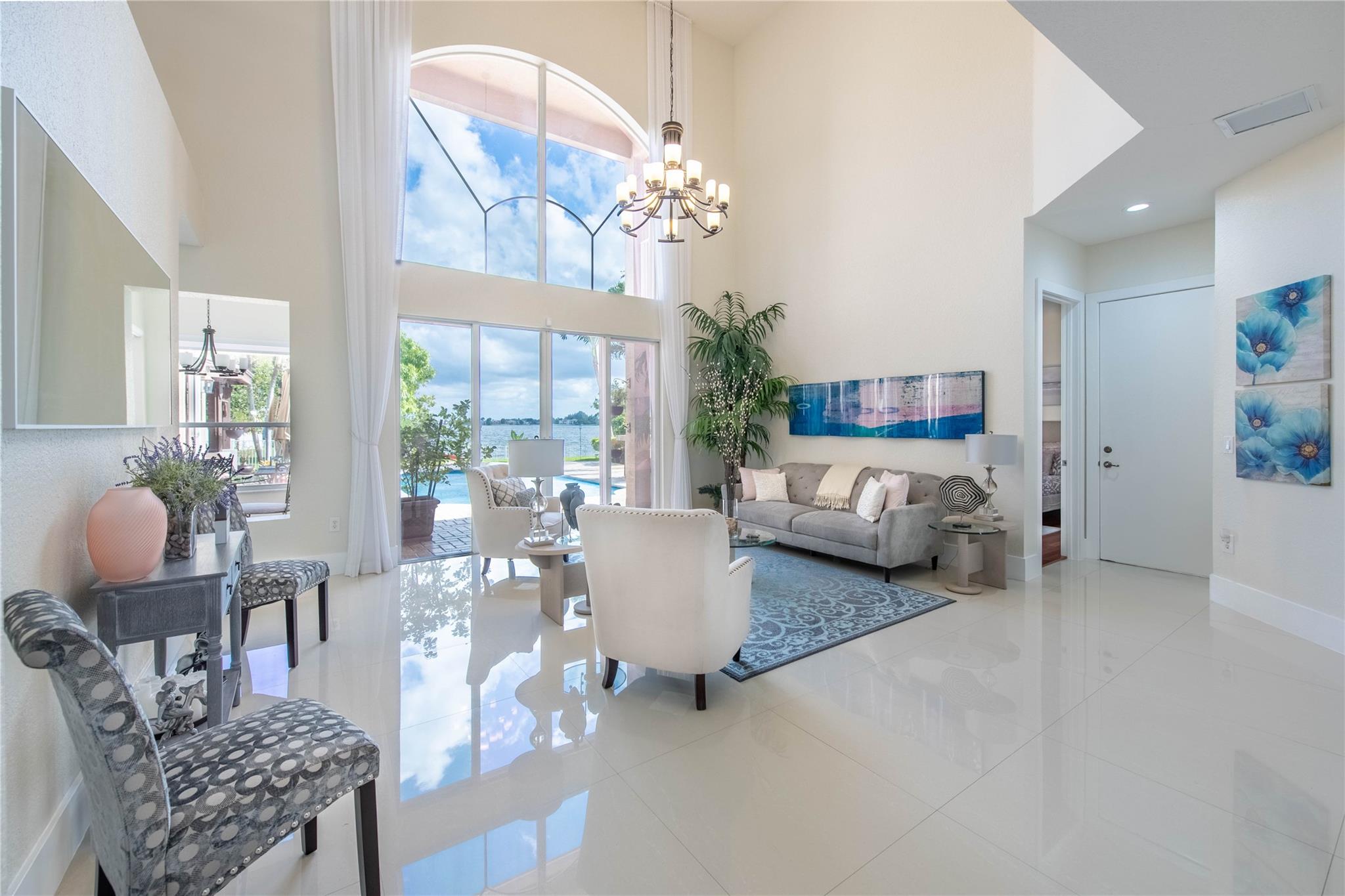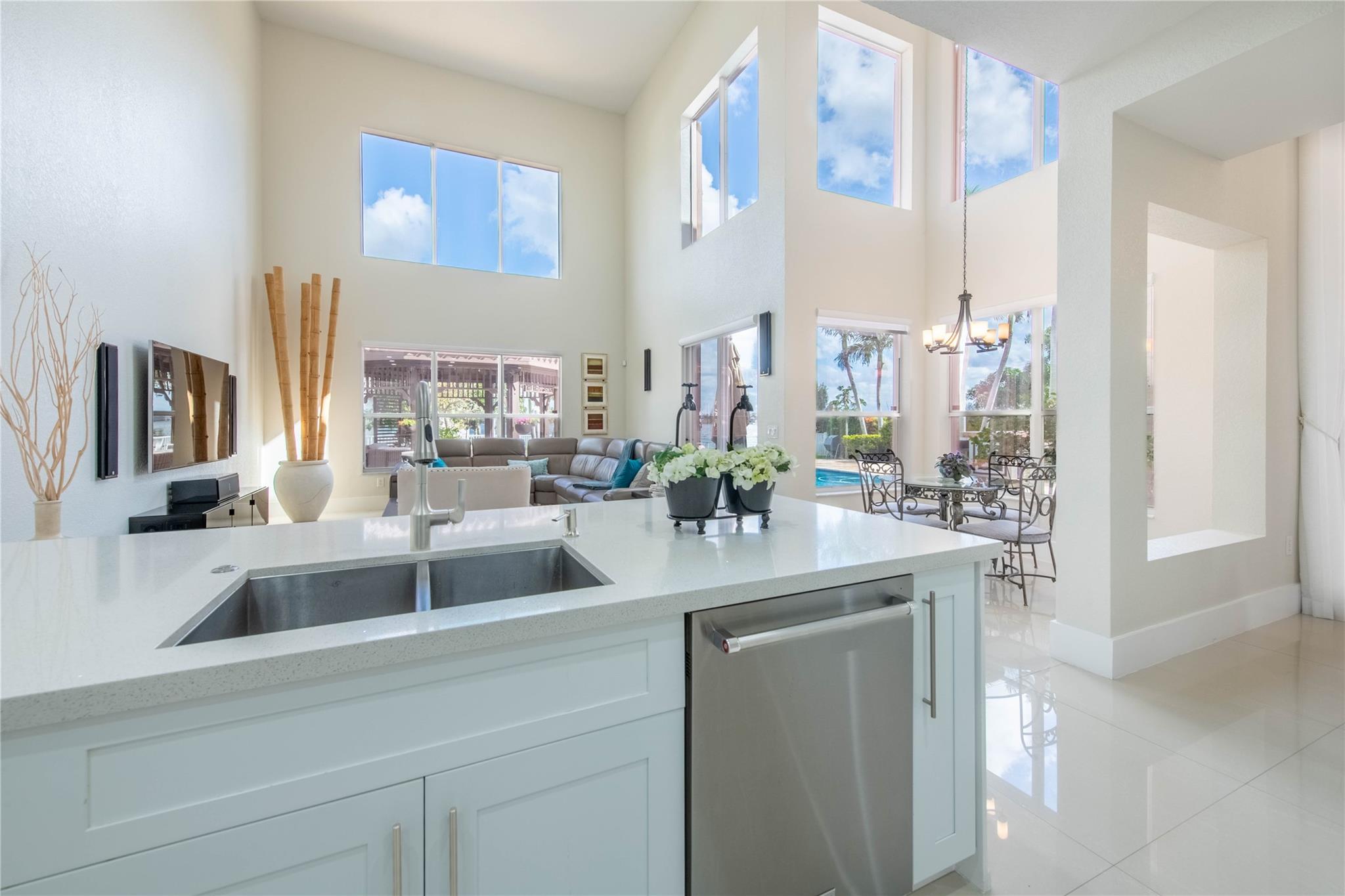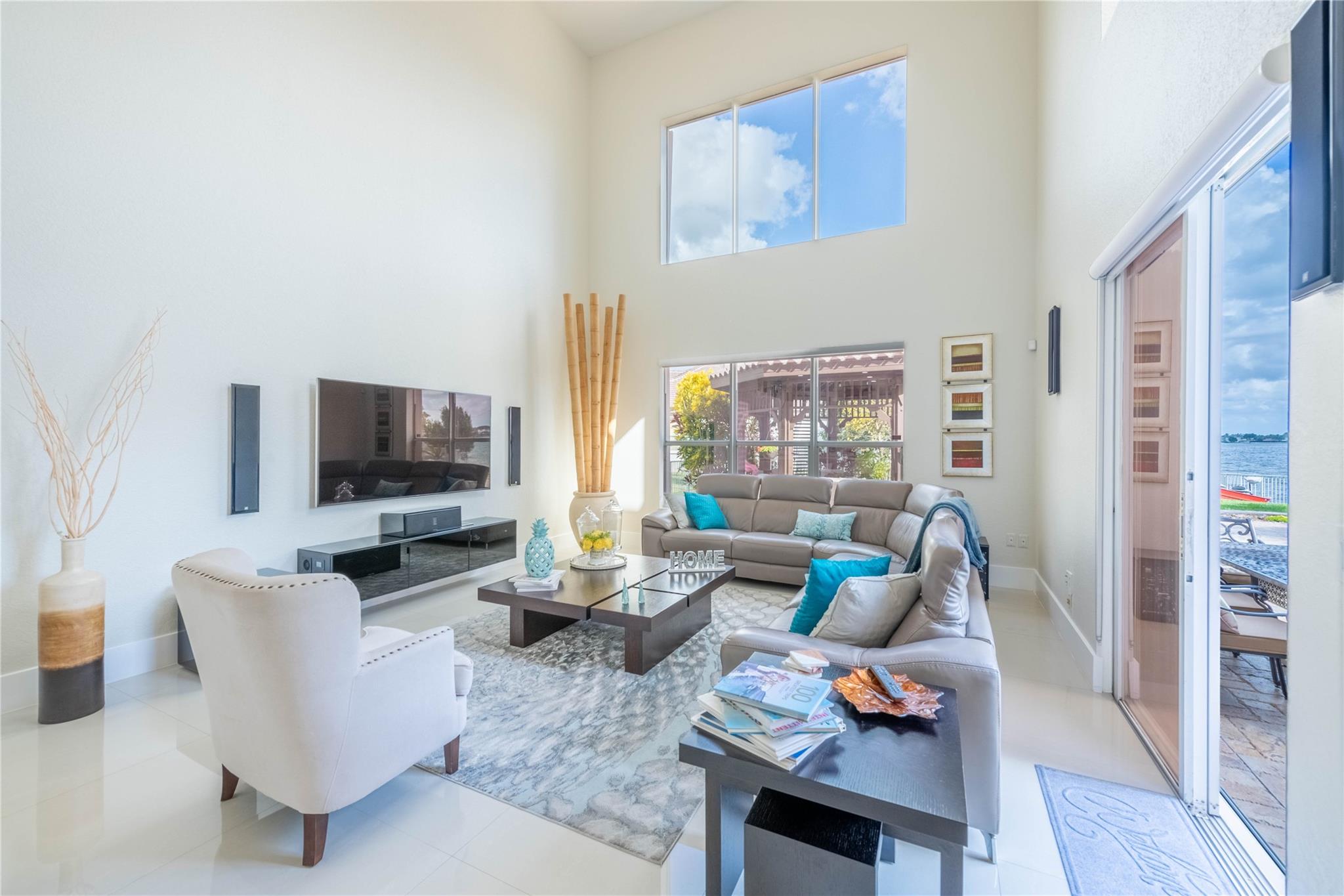 Spectacular water front and completely remodeled house . New and modern kitchen with Kitchen Aid appliances, quartz countertops, neutral porcelain floors on the first floor and Brazilian Cherry wood on the second floor, new bathrooms, freshly painted, new A/C units , accordion shutters .one bedroom downstairs with a private bathroom and office. Enjoy the resort style backyard with a breathtaking lake view,pool, travertine pavers, a custom made wood gazebo, outdoor kitchen island , lush landscaping with surround sound throughout the patio.