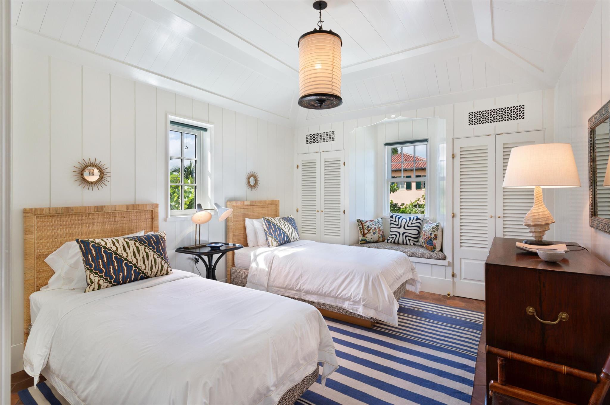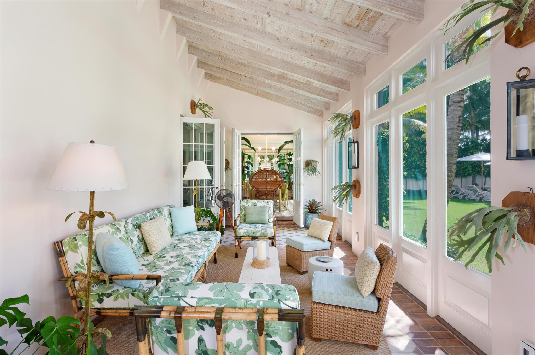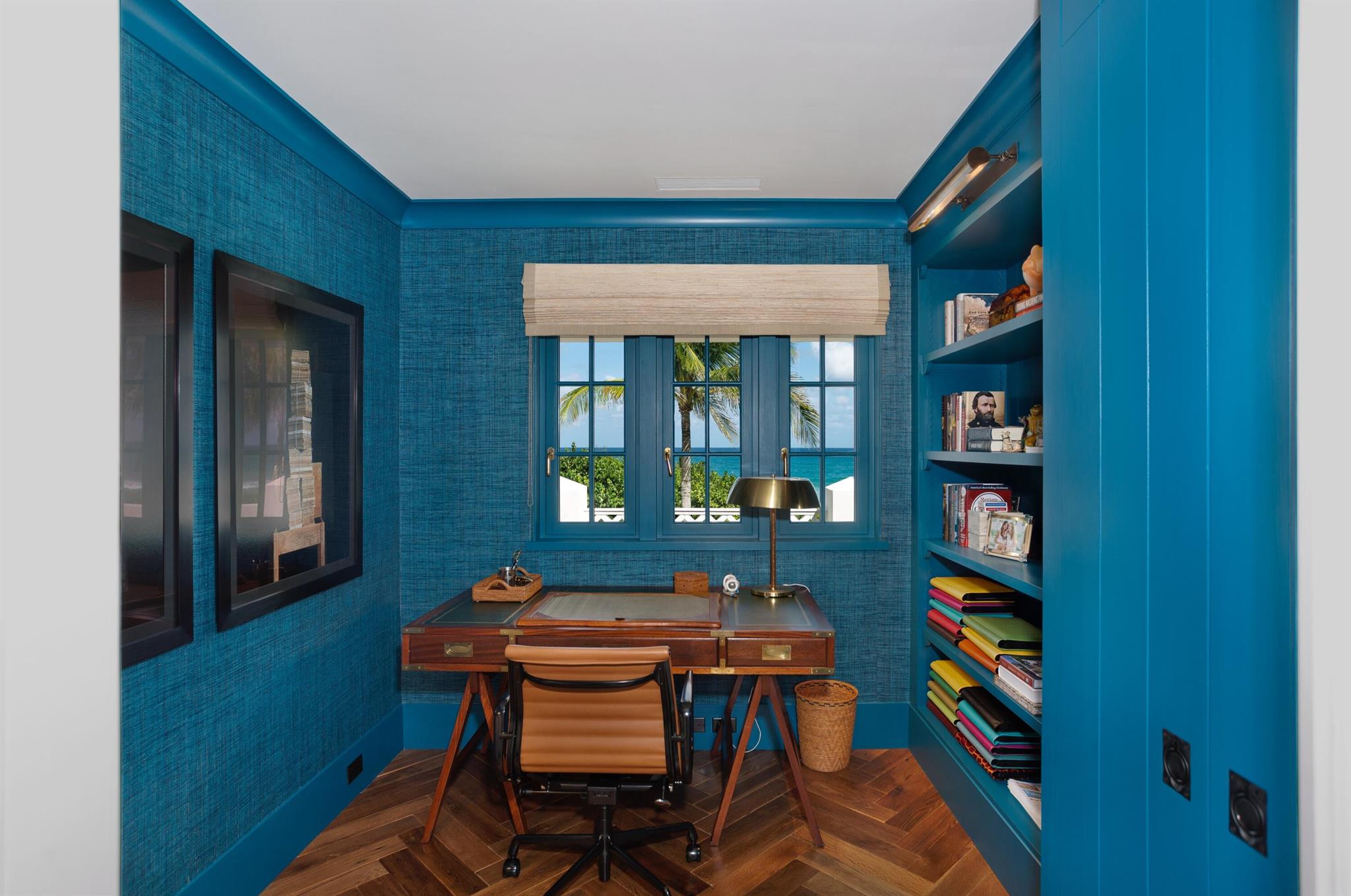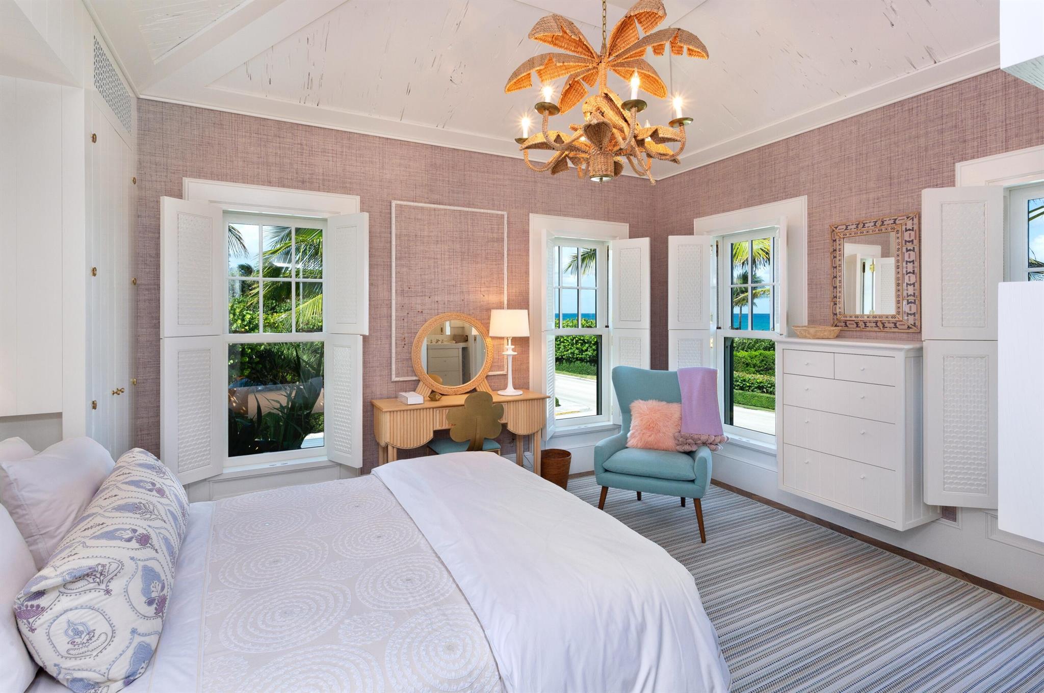 Oceanfront Bermuda beach house in Palm Beach strategically sited on a 20,038 SF parcel with another 21,780 SF on the direct ocean, totaling 41,818SF. This crisp and modern 6 BR home with a hint of patina & floors that sandy feet won't damage was designed by Moor, Baker & Associates, built by Tim Givens Building in 2018. The story of the house is windows, glass doors and all natural materials including the antique oak flooring, cypress doors, zero VOC interior paint, brass, bronze and copper hardware and fixtures soy-based plywood for cabinetry and solid pine floor underlayment just to name a few. The 8,900+ SF home features formal living and dining spaces, a charming, screened porch overlooking the gorgeous pool gardens and cabana with fireplace. Perfect for black tie & barefoot living.