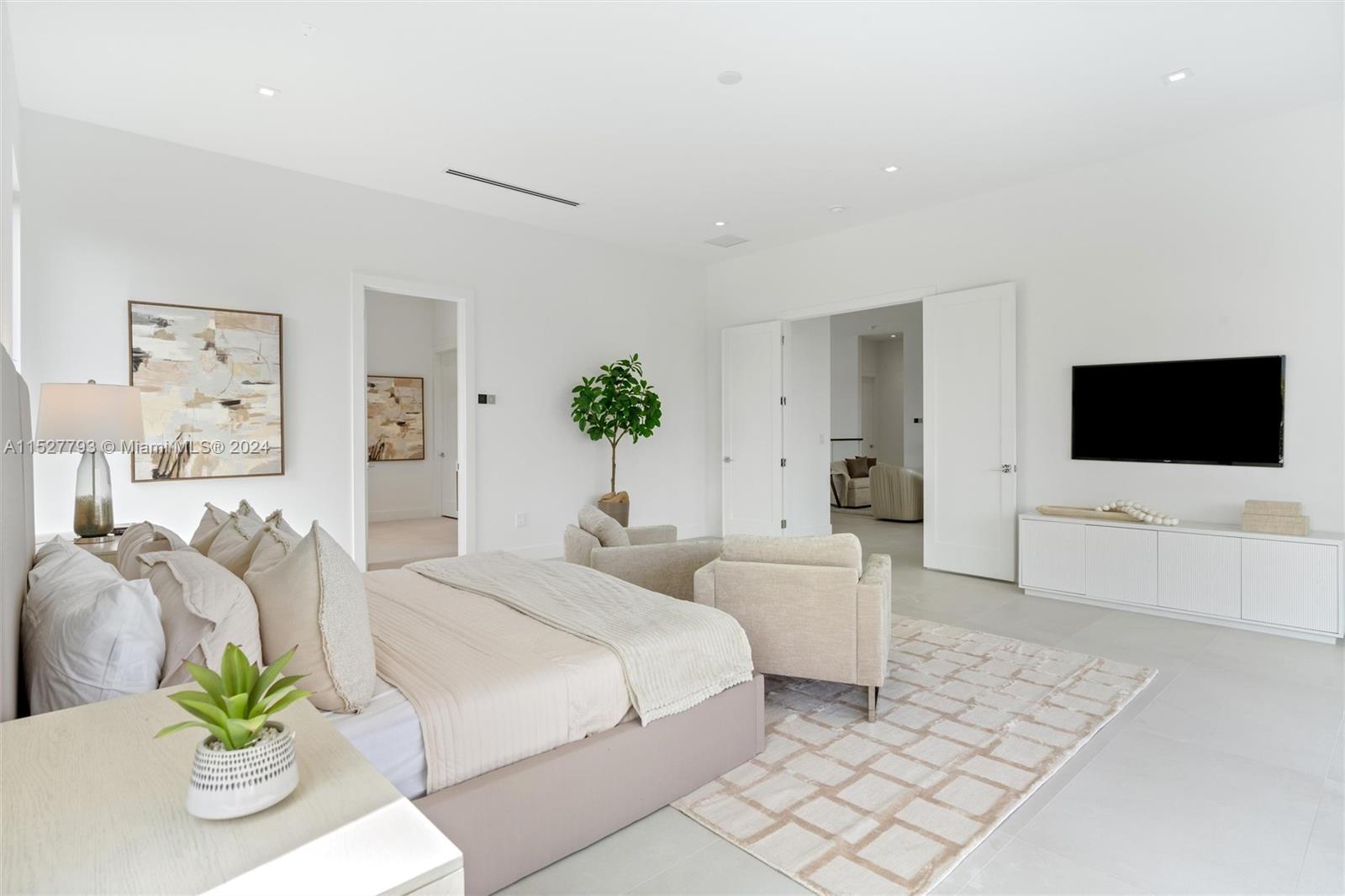 Ready Now to Move In! New Waterfront Modern Home. 7 bedroom, 8 Bathroom, 2 car garage (4 car garage option with lifts). 75' of waterfront with a 50' dock with direct access to Biscayne Bay including a 20,000-pound boat lift with space for all your water toys. Extra large backyard to enjoy heated pool/spa and tropical landscape. All windows and doors are hurricane-impact glass to provide storm protection. Interior finishes include Italian porcelain tile, Sub-Zero/ Wolf Appliances, and modern sleek kitchen design and finishes. All lighting is energy-efficient LED recessed and surface lighting. Ceilings are 12' on the 1st floor and 11' on the 2nd floor with 8' tall interior doors to give all rooms an expansive spacious feeling. This is the Miami waterfront lifestyle you are looking for!