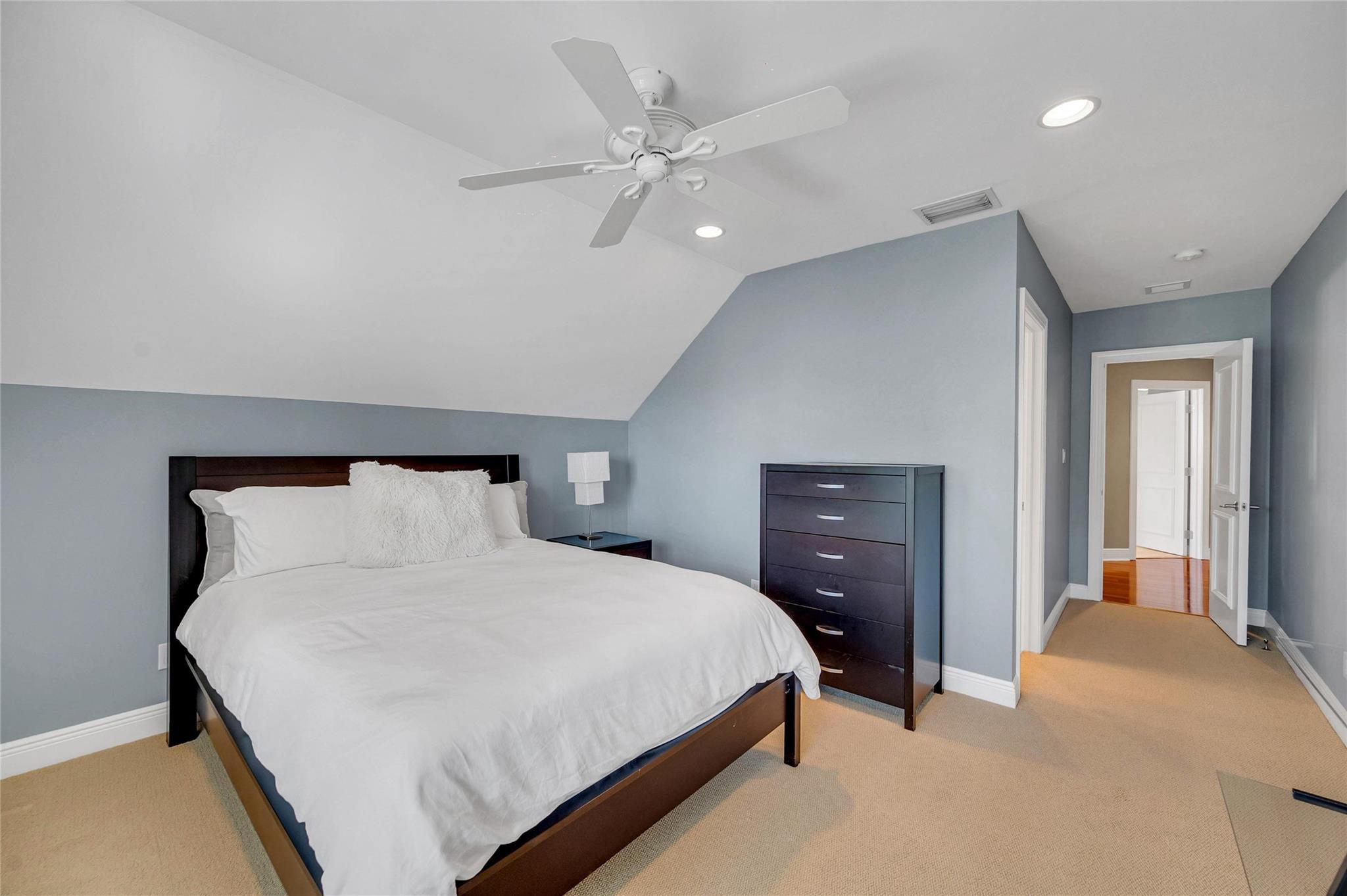 On a lovely residential street in Victoria Park, this home has a fabulous floor plan with high ceilings, spacious rooms, charming dormer bedrooms, a brand new eat-in kitchen and an entry level bedroom. The wide foyer entry flows through to a roofed patio and picturesque gardens featuring a waterfall, pond with a foot bridge and flowering tropicals surrounding a free form pool. A family room and formal dining room both open to the rear yard. Upstairs is an impressive primary suite and nearly as luxurious VIP suite both with generous closet space and high ceilings. The newly refinished two bay garage is attached. A deep brick paved driveway allows ample parking for your guests. Holiday Park is two blocks away. Multiple quality food markets, restaurants, parks and the beach are nearby.