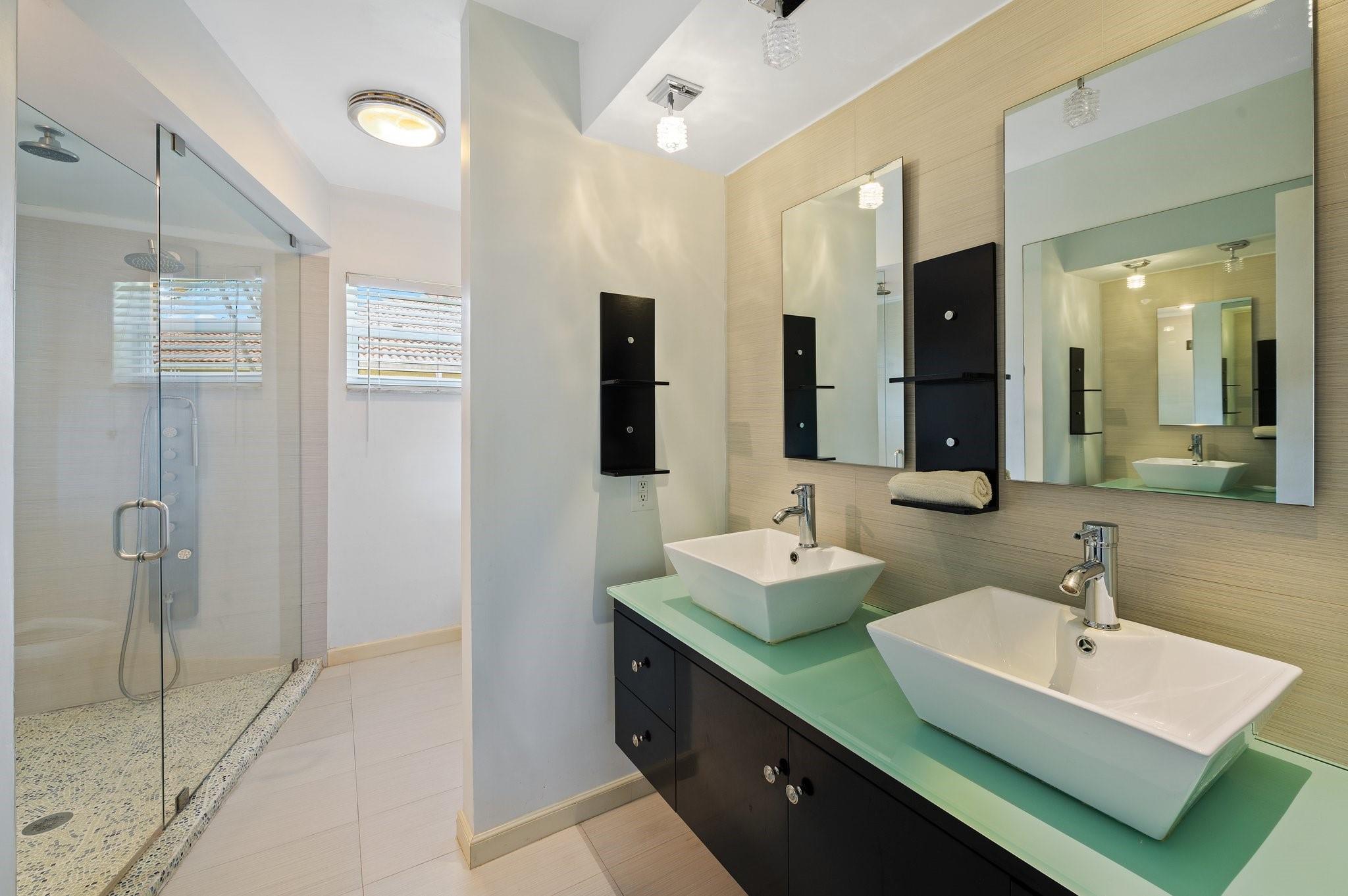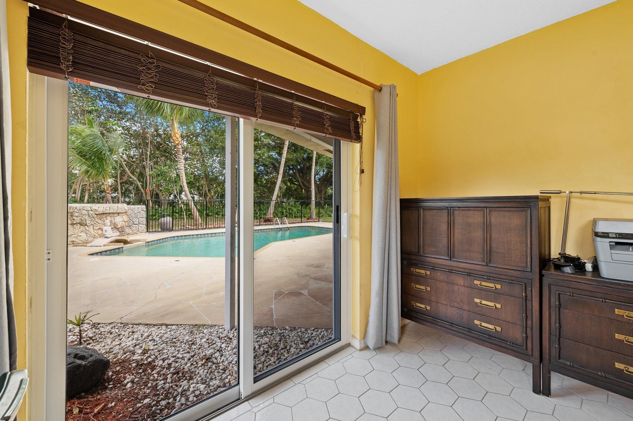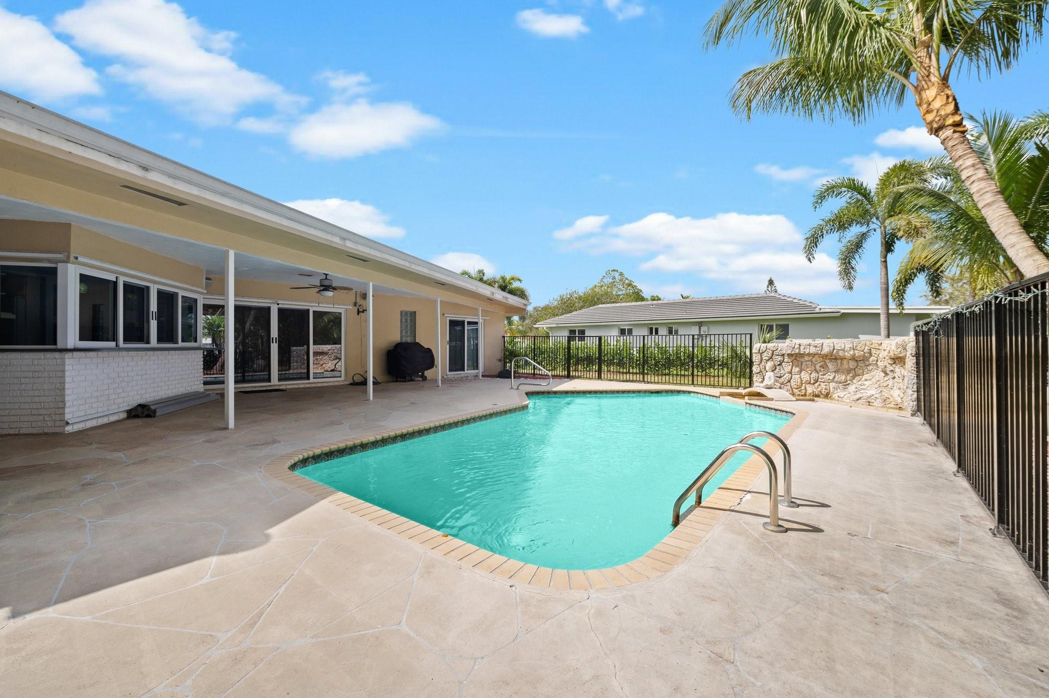 YES, It's true, Estates Drive does NOT have a homeowners association!! If you're an investor, you can lease the property right away without any restrictions. Come and take a look at this spacious & designer ready, single story 3-BR 2-BA 2-Car Garage waterfront/pool home with a large circular driveway. Windows & Doors (including the garage door) are HURRICANE IMPACT with the exception of the block glass in the guest bathroom shower. Both bathrooms have been renovated and feature modern design. The kitchen features numerous windows overlooking the beautiful, gated, pool & deck (part of the desk offers a covered area for shade). Behind the fenced in pool is a spacious lakefront back yard with many mature trees and ferns which provide full privacy from the high-rises across the lake.