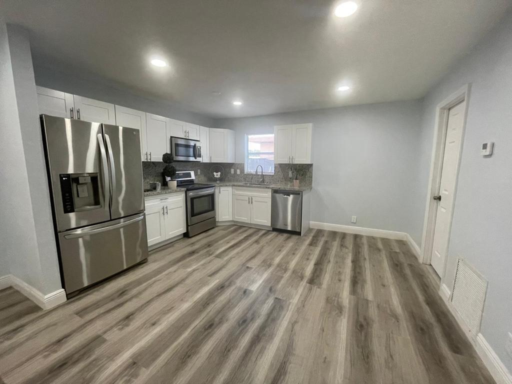 Welcome to your dream home! This lovely residence offers a house full of light and truly inviting atmosphere. The home is with new floor, washer and dryer, Brand-new Fridge, roof, and impact windows in all the house. Have a BBQ in the backyard garden. As you step inside, you are greeted by a grand Florida-style living room that showcases an abundance of natural light streaming in through large windows. This Beautiful lovely 1,285sqft home, 3 bedrooms, 2 full bathrooms, the open Kitchen boasts stainless steel appliances, shaker cabinets and granite countertops. The tankless electric water heater ensures hot water, The backyard landscaped garden. Whether you're hosting a barbecue for family and friends or simply enjoying an evening.