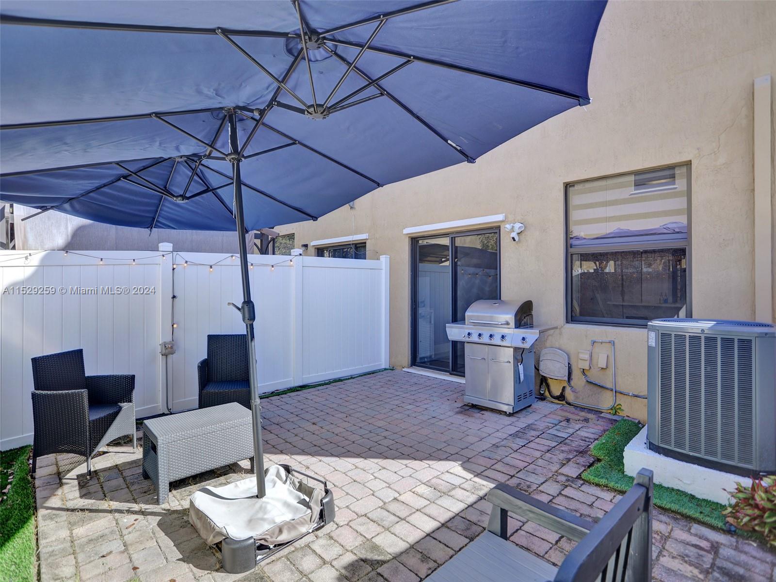 Beautifully updated 2 bedroom 2.5 bath corner townhouse in excellent community of Bonterra. Property has been updated with large format modern tile in the first floor and vinyl in the second floor. There is modern blinds through out the home which allow the perfect amount of light in the property while still being stylish. Corner unit allows for amazing natural light to enter the home. Backyard is fenced and has pavers installed to be able to entertain and have BBQs. The kitchen is an open style kitchen which faces the living area so that it allows for entertaining.On the second floor you will find the Primary Bedroom with walk-in closet. The Primary bathroom has updated shower with glass enclosure. Second bedroom also has walk in closet and nice bathroom. Soccer, basketball, pool and more