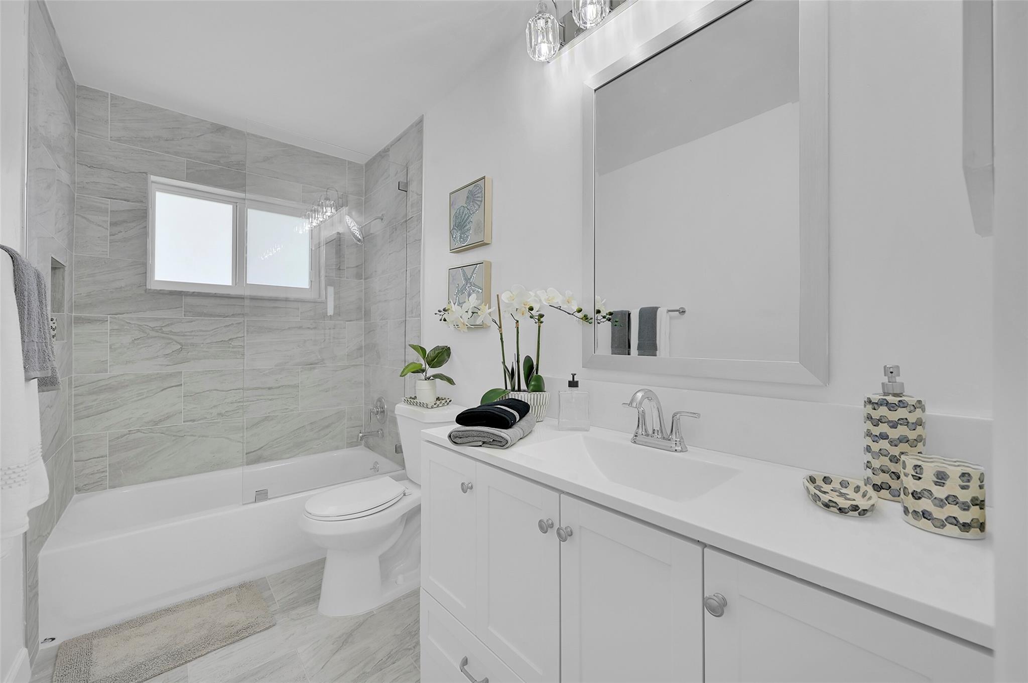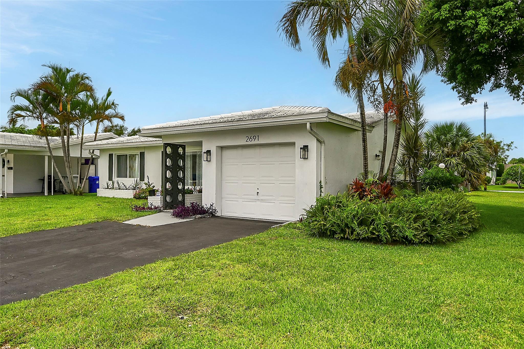 TURNKEY 2-bedroom, 2-bathroom single-family home is situated in a 55+ community and boasts a 1-car garage, along with FREE golf for residents. Embrace resort-style living with a low HOA fee covering amenities like a shuttle bus, a 9-hole 3-par golf course, exterior house painting, water, landscaping, 2 pools, shuffleboard, billiards, and 2 clubhouses, along with scheduled golf leagues. PETS ARE WELCOME! Luxury vinyl flooring throughout, while the kitchen showcases quartz countertops, SS appliances, and white cabinetry. Both bathrooms have been renovated with porcelain tile and glass enclosures. BRAND NEW IMPACT WINDOWS Located less than 3 miles from the beach, upscale restaurants, Pompano redevelopment areas, Pompano Pier & Casino, Schedule your tour today!