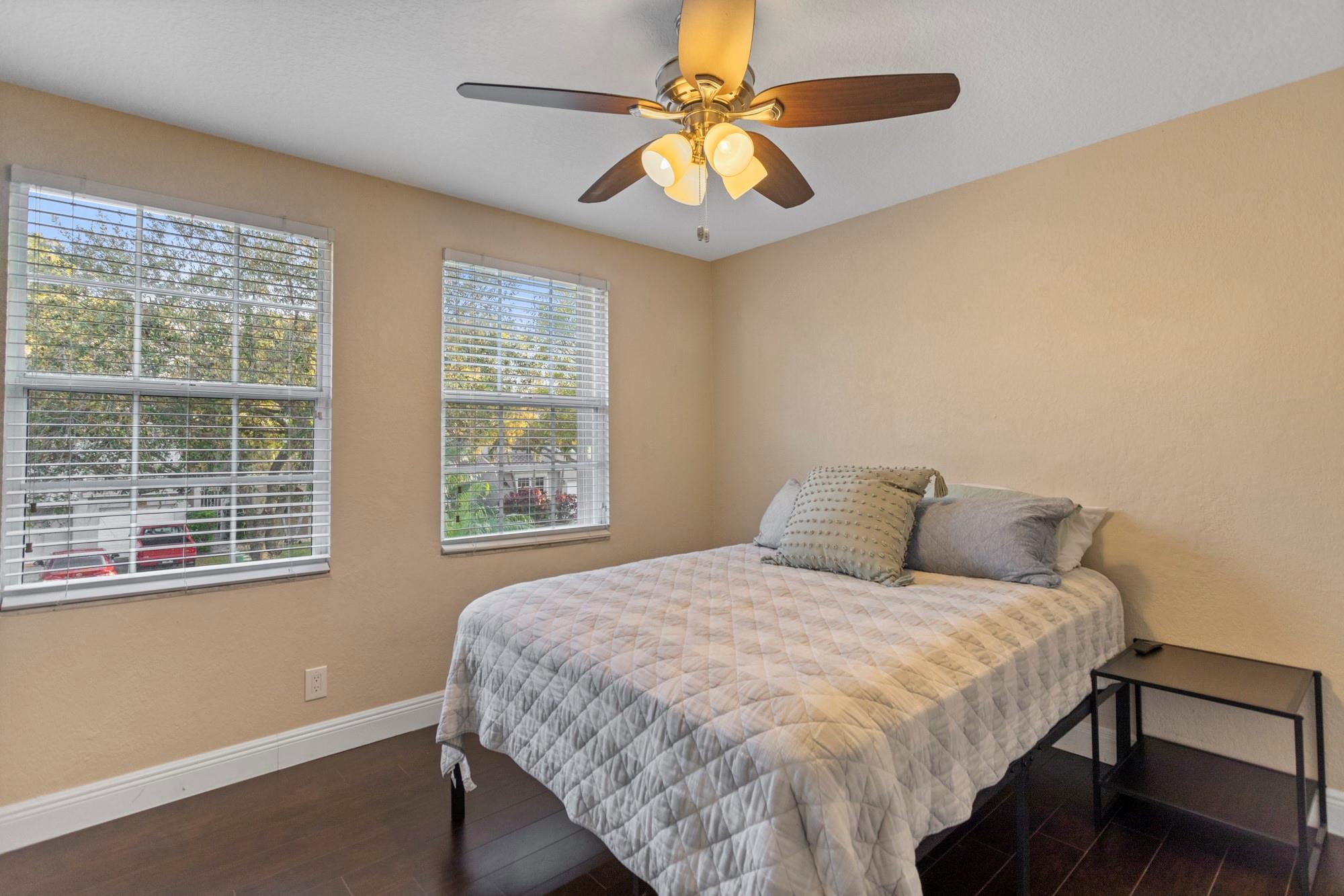 Stunning 3 bedroom 2.5 bath 2 story home located in the sought after neighborhood of the Trellises at Embassy Lakes. Open floorplan with oversized tile in the main living area and wood laminate floors throughout the bedrooms and stairs. Walk in closets in all bedrooms with master located on the first floor. Kitchen has wood cabinets and granite countertops with stainless steel appliances. 2014 tile roof, tankless water heater, Fence, Landscaping, Garage door all from 2021/22. Garage features washer/dryer and 220 electric car outlet New light fixtures and blink security system with Accordion shutters included! The newly enclosed patio and fence allow for maximum privacy. Multiple amenities including tennis, gym, pool, playgrounds and tennis court. Plus, the best A rated schools around!