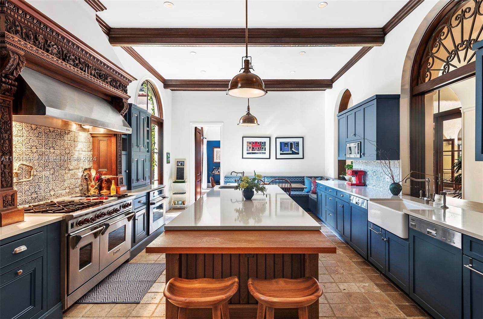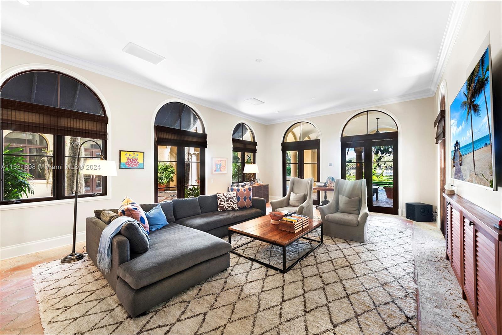 Serenely situated on the shores of Hammock Lake 2, this magnificent 6 BR, 6.5 BA 8,267 SF home looks straight out of Architectural Digest! The Cali-Mediterranean style property sits on a 43,996 SF lot in gated Hammock Lake & features stunning details throughout. Special features include a chef’s kitchen w/ hand-painted ceiling beams, antique French mantle detail around the Wolf range, & walk-in pantry. Gorgeous arches grace the central hallway & are echoed by the impact glass doors & windows. Arabesque-shaped tile flrs feature keystone trim that flows out to the patio. The home includes a formal living rm, dining rm, family rm, office, 2 BRs & BAs downstairs, w/ 4 BRs & BAs including the primary suite, on the 2nd floor. This is a home that must seen to be believed coveted Coral Gables!