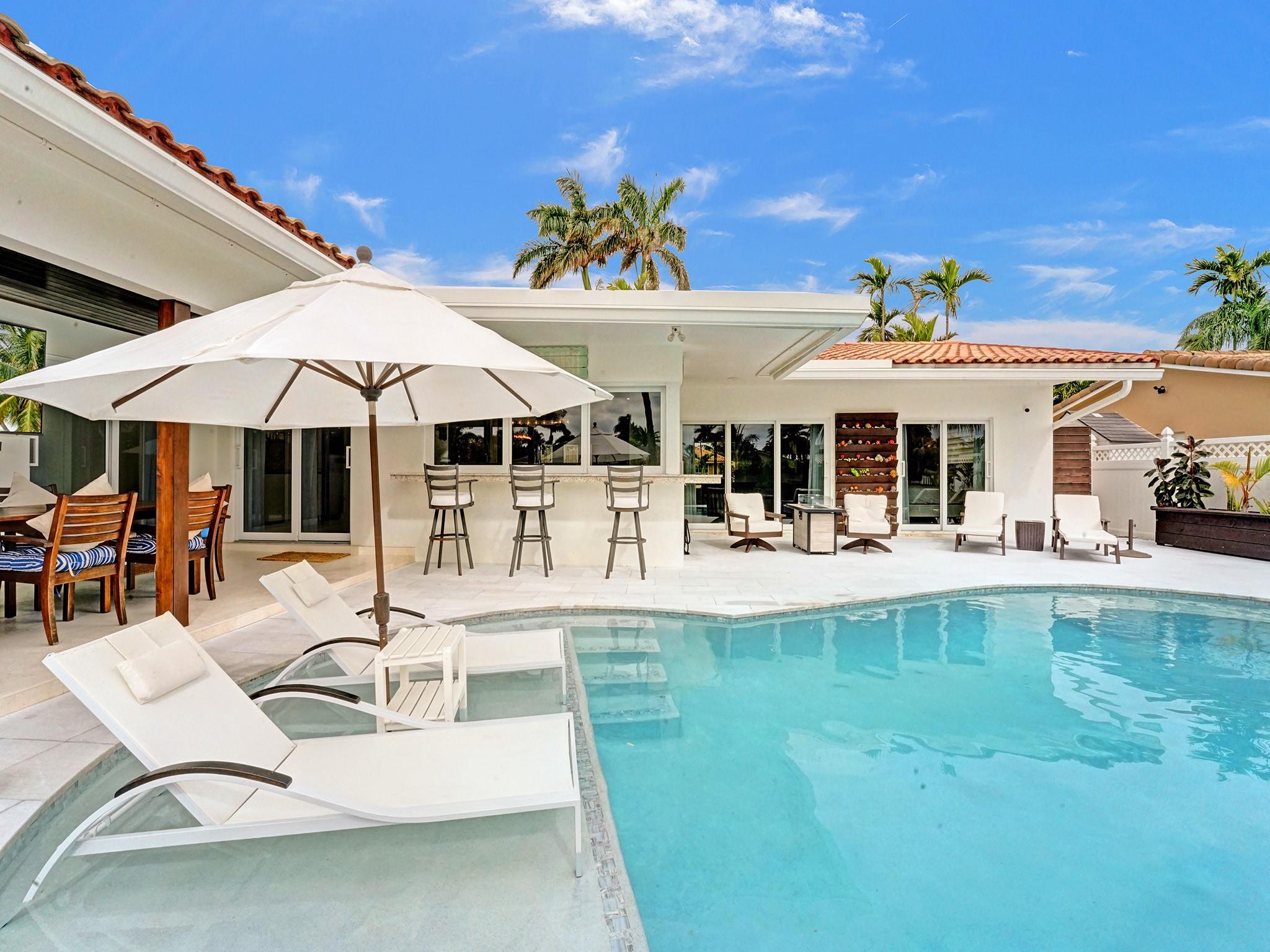 This amazing home is located in the exclusive The Landings/Lake Estates neighborhood. It’s a boater’s paradise with 80’ waterfront with a private dock and ocean access. It’s an entertainer’s dream home offering the best luxury of resort feeling with a South facing heated newly renovated saline pool and a pristine and beautiful new marble deck. The outside area is equipped with a fully functional outdoor kitchen which includes a built-in BBQ grill perfect for entertaining and alfresco dining. This newly renovated home offers 3 en-suite bedrooms. An open concept with a spectacular kitchen opens to conveniently serve as a bar for the pool area. It has Florida limestone floors throughout, including front porch and lanai. Impact sliders and windows. Just minutes away from the beach.