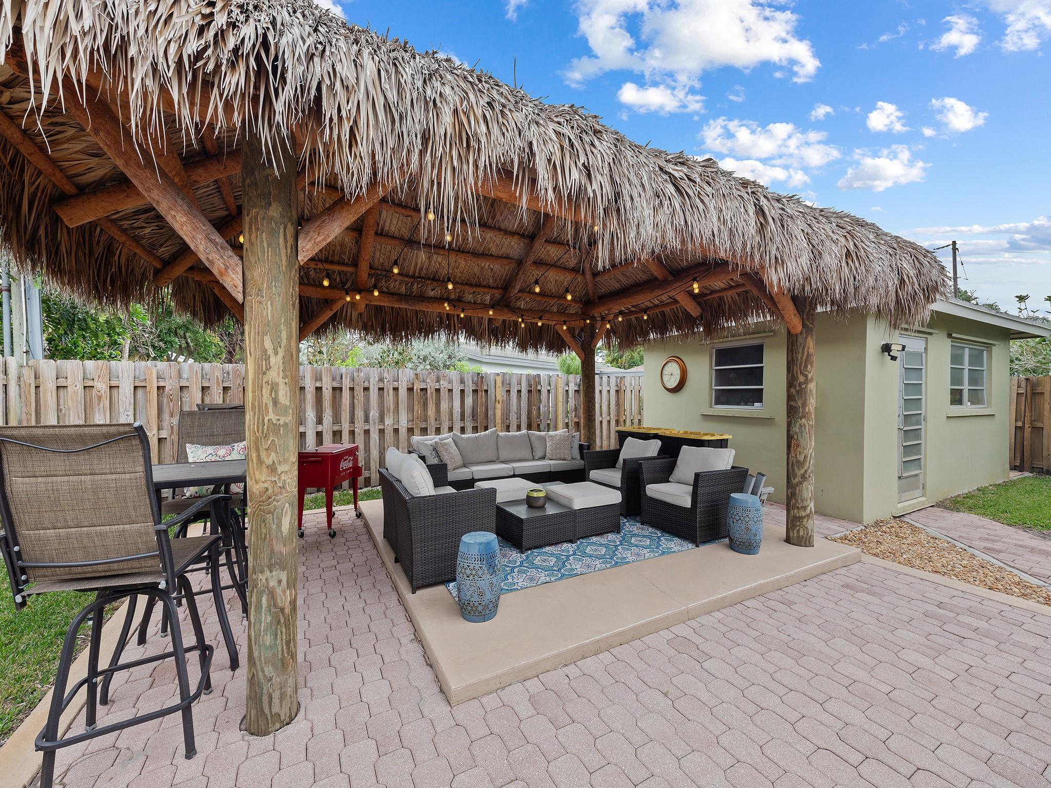 Come view this beautifully maintained 2/2 single family home located in the desirable North Andrews Gardens neighborhood! Featuring: 1-car garage (currently being used as a converted 3rd bedroom), 2020 HVAC, old chicago brick driveway, 2 family rooms, remodeled guest bath, wood burning fireplace & more! Enjoy your fully fenced yard with newly installed Tiki Hut. Permanent concrete shed allows for tons of storage! 2007 dimensional shingle roof (25-year life per Citizens). Close to many shops & restaurants, I-95, and only 3-miles to LBTS beach!