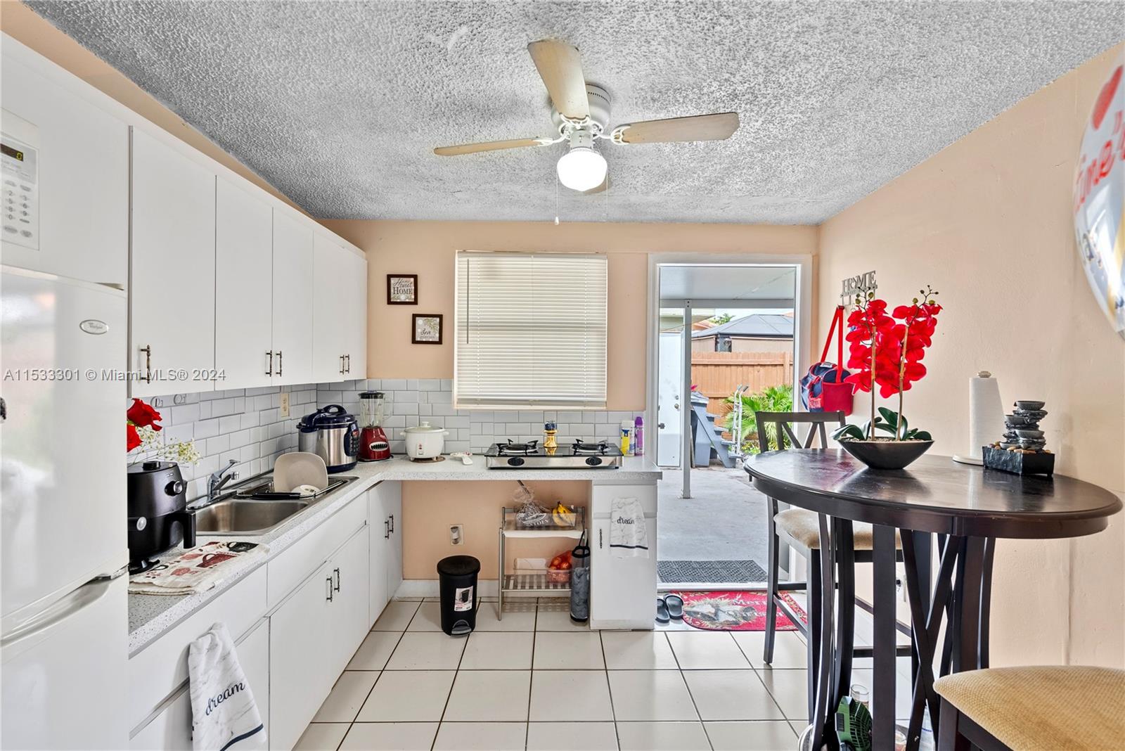 You can't forget to view this beautiful centric one-story condo after grabbing your churros and cafecito from the bakery down the street! Located just under a mile from both the 826 and US-27. This 3 bed/2bath unit is decorated with impact resistant windows and door that will help in obtaining insurance reductions. The home's layout formally separates the living room from the dining room and kitchen, and allows for the privacy between rooms if needed. The kitchen offers 3 bar seatspaces for the peninsula countertop. All secondary rooms are large enough to fit queen beds with a night stand on each side. The covered patio holds much potential for entertaining on bright summer days. LOW TAXES! Driveway can situate up to 6 cars just fine.