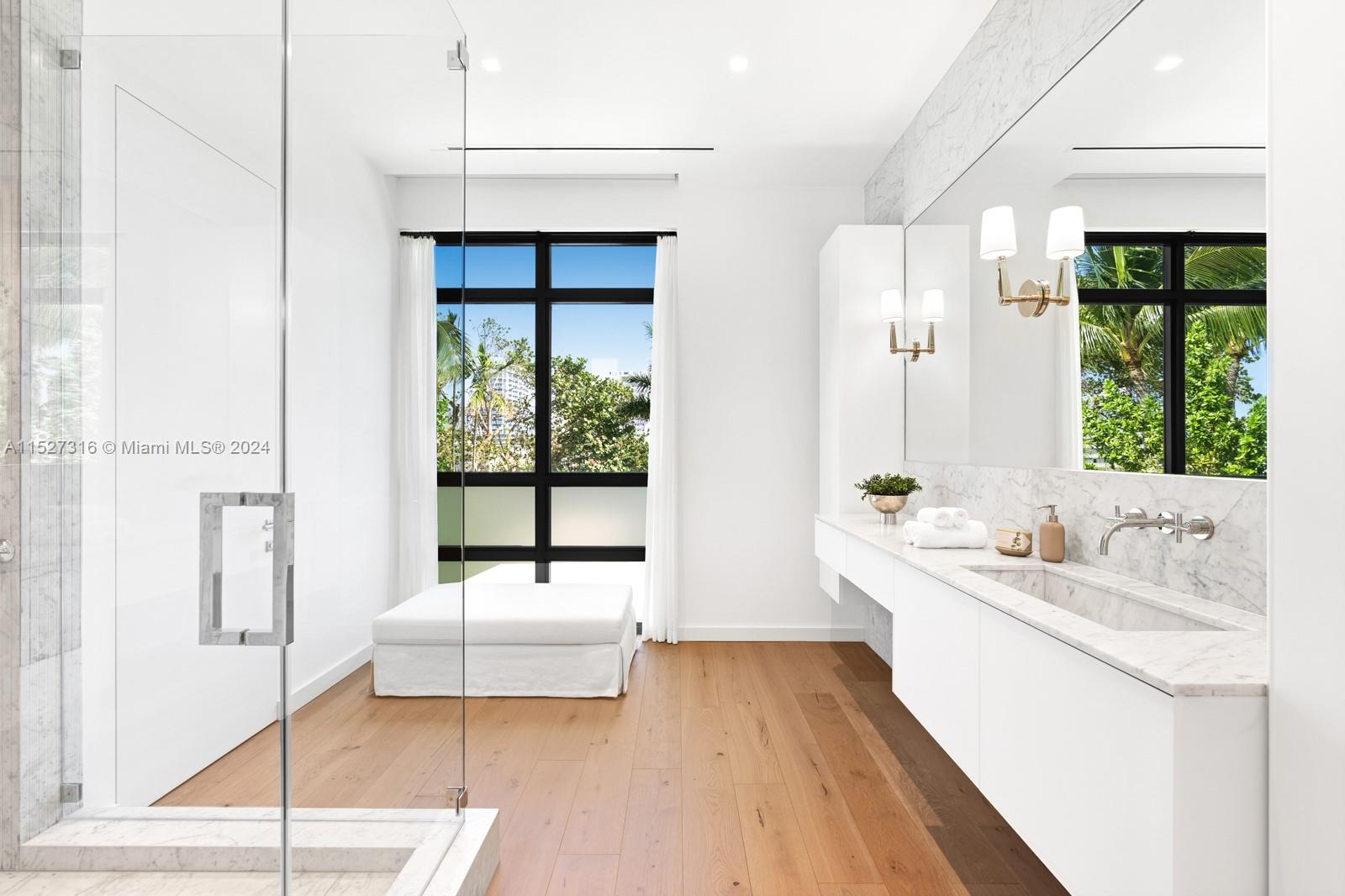 Located on guard-gated Allison Island, this Max Strang designed home was completed at the beginning of 2022. Sitting on a 16,200 SF lot, this 7,000 SF home boasts six bedrooms and nine bathrooms. The oversized primary suite, facing the Indian Creek waterway, has two separate closets and bathrooms. Custom kitchen cabinetry by Boffi, appliances by Wolf and Sub-Zero, this Smart home is powered by Savant. Shellstone and white oak flooring throughout are complemented by built-in, custom cabinetry. Interior design by Artefacto. Enjoy true outdoor living in your large backyard oasis with a full summer kitchen and heated salt water swimming pool. Home also has a whole-house generator. 75 FT on the water offers the ability to dock your yacht at home.