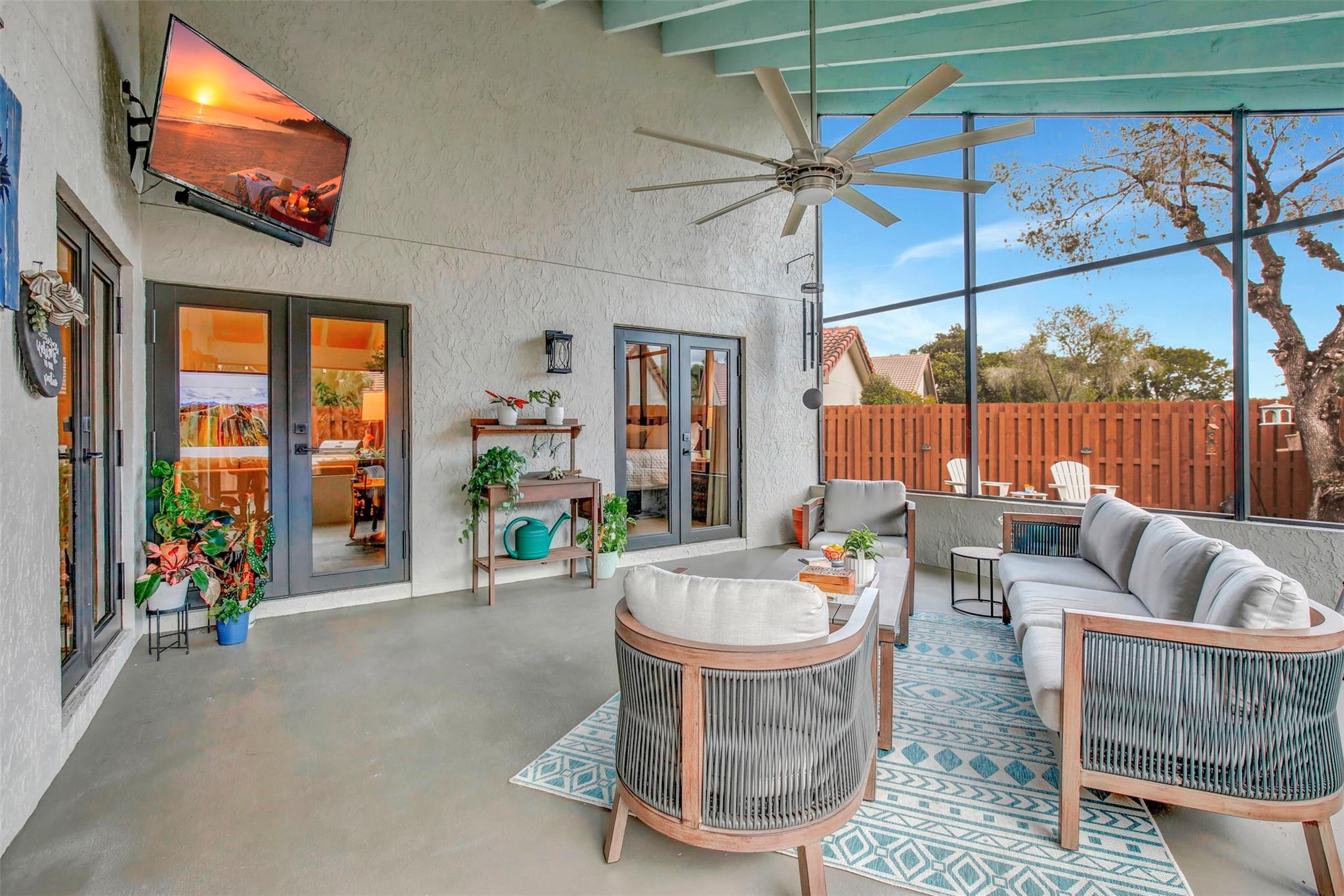 Situated in historic Weston, this newly renovated 2BD/2BA/1CG single story cottage offers an irresistible blend of cozy charm & Smart hi-tech, epitomizing the ultimate in modern living! BRAND NEW 2021-2024 RENOVATIONS include all IMPACT GLASS, new bathrooms, state-of-art kitchen w/quartz waterfall island w/WiFi compatible convection/air-fryer oven & refrig, luxury vinyl floors, smooth ceilings/walls, LED lighting, smart dimmers, updated electrical, custom closets, creative "cloffices", new paver driveway, new landscape, new paint, impact garage door, WiFi Keyless Entry, Ring doorbell. Enjoy indoor/outdoor living in the newly screened 342 sq ft Florida Room patio w/TV w/sound bar & remote fan. Newly fenced private yard w/cafe lights leads to greenbelt area. Near comm pool, park, A+ schools.