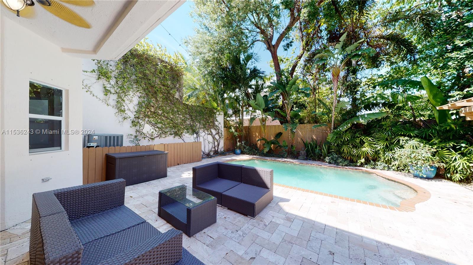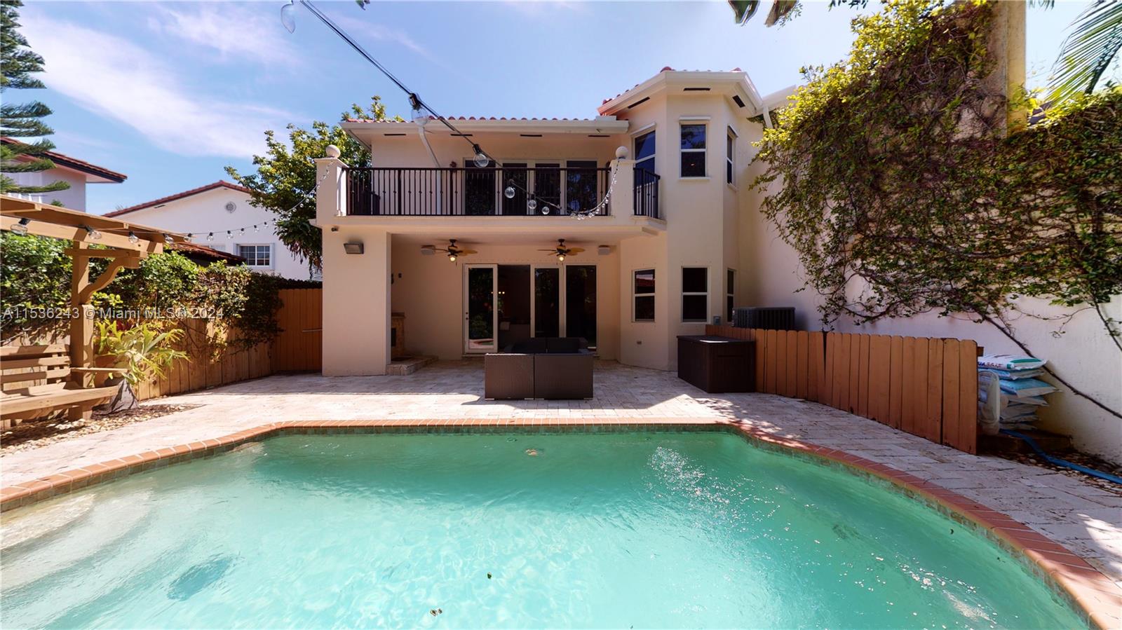 Spacious town home located on a quiet tree lined street. This town home was built on an oversized lot and feels more like a single family home. Lots of natural light in this East/West exposure town home. Travertine floors on the first level. Eat in kitchen with breakfast nook. Large living and dining rooms. Separate family room overlooking the large private pool and covered patio. 20 feet tall privacy wall between the two units. Deep and wide driveway will allow 3-4 cars to be parked inside the gate. One car garage with window and EV charger. Second floor has the spacious primary bedroom with spa style bathroom that has separate shower and tub and double vanity. Two more spacious bedrooms. Two balconies. Unit was recently painted on the outside. No maintenance fee!