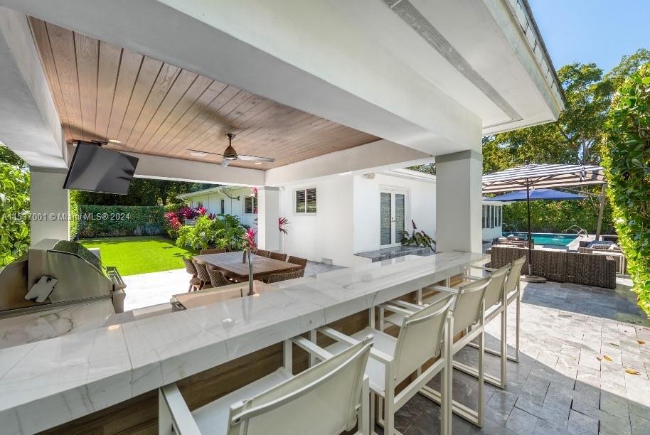 A true gem offered in the sought after Platinum Triangle neighborhood of south Coral Gables. This warm & inviting 4 bedroom, 2 1/2 bath residence sits on a spacious (11,008 SF) corner lot in a quaint tree lined street. Features include an open floor plan w/a multitude of windows that allow for an abundance of natural light throughout, a private bedroom corridor incorporating all four bedrooms, a family room overlooking the pool & backyard, state of the art summer kitchen ideal for entertaining, walled in yard w/artificial grass perfect for kids to enjoy & spacious driveway w/EV charging station. Ideally located w/in close proximity to a variety of excellent schools, Matheson Hammock, Coconut Grove, South Miami, Merrick Park & Miracle Mile.