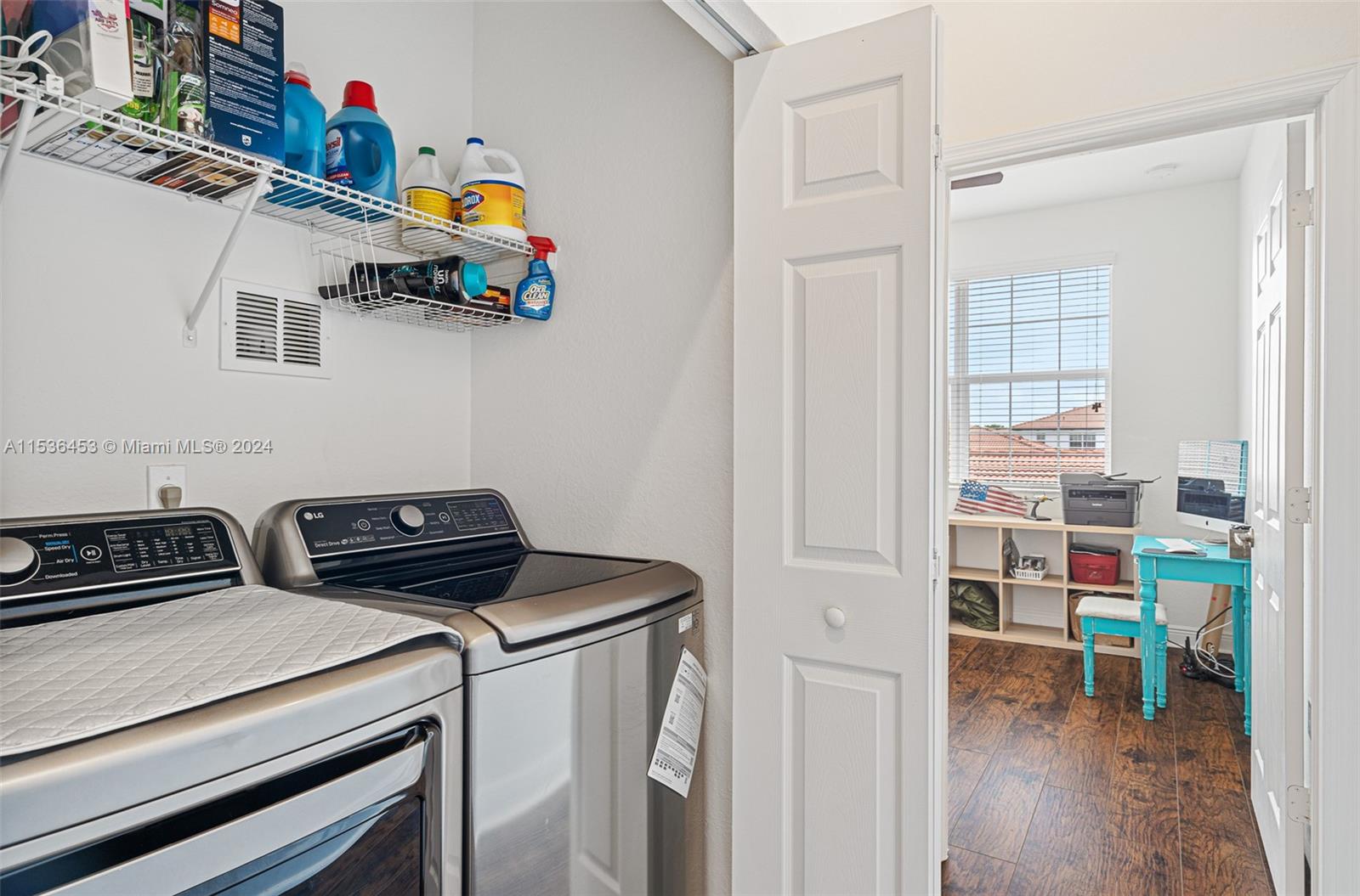 Beautiful Townhouse in Montclair at Miramar. 3 Bedrooms with Ground-floor bedroom with En Suite bathroom. The great room and kitchen are on 2nd floor and 2 more bedrooms on third floor, 2 car garage with impact Windows, Fire Sprinkler System, Smart Washer and Dryer from 2020. Kwikset Smart Code Lock in front Door and Back Door.