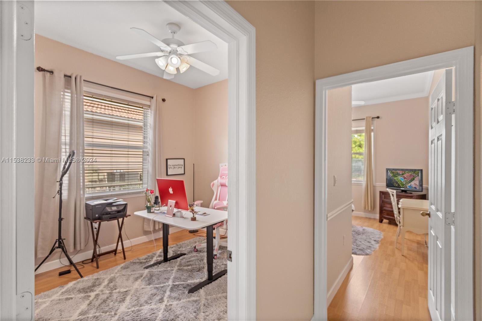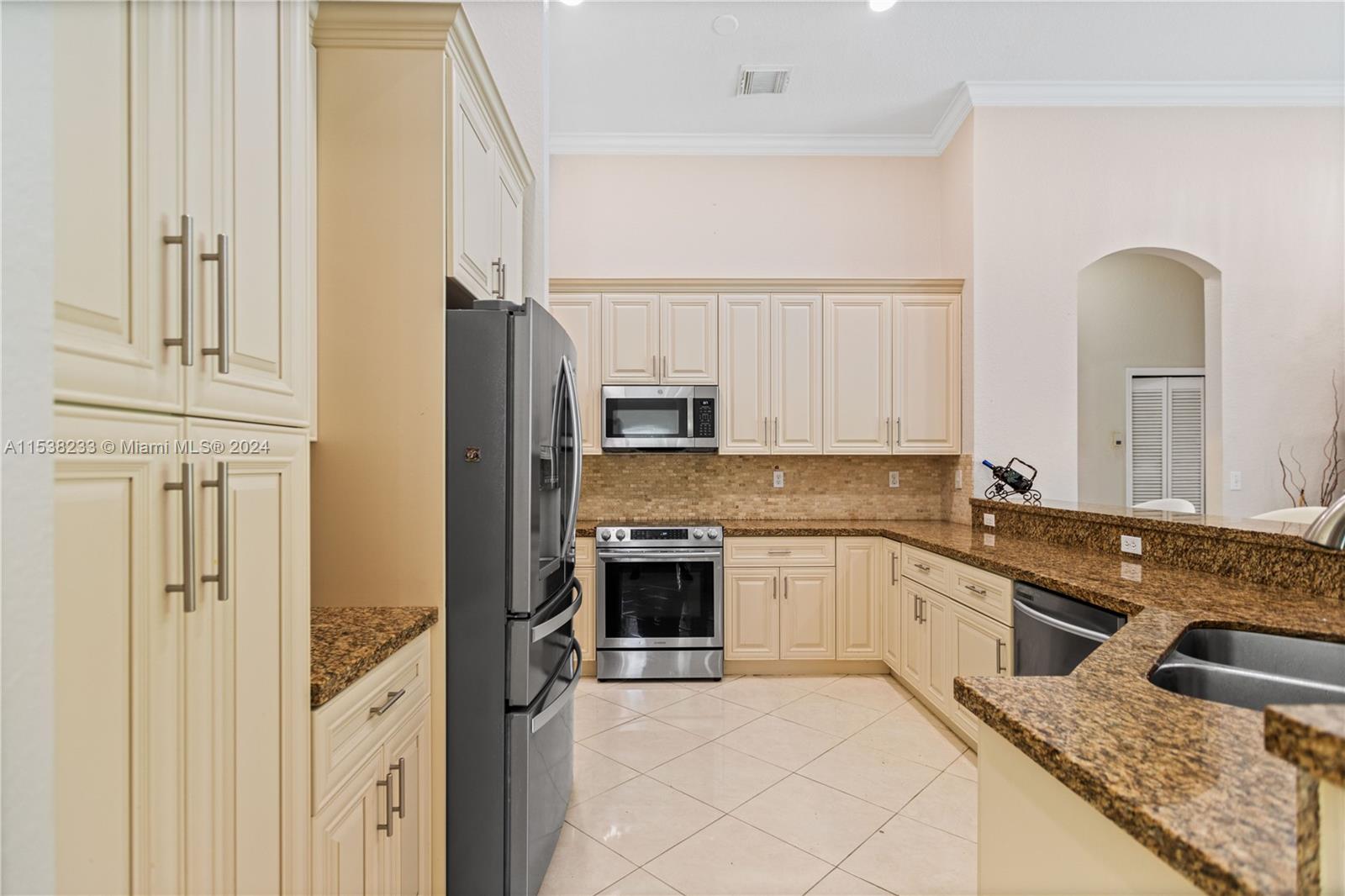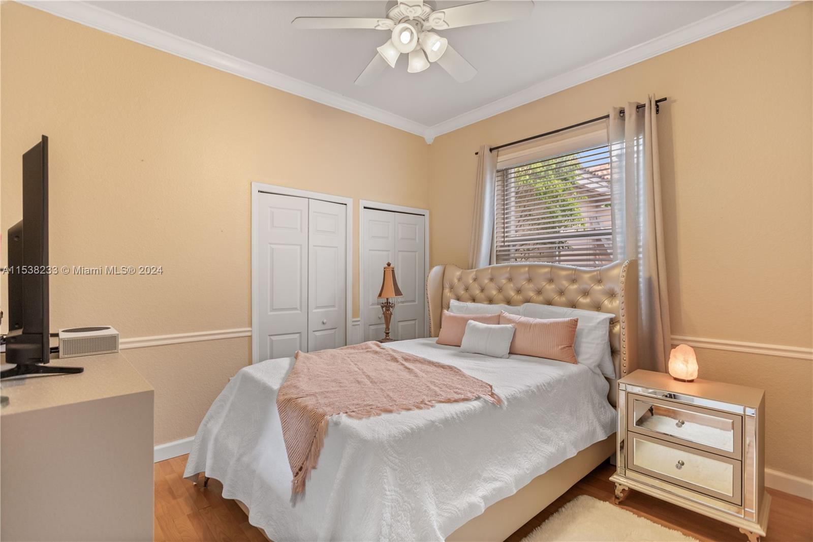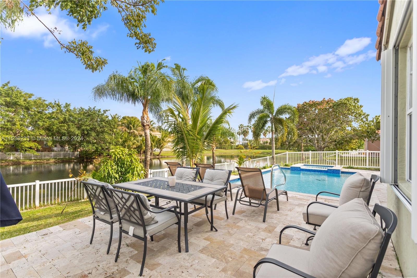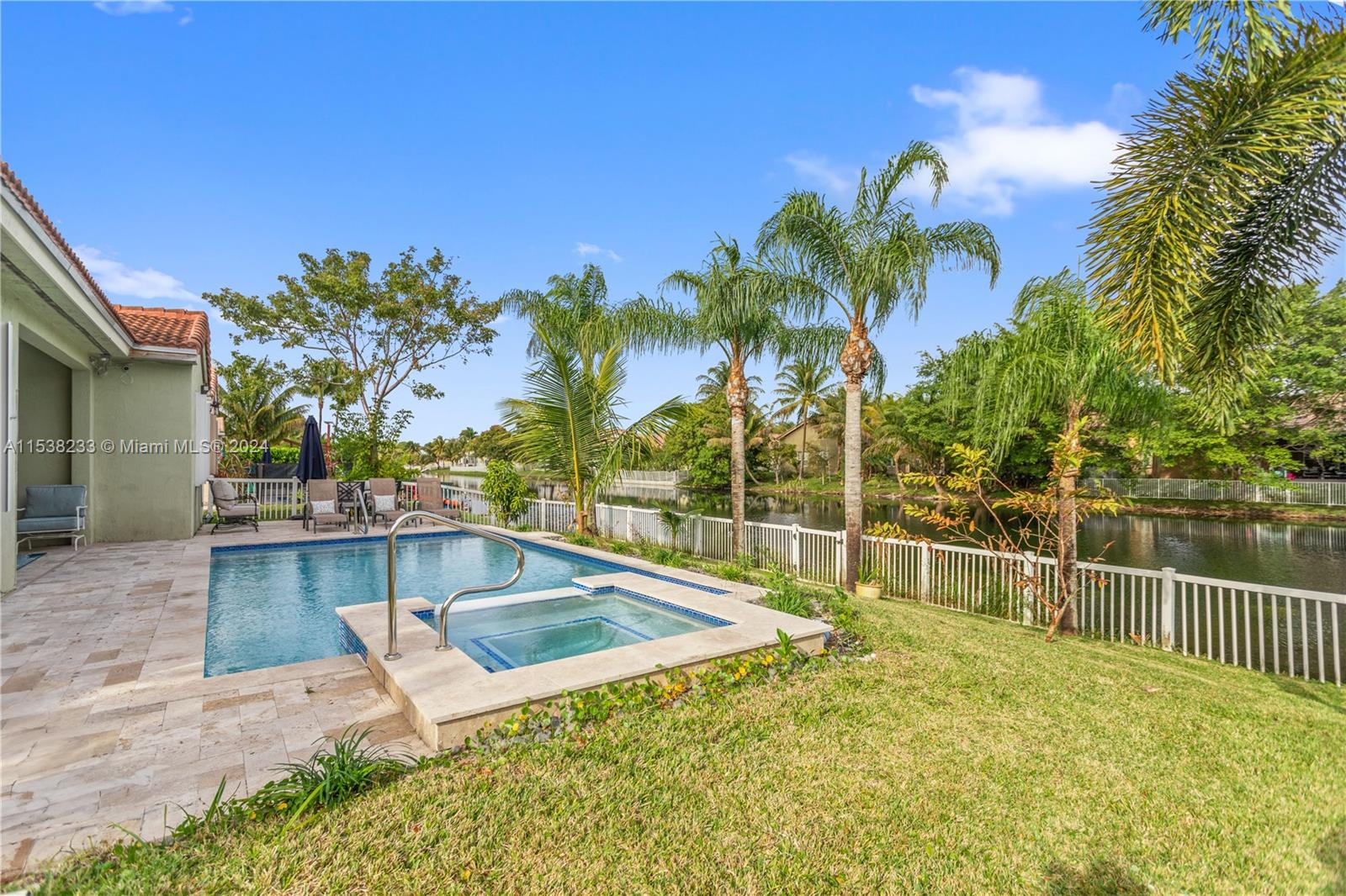 Just bring a toothbrush-move right into this 1 story pool home. Open & spacious plan. Renovated gourmet kitchen w/newer upgraded stainless appliances-a formal living & dining rm & sep fam room. Large owners suite w/wood floors, double closets w/built ins & beautifully & recently upgraded en-suite bath complete w/double sinks, shower & soaking tub. Other home features include newer roof (2019), zebra shades & electronic shade in family rm, newer plumbing, fans, light fixtures & complete hurricane protection. Enjoy relaxing outside & tranquil lake view from your oversized patio & fully fenced yard. Pool/hot tub complete w/ child fence, lots of fruit trees (avocado, coconut, guava and mango). Gated community, walk to elem school in community, close to shopping and major roads (I75 & turnpike)