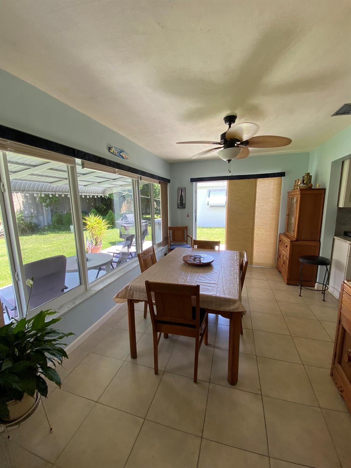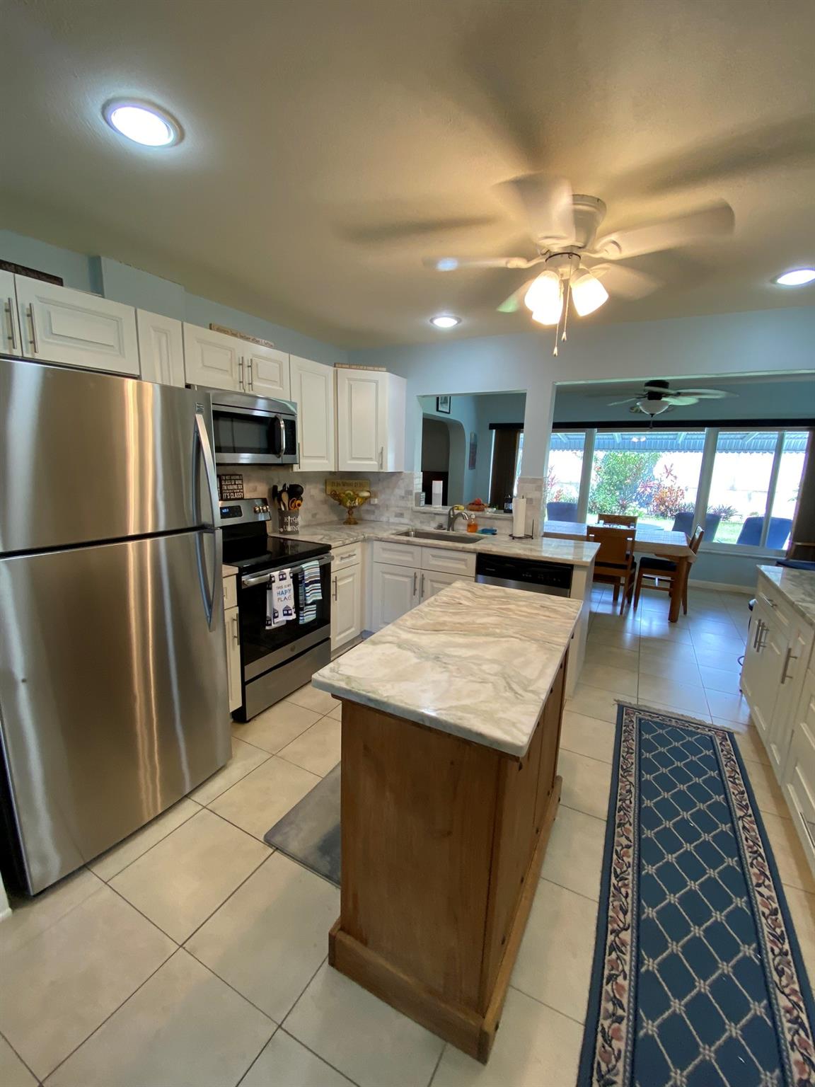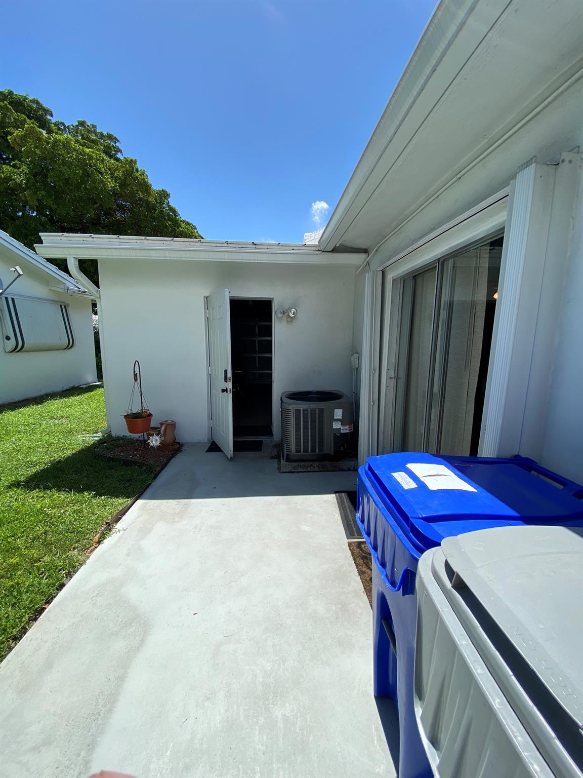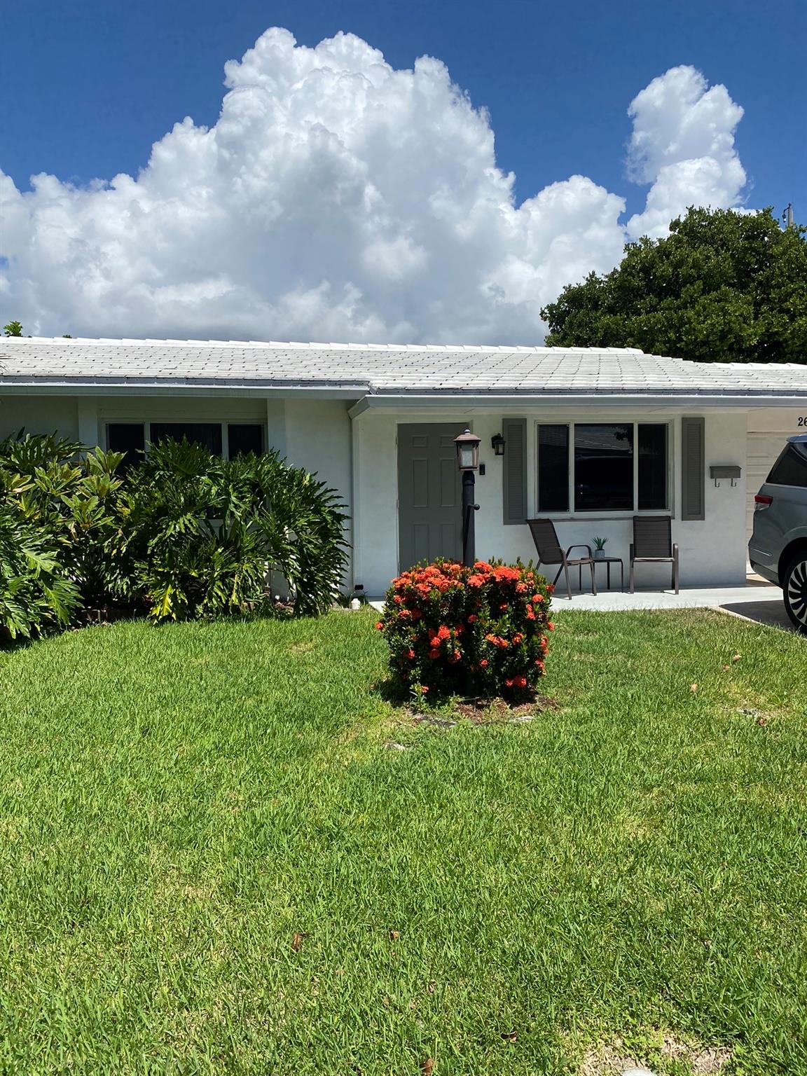 Come live in paradise. A must see updated two bedroom two bath with additional den/office which could be converted into 3rd bedroom. Separate dining room. One car garage. Located on a Cul De Sac in a very private setting, one of few in this 55+ community. Located in Leisureville with free Golf, two pools and clubhouses and many amenities. Covered rear patio with private backyard East of I-95. Granite countertops with soft close cabinets. Stainless steel appliances. Hurricane windows and hurricane garage door. Brand new A/C and hot water tank in 2023. Both bathroom commodes are equipped with bidets. HOA includes water, outside house & roof painting, water, sprinklers, free golf, scheduled courtesy bus, and lawn mowing.