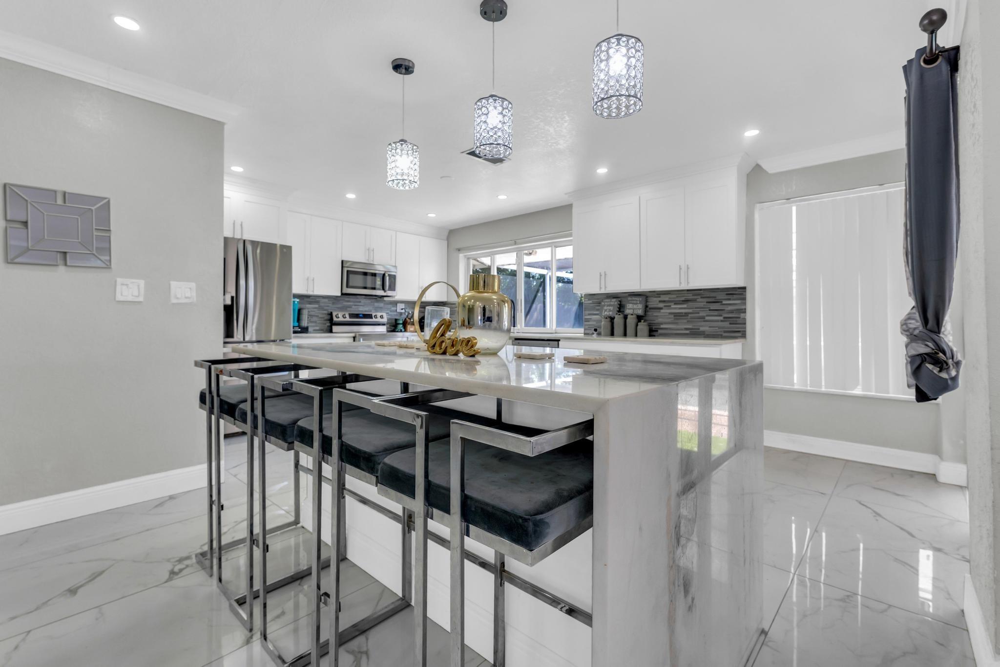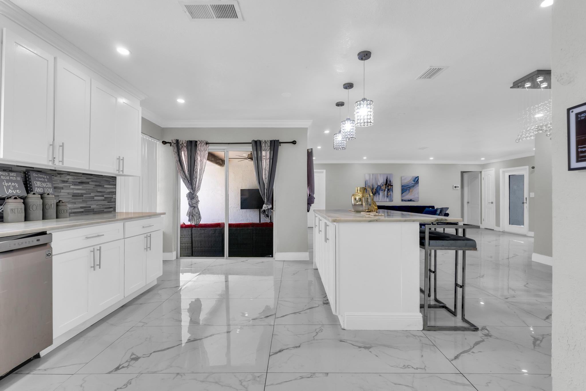 This exceptional opportunity to acquire a beautifully completely remodeled property in the heart of Miramar a waits you. This property features an open concept with crown modeling and new tile floors throughout the house, with newly remodeled bathrooms and a fully remodeled kitchen with an island and stainless-steel appliances. Enjoy wonderful days and nights in the backyard and create long lasting memories in the pool, while enjoying a private fence backyard, which is a perfect kid friendly playing environment or can be used for entertaining while enjoying your private oasis.