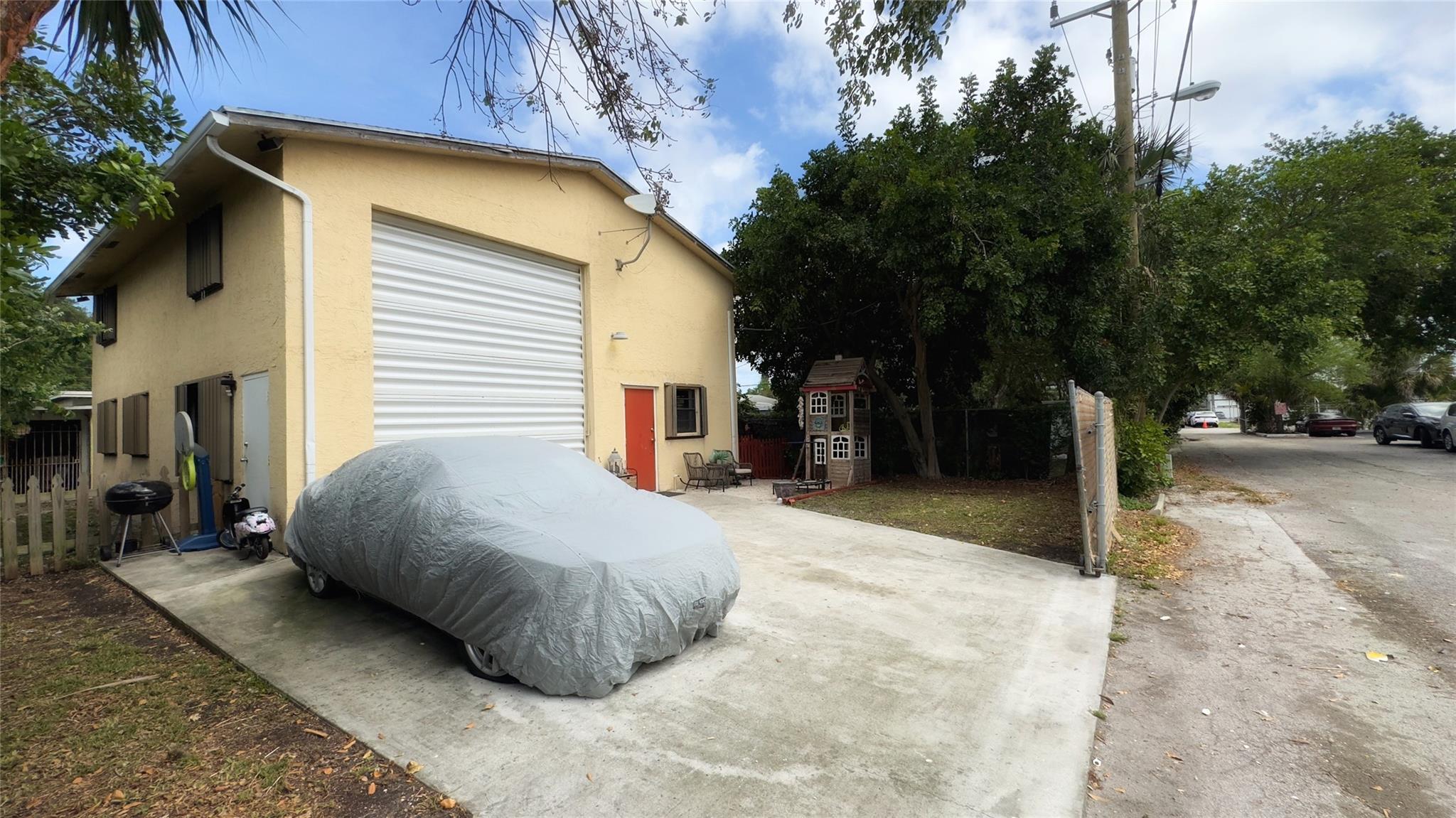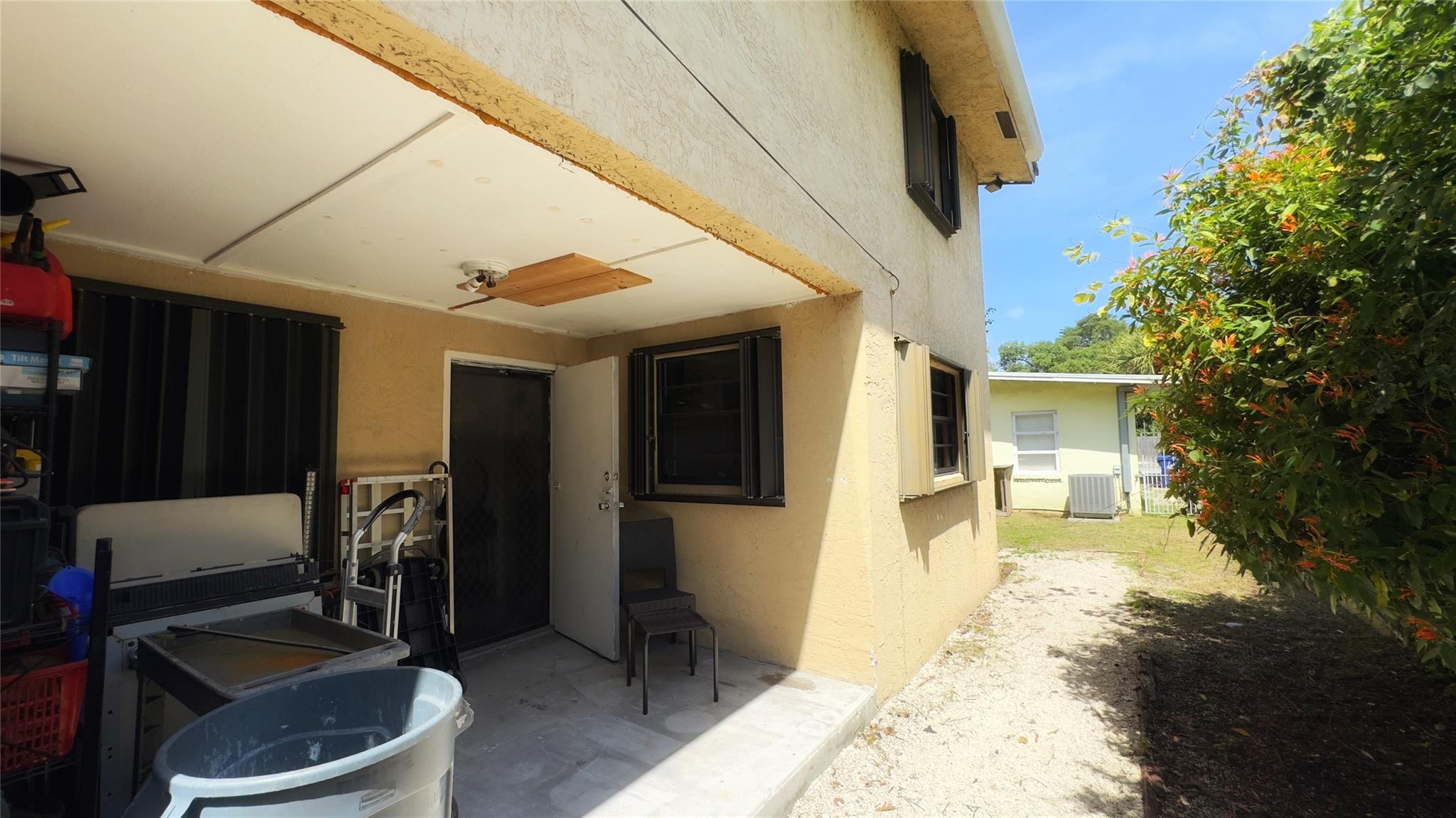 INVESTORS WANTED! This property is being sold AS-IS, offering a fantastic opportunity for both homeowners and investors alike. The front house features a 2-bedroom, 1-bathroom layout that can easily be converted into a 3 bedroom, 1-bathroom by transforming the Florida room. Terrazzo floors, central AC and a roof updated just 6 years ago. What sets this property apart is its dual entryways, providing convenient access from both the front and back. The back unit is designed to accommodate an RV, boat, car, motorcycle(s), or can be utilized as a versatile space for a workout area, office, or workshop. This unit boasts a loft-style living space with 2 bedrooms and 2 bathrooms, perfect for additional rental income or personal use. New roof will be completed prior to closing for the back