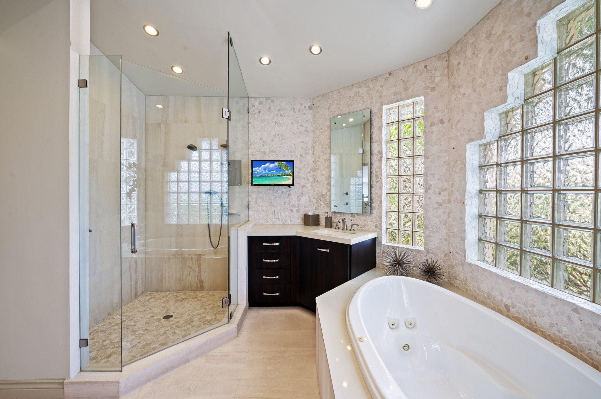 Turn key magnificent, 5/4/1 bright, open, split floor plan in the exclusive Weston Hills CC/ Montclaire. This fully renovated home with updated kitchen, stainless steel appliances, Marble and wood floors throughout. Perfect split plan with 4 bedrooms and an oversized laundry room/mud room downstairs, and a full upstairs suite with a bedroom, a full bathroom and a den/office. NEW ROOF (2022), and fully hurricane protected mixture of impact windows and accordion shutters. New ACs, main floor primary suite with his and her walk in custom closets, built in office, and renovated primary bathroom with jacuzzi tub. Serene open spacious backyard with build in BBQ. 3 car garage. A rated schools.