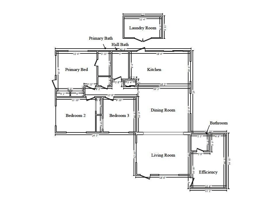 Opportunity knocks with this amazing home just a few minutes to the beautiful beaches. Great home for owner occupied, short term rental or otherwise. The home has an efficiency with a mini kitchen and full bathroom to the front and the main home has 3 bedrooms and 2 baths. Spacious yard and ample parking make this a great find. As you enter the main home you will notice how spacious it feels with neutral tone walls and flooring throughout. The kitchen is updated featuring real wood cabinets and granite countertops. Stainless steel appliances. There is a detached laundry room to the rear of the home. The bathrooms are also finished in neutral tile and vanities. New breakers box in 2014, HVAC 2016, Roof 2016/2023, Plumbing to PVC 2017, Range 2022 Refrigerator 2023.