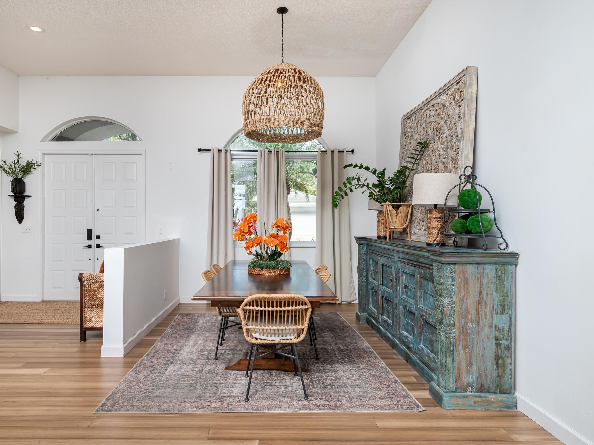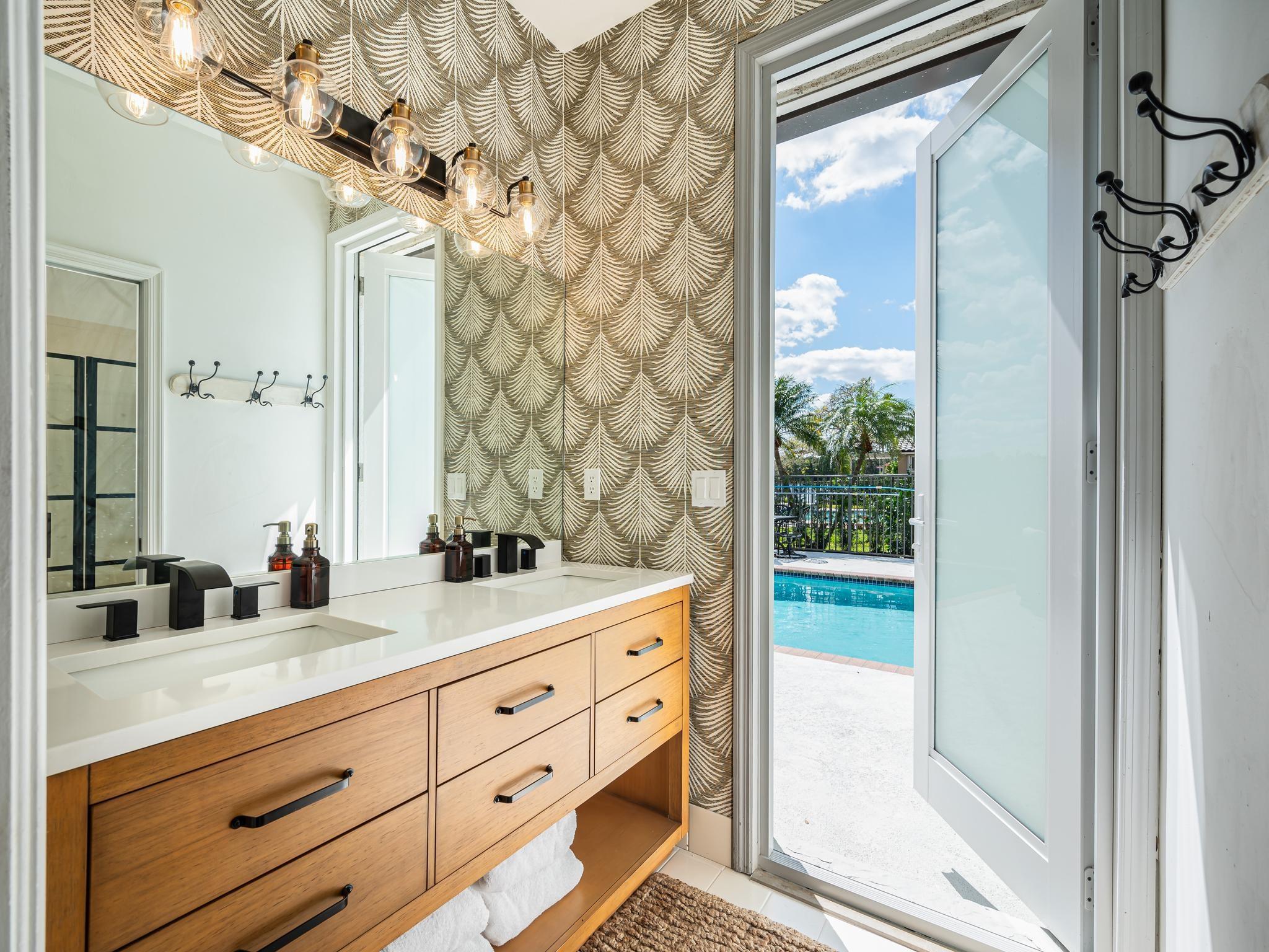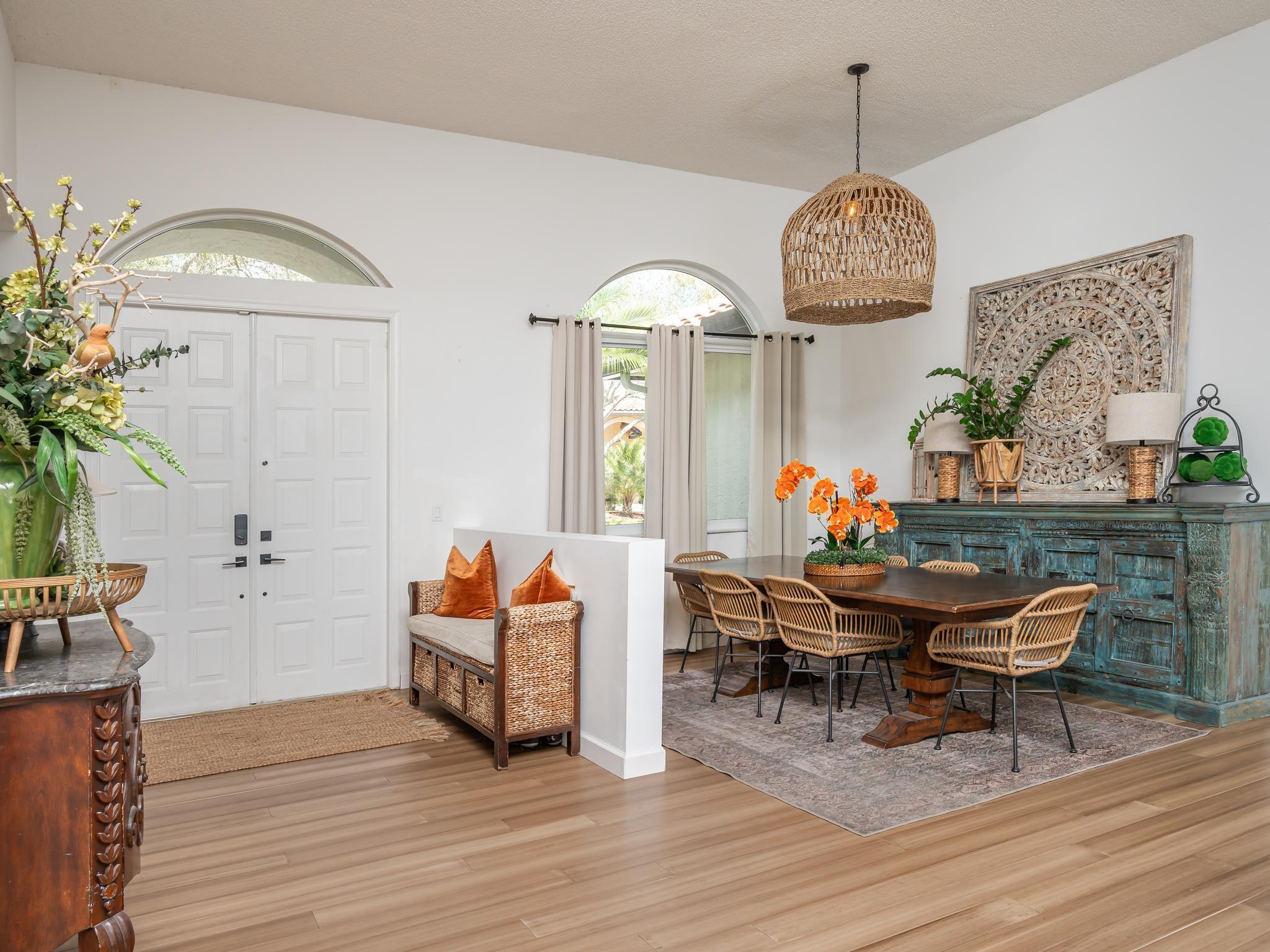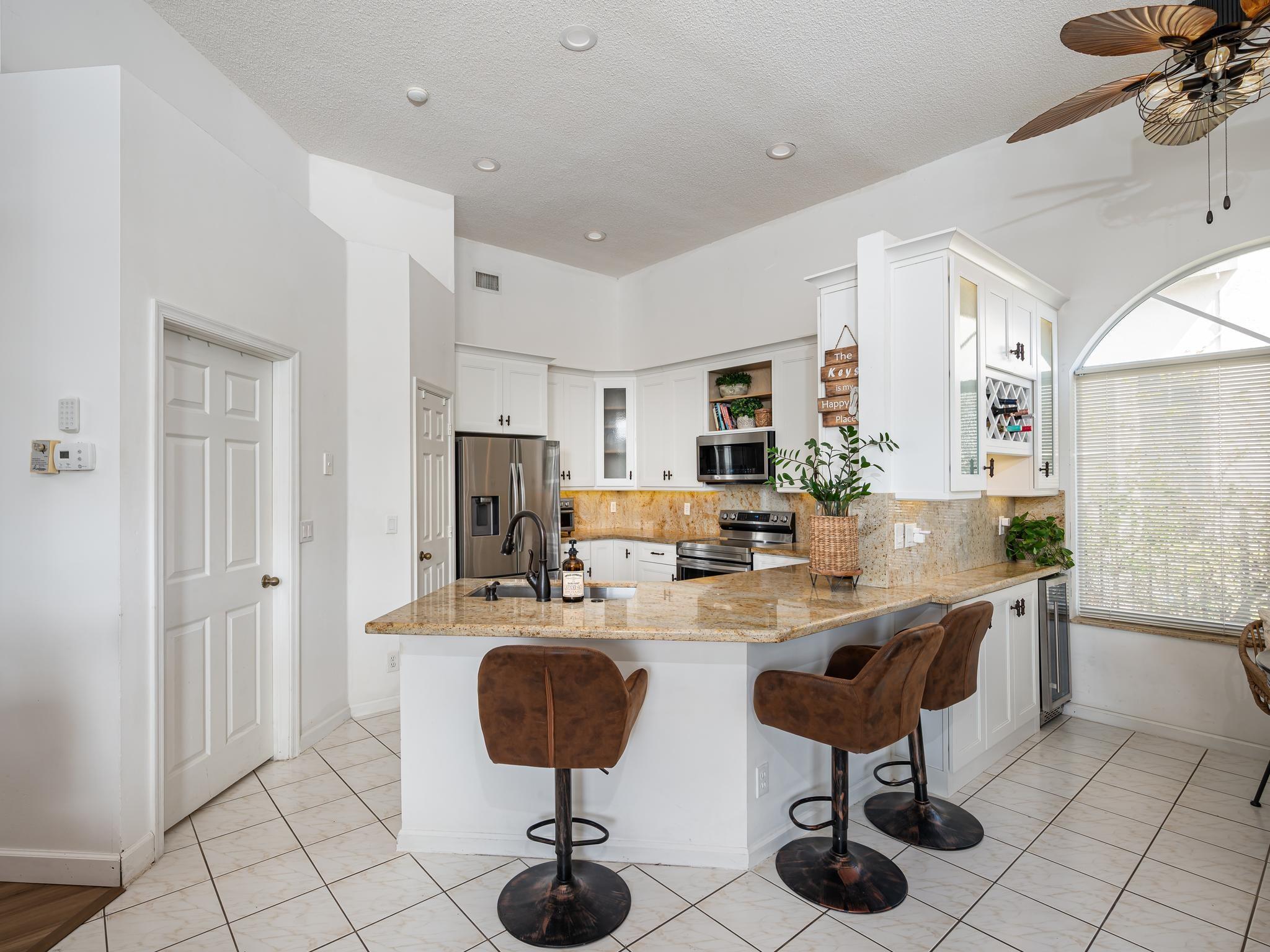 Tropical Paradise with a calming breeze from the endless water views of this 5 bedroom/3 bath pool home in Guard Gated community of the Islands. Brand New roof 2022 and Gutters!! 2022 Kitchen remodeled with all new appliances including wet bar wine fridge. Oversized Pantry!!! Hurricane Impact glass in several of the windows. 2022 Pool Motor. Fully fenced lot with doggy run. High ceilings. Cabana Bath remodeled out to the pool. Split floor plan where Master and 5th room/den(no closet) are one side of the home and 3 bedrooms on the other side. Community boasts covered playground, basketball court, and sand volleyball court. Walking distance to A rated middle and a bike ride away from A rated elementary. Cypress Bay HS zone as well. Sunrise and Sunsets are epic from this home.