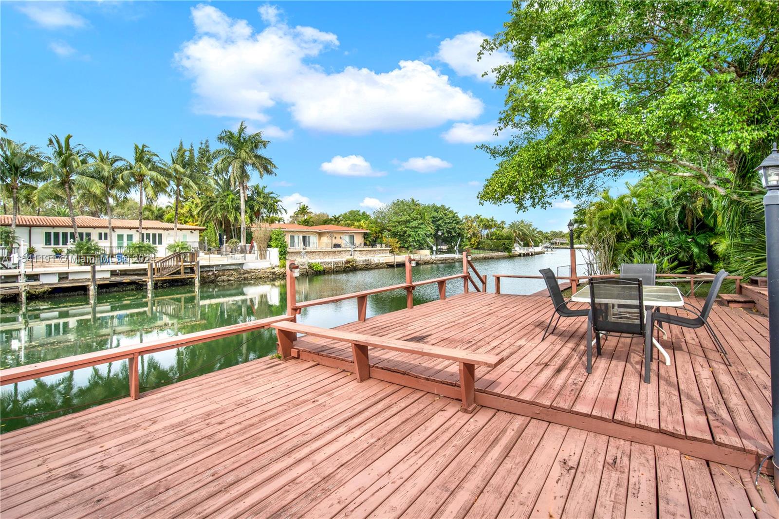 Nestled in the heart of Coral Gables, the City Beautiful, this 4/4 home is a true gem, offering waterfront living with a beautiful pool. Perfectly positioned near US1, it provides convenient access to the University of Miami, top-rated schools, shopping, downtown, the beaches, and Miami Int. Airport. This house has a great split plan layout with the primary bedroom on one side and three additional bedrooms on the other. The kitchen is a nice size, and the house has an open floorplan framing the pool, conducive for entertaining. The seawall was recently reenforced and there is a large private deck on the waterway; creating a peaceful and serene place to watch the sunset and the perfect place to dock your boat. Bigger than tax record: as per appraiser 2,446 Living Area square footage.