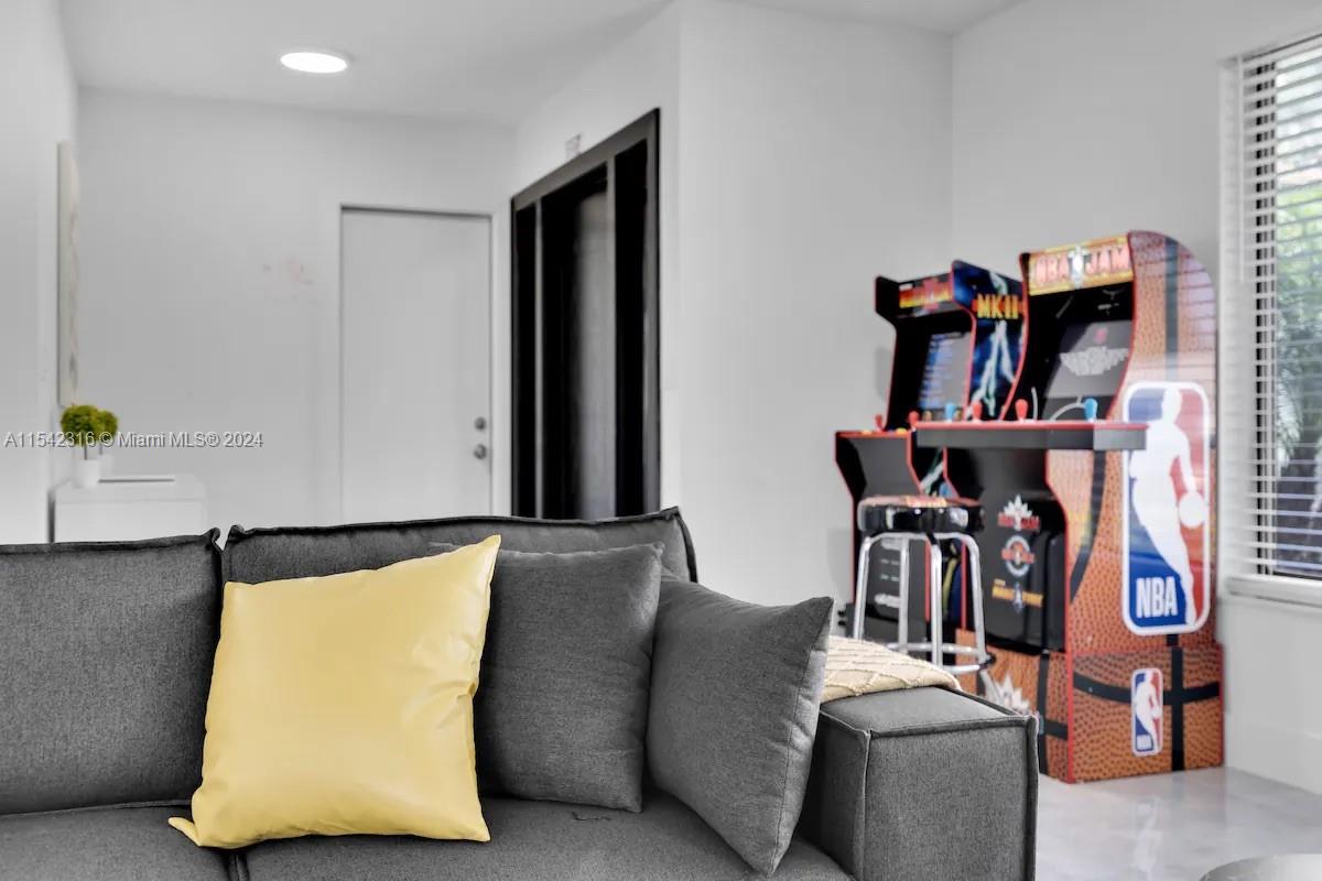 Welcome to a stylish haven with four bedrooms, each featuring plush bedding and Smart TVs. The primary bedroom has a king-sized bed, private ensuite, and an office desk, while the second bedroom offers a queen-sized bed with a Smart TV. Bedrooms three and four have two full-sized beds and a bunk bed with twin-sized beds, respectively. The two full bathrooms offer comfort with high end finishes. The well-appointed brand new kitchen has high end stainless appliances, ample counter space, and all culinary essentials. The living room, styled with a modern sofa, Smart TV with Xfinity Stream, and two arcade games, sets the scene for leisure and entertainment. Step outside into vibrant Ft. Lauderdale living with a private pool, sun-beds, and an outdoor area with a gas grill. Call Listing agent.