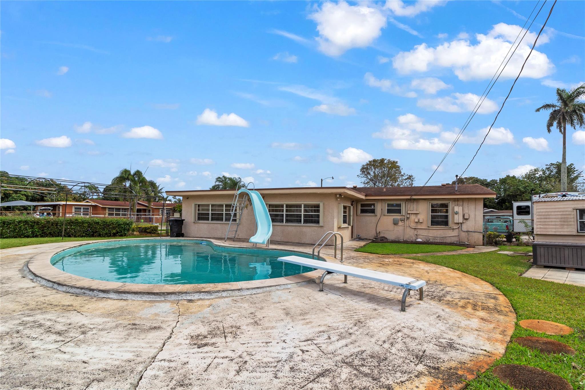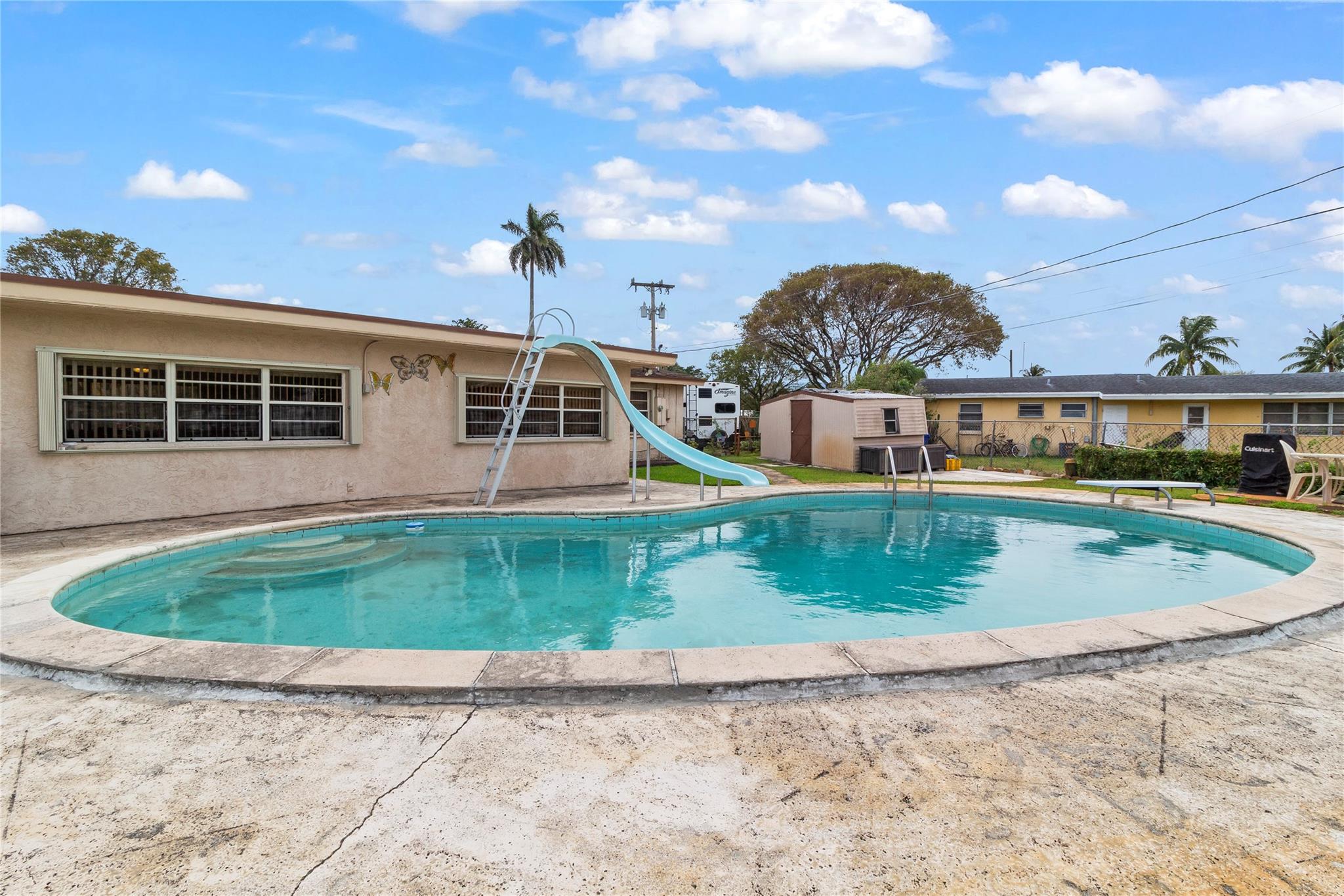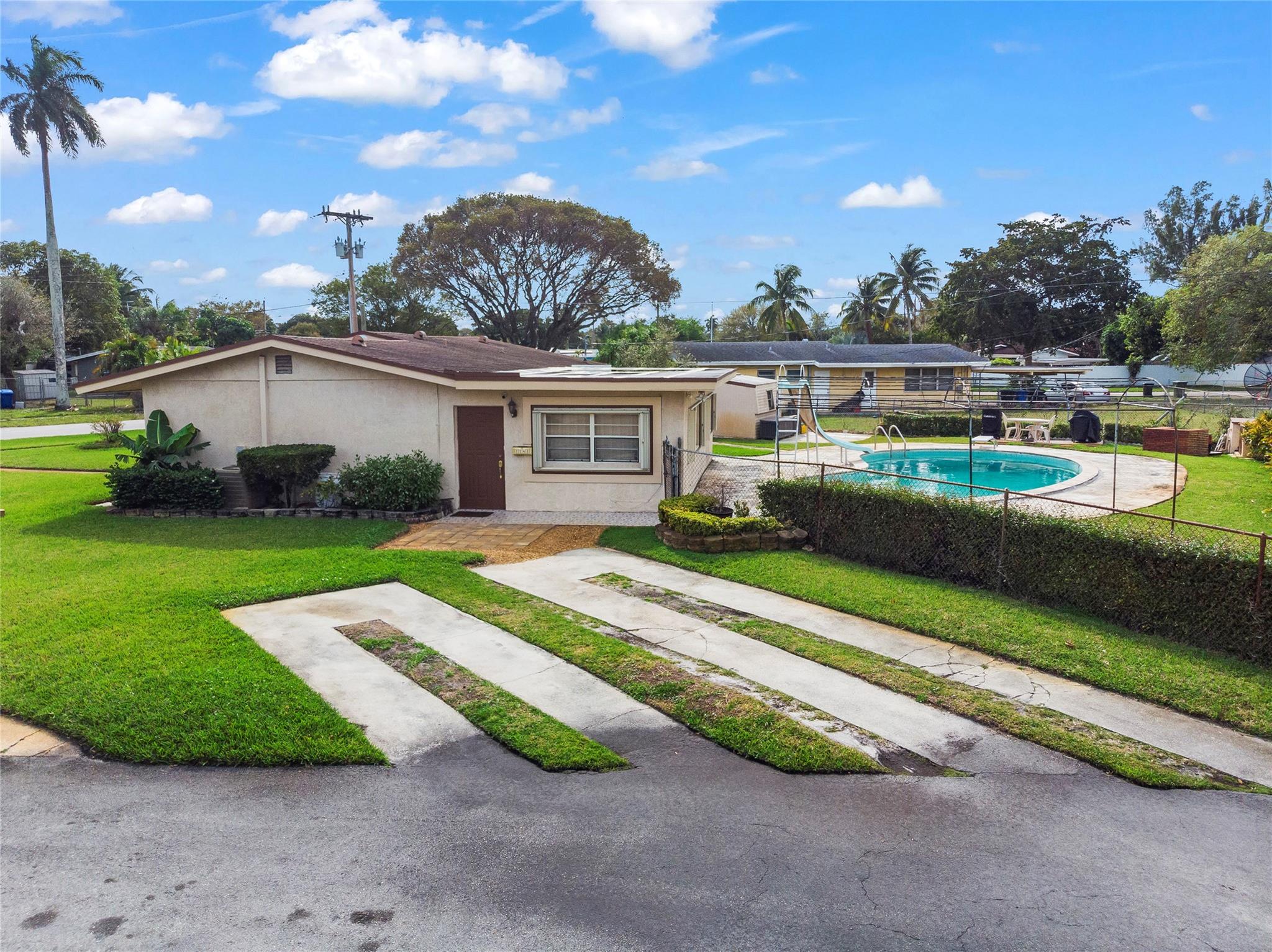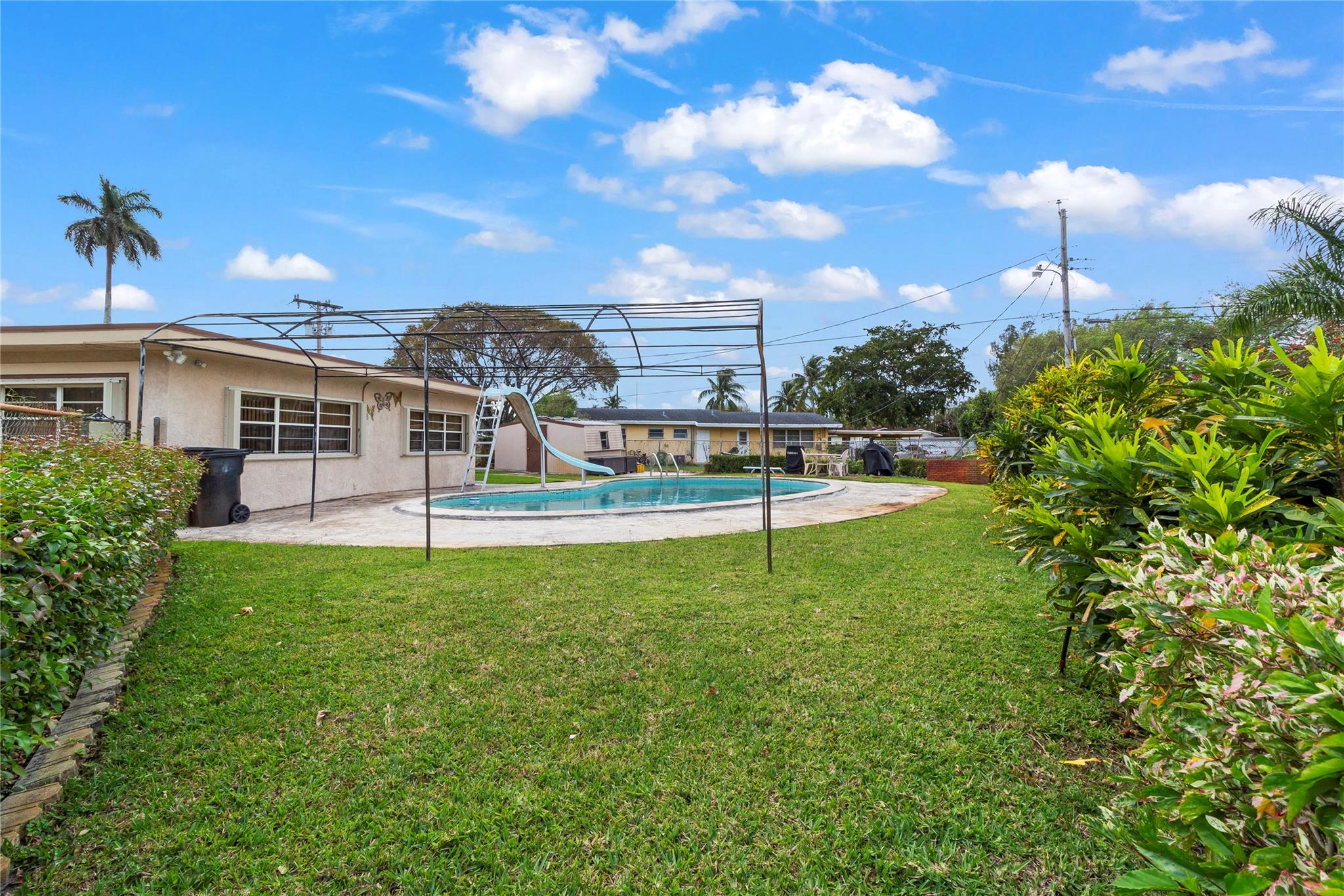 Beautiful well maintained property on a large corner lot with an in ground pool. Interior open and spacious. Updated kitchen with a built in oven and separate range. Kitchen cabinets are custom made with smooth slide drawers and large lazy Susan. Exterior landscaping is lush and well cared for along with an automatic sprinkler system. This property is 3.3 miles from the beach; 3/4 of a mile to I95; 2.5 miles to turnpike & 2.2 miles to Federal Hwy.