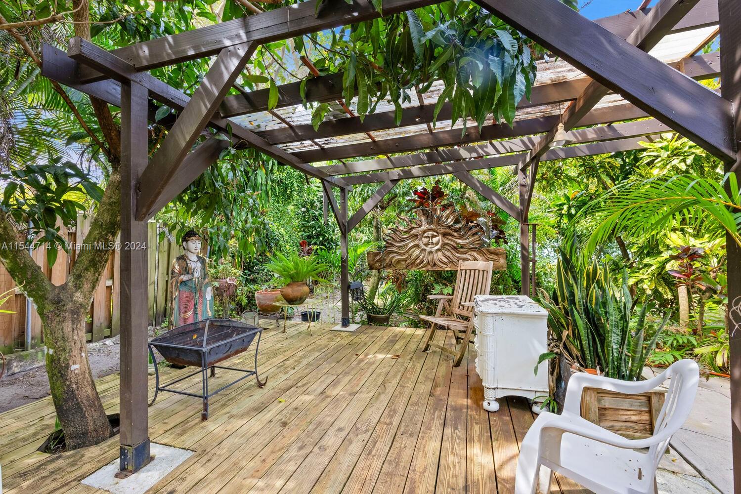 Charming North Grove bungalow on a quiet, tree-lined, no thru-traffic street. 3BR/2BA main house + a 1BR/1BA attached guest quarters (w/ private entrance), Light-filled living spaces feature vaulted, wood-beamed ceilings, working fireplace & wood flooring. Classic kitchen w/ white cabinetry. Living & dining rooms + enclosed Florida room w/ built-in bar. Enjoy outdoor living & entertainment in the private tropical garden w/ wooden deck, exotic native plants & fruit trees (mango, avocado, starfruit and lychee). High sea-level elevation (not in a flood zone). Located just a short walk or bike ride to bayfront parks & marinas and the Grove village center’s trendy galleries, boutiques & cafes. Minutes drive to downtown, MIA, Key Biscayne & the beaches.