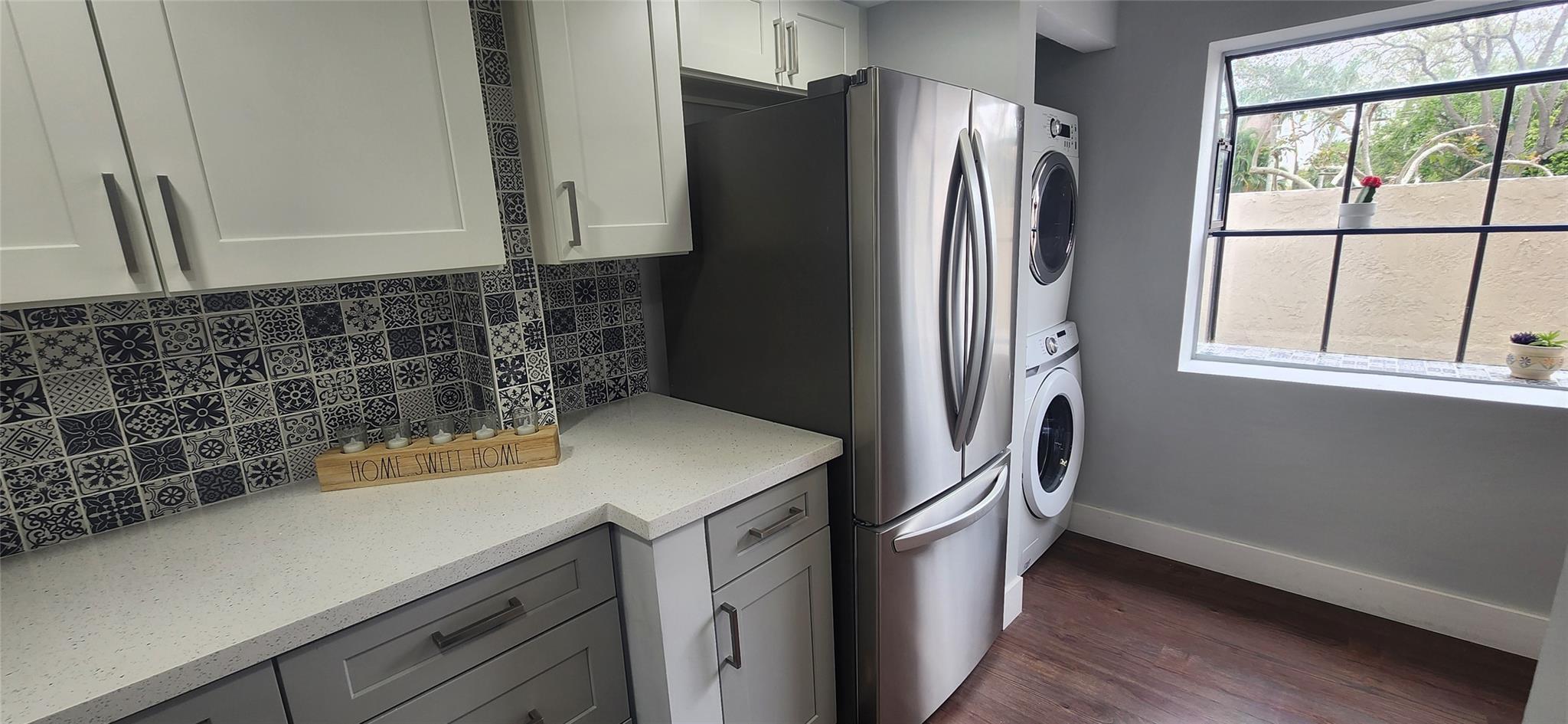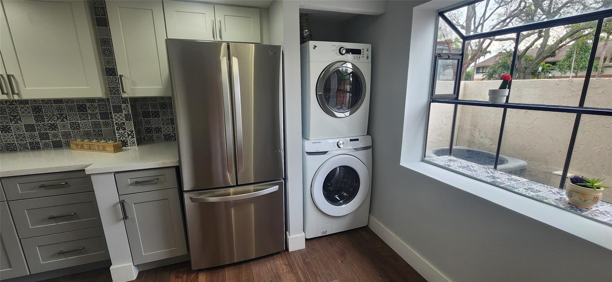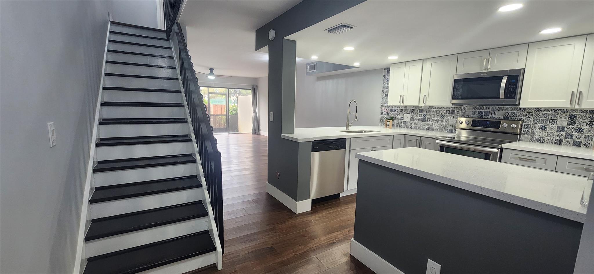 Completely remodeled, corner townhome with 2 bedrooms + Den & 2.5 bathrooms. Open-concept kitchen with stone countertops and peninsula, Stainless-Steel appliances, laminated waterproof wood-effect flooring throughout, new light fixtures, in-unit washer and dryer, and a large screened patio. Pet-friendly, 2 designated parking spots, community pool, basketball court, and playground. Conveniently located in the heart of Davie for easy access to highways, restaurants, shopping, Nova University, FIU, Broward College, Miami dolphins training camp, airport and NEW Hospitals. Walking distance to Firefighters' Park and walking trail along Orange Drive Canal. This property is "Move-In-Ready" for the perfect family wanting to live in a calm and relaxing community or as an investment opportunity.