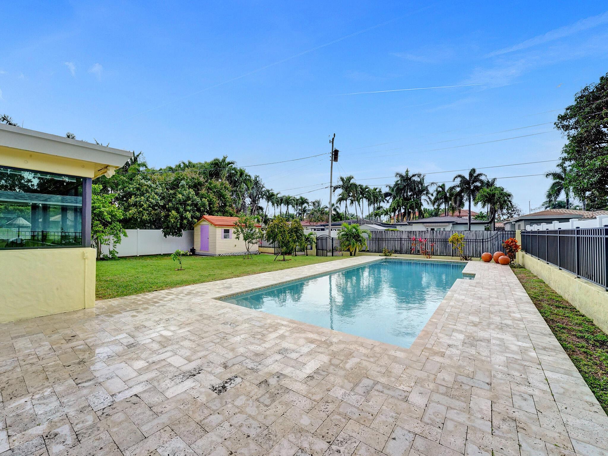 Embrace the chance to make this slice of paradise YOURS! Situated on an expansive lot and a half in the Hollywood Lakes neighborhood, this charming home is a RARE find in a coveted location minutes from Hollywood Beach, the Hollywood Beach Golf Club, schools and places of worship. RENOVATED entirely between 2021 and 2022, - from the pool to the roof, impact windows, electrical, plumbing, the highest R-value insulation, and floors. This is a light-filled updated residence boasting a circular Chicago brick driveway and back patio. The open concept kitchen seamlessly flows into the living and dining areas and the Florida room. The oversized backyard is perfect for entertaining with a large pool and showcases wonderful grapefruit, guava, ylang-ylang, crepe myrtle and acacia trees!
