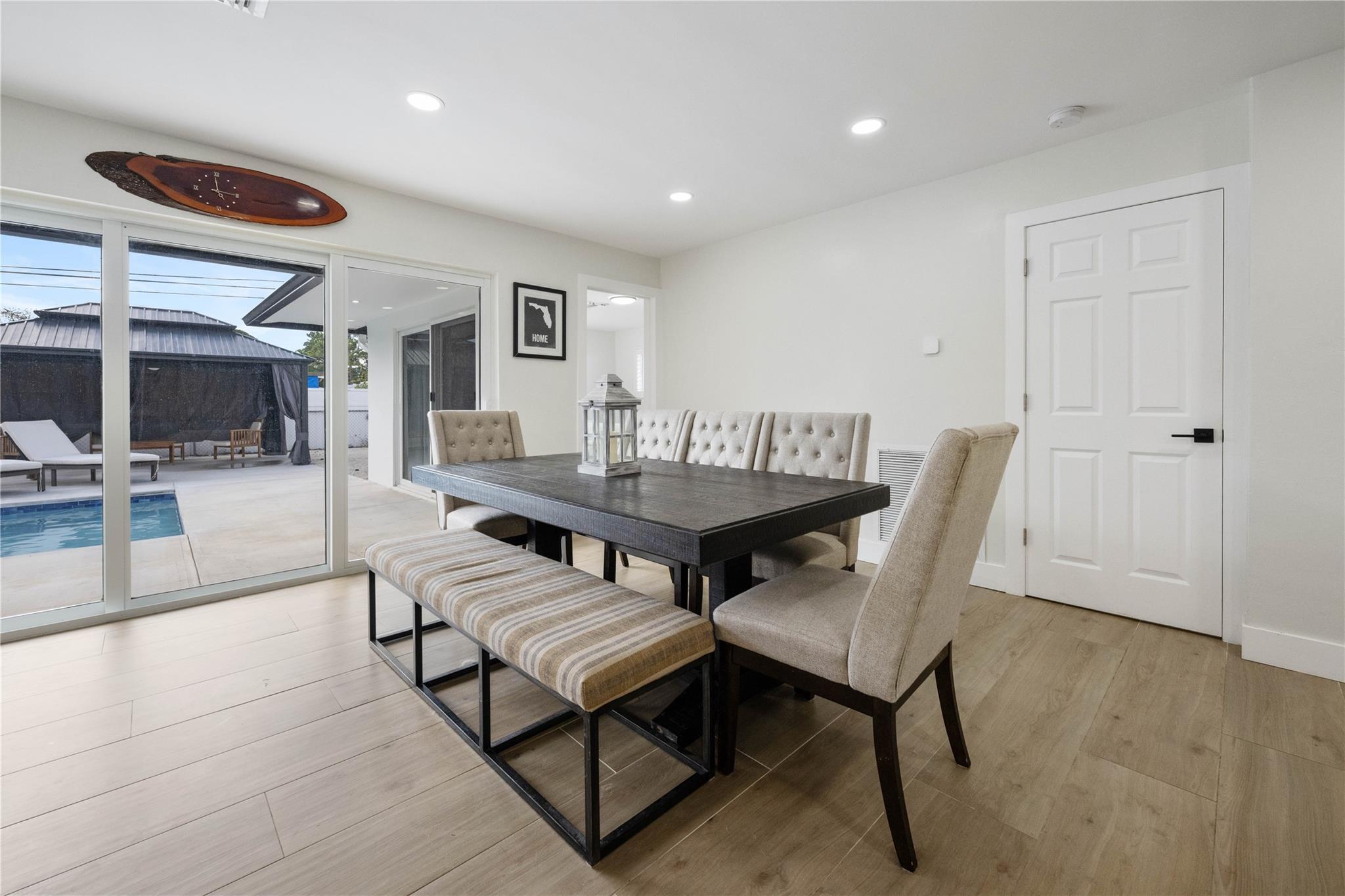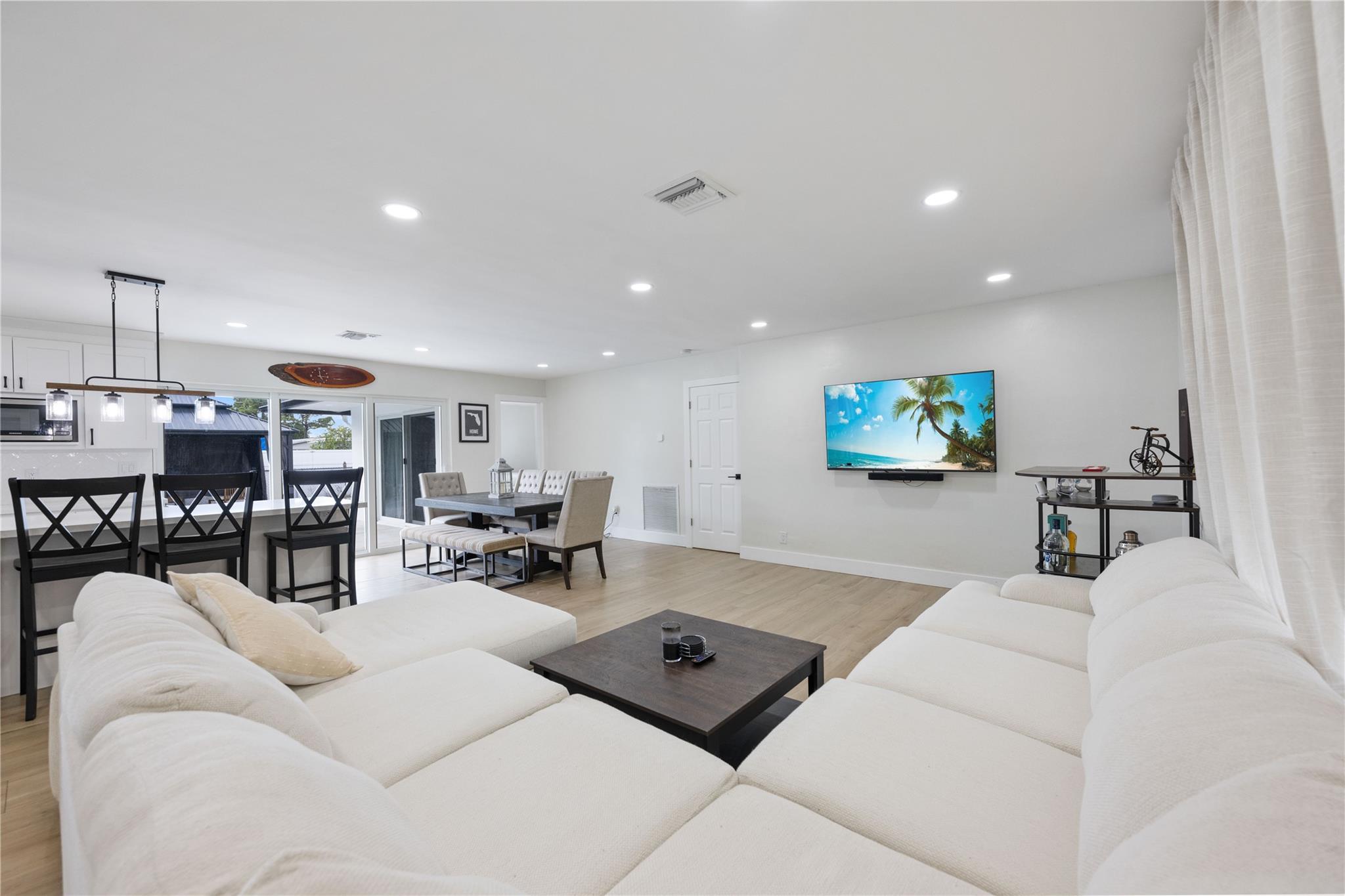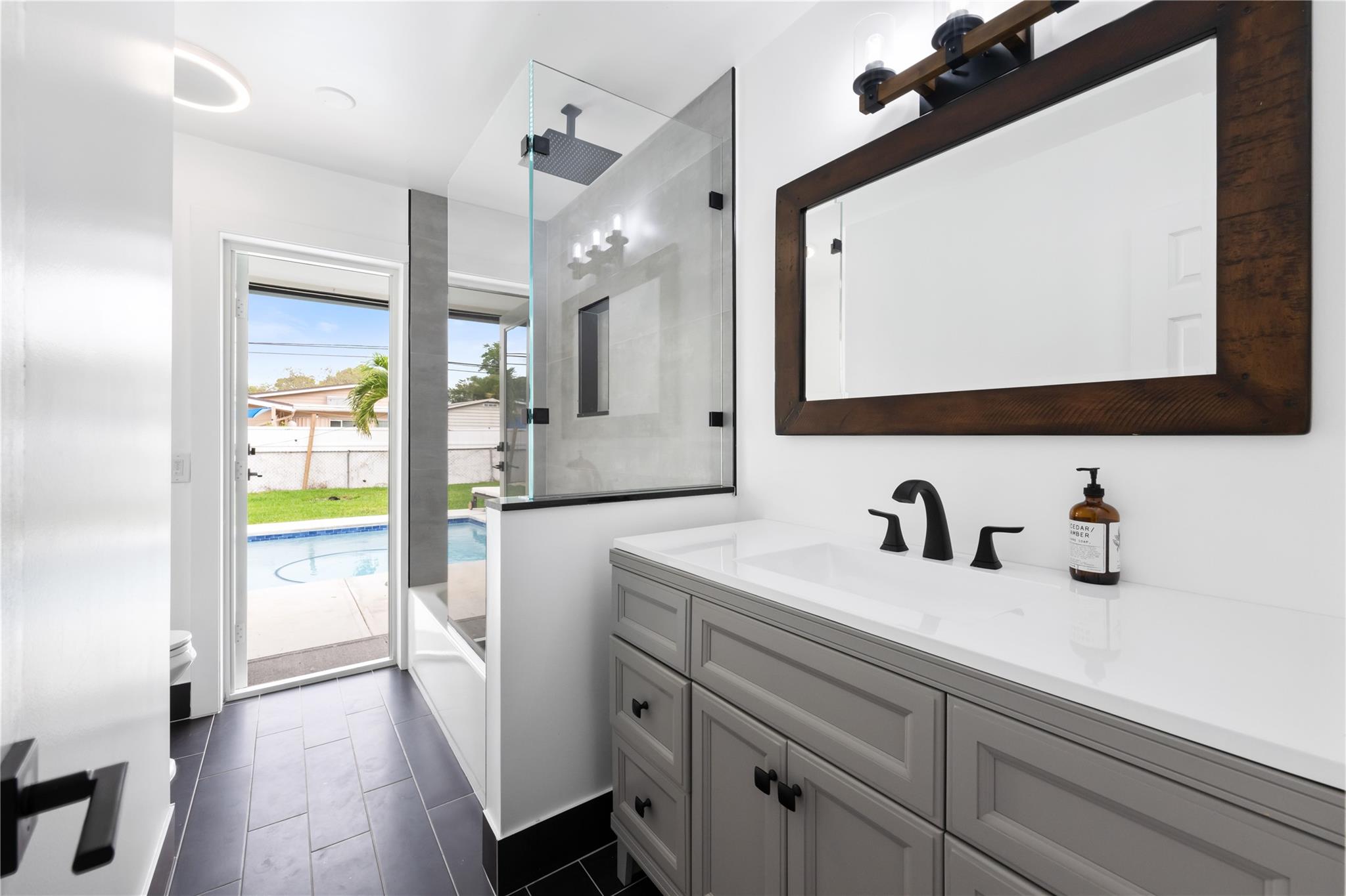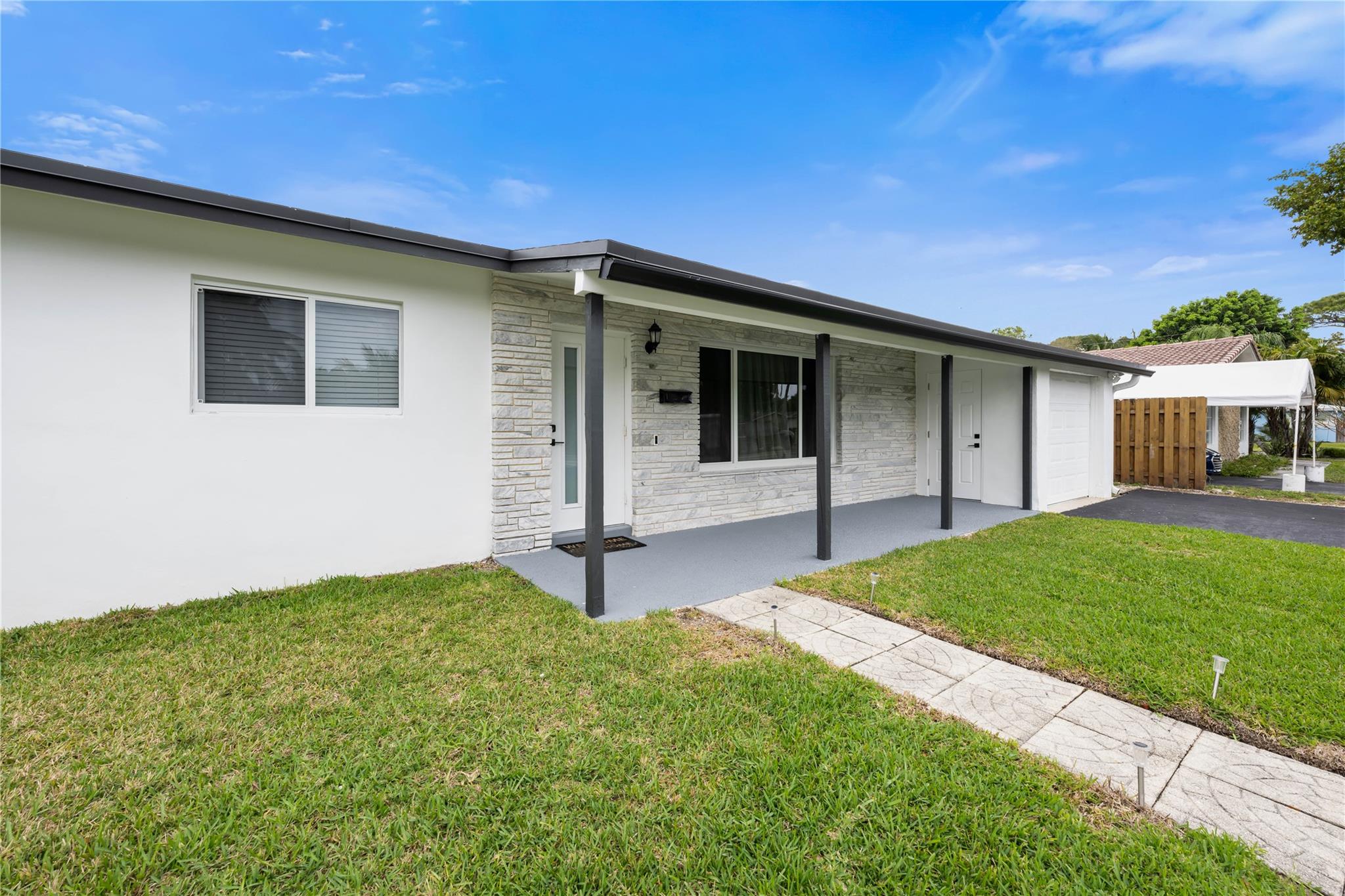 Stunning 4-bedroom, 2-bathroom home in the sought after Garden Isles neighborhood of East Pompano! Open floorplan connecting the kitchen, dining room, and living room areas with sliding glass doors to the recently updated saltwater pool creating a perfect indoor/outdoor space for entertaining. The kitchen has custom shaker cabinets, quartz countertops, stainless-steel appliances, and features a large island with additional storage. Tile floors throughout. Master bath has dual sinks and extra-large shower. Guest bath has a cabana door for easy access from the pool/backyard. Impact doors and windows. The garage and circular driveway can accommodate approximately 6 vehicles. Less than a 10-minute drive to Pompano Pier and close to intracoastal waterways. Roof 2020. AC 2021.