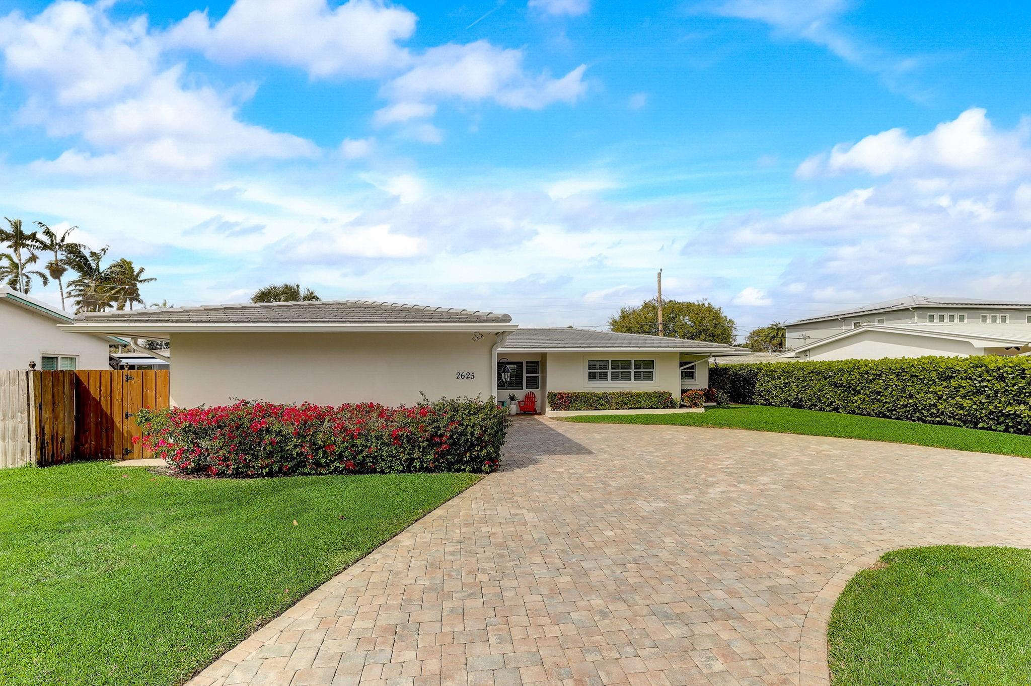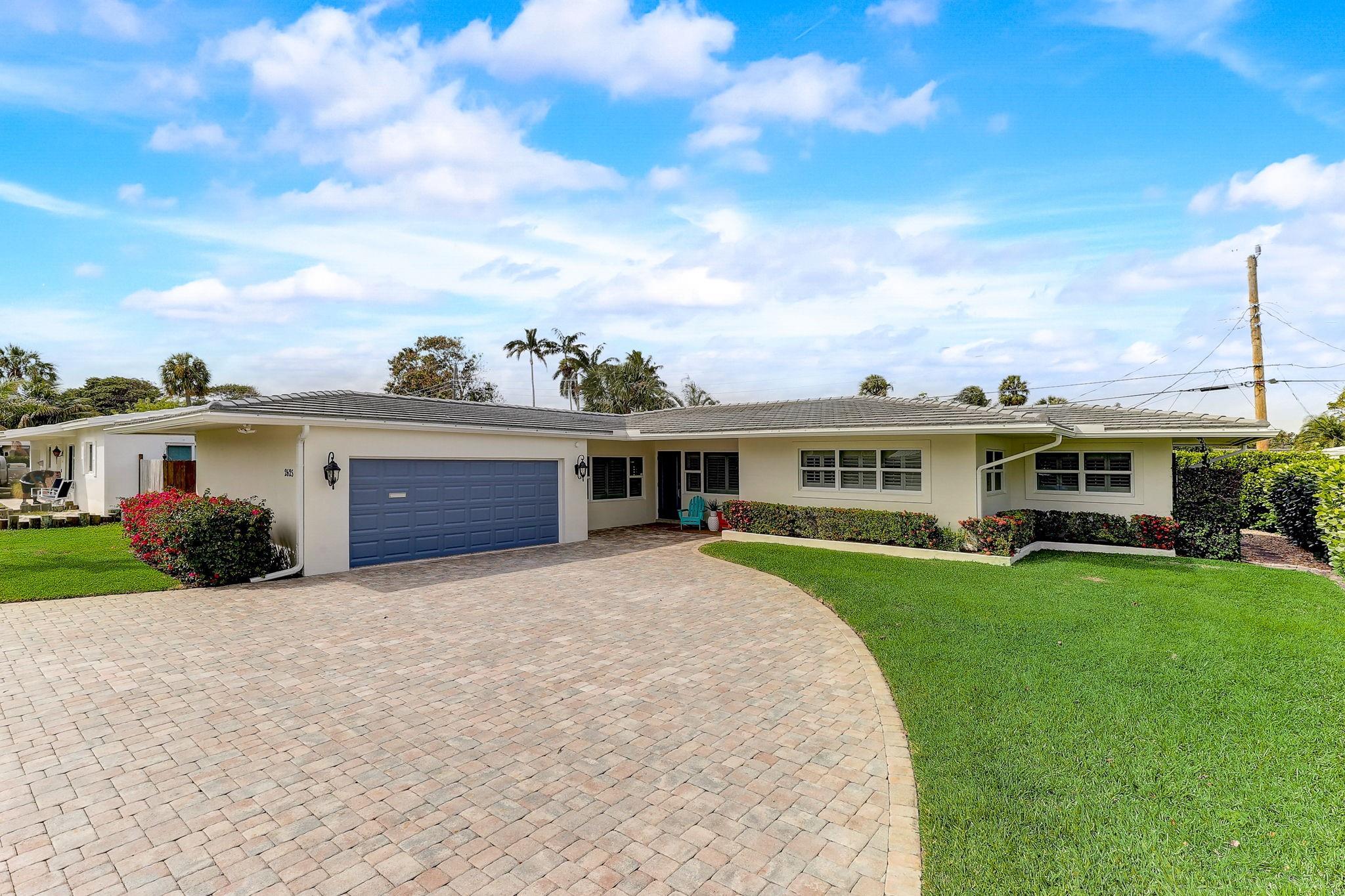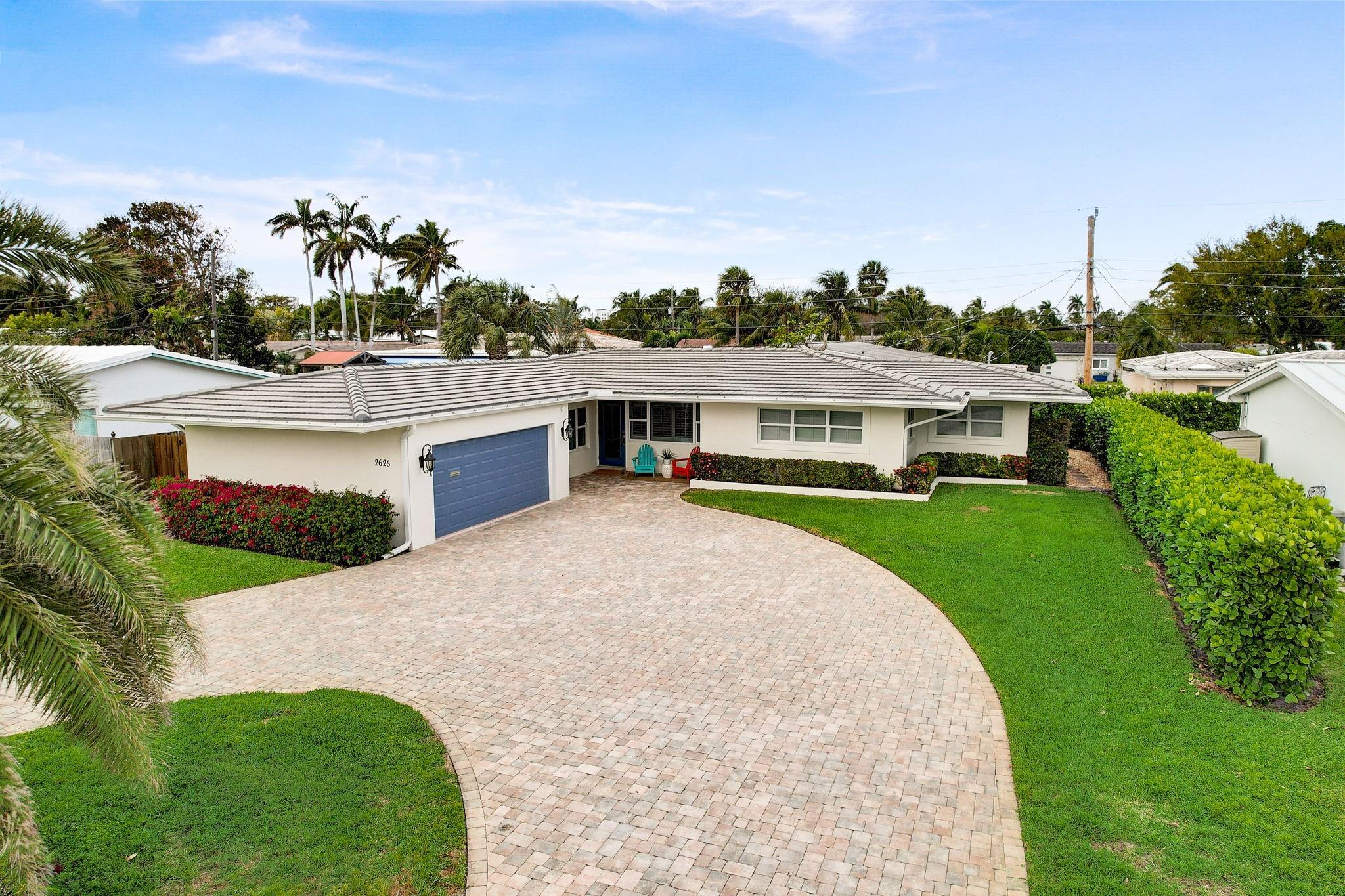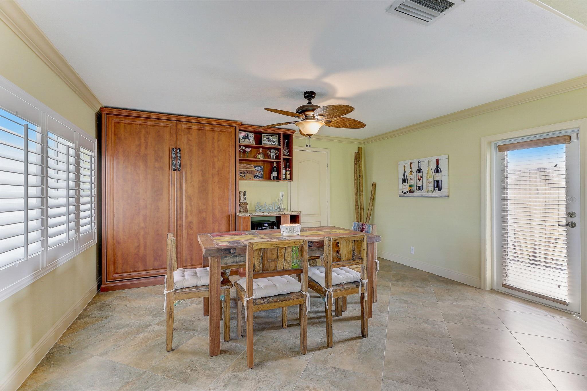 Immaculate single-story poured concrete home exudes safety and solidity. A sprawling paver driveway and meticulously landscaped surroundings set the stage for this 2-bed, 2-bath + den abode. Complete impact windows and doors, ensure peace of mind. New flat tile roof in 2022! Hurricane-rated garage. True 2CG. Updated PVC plumbing & electric add to the home's appeal. The custom chef's kitchen boasts a natural gas cooktop, S.S appliances w/double oven & expansive island for entertaining. The wine bar & den Murphy bed is set up for added guests & versatility. The primary bath has been newly renovated with custom shelving, a double vanity, & a shower seat. Enjoy a lifestyle of leisure & convenience with proximity to the beach, golf course, amphitheater, and dining along Atlantic BLVD.