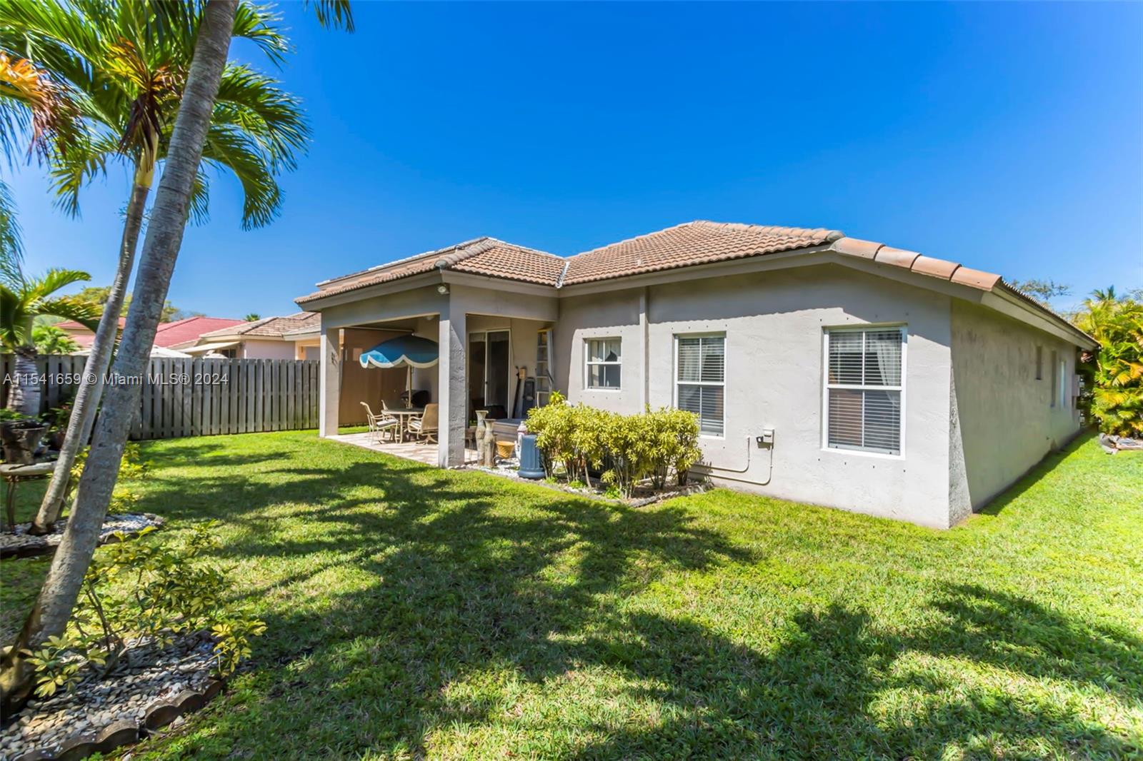 Beautiful 3 bedroom + bonus room, 2.5 bath, one story home in the manned guard gated community of Poinciana Parc in Davie. This home features tile flooring in the main living areas, wood laminate flooring in the bedrooms, and volume ceilings. The upgraded kitchen is complete with new modern white shaker style cabinetry, quartz countertops and decorative backsplash. The master bathroom has also been upgraded with granite countertops, new cabinetry & a new shower. Other upgrades include a new water heater & new AC! Enjoy the private backyard with a covered patio, and grassy yard, with plenty of room for a pool!